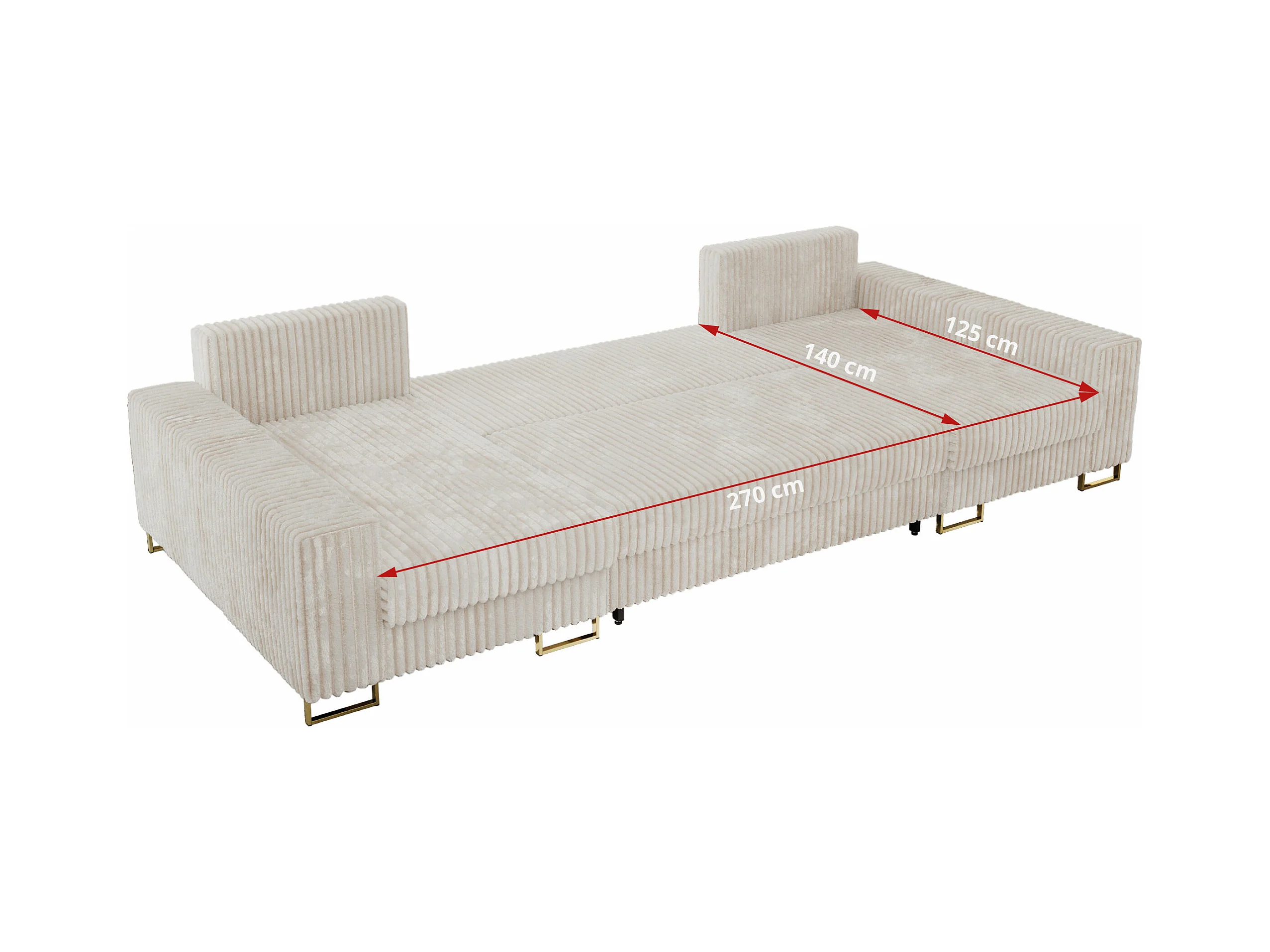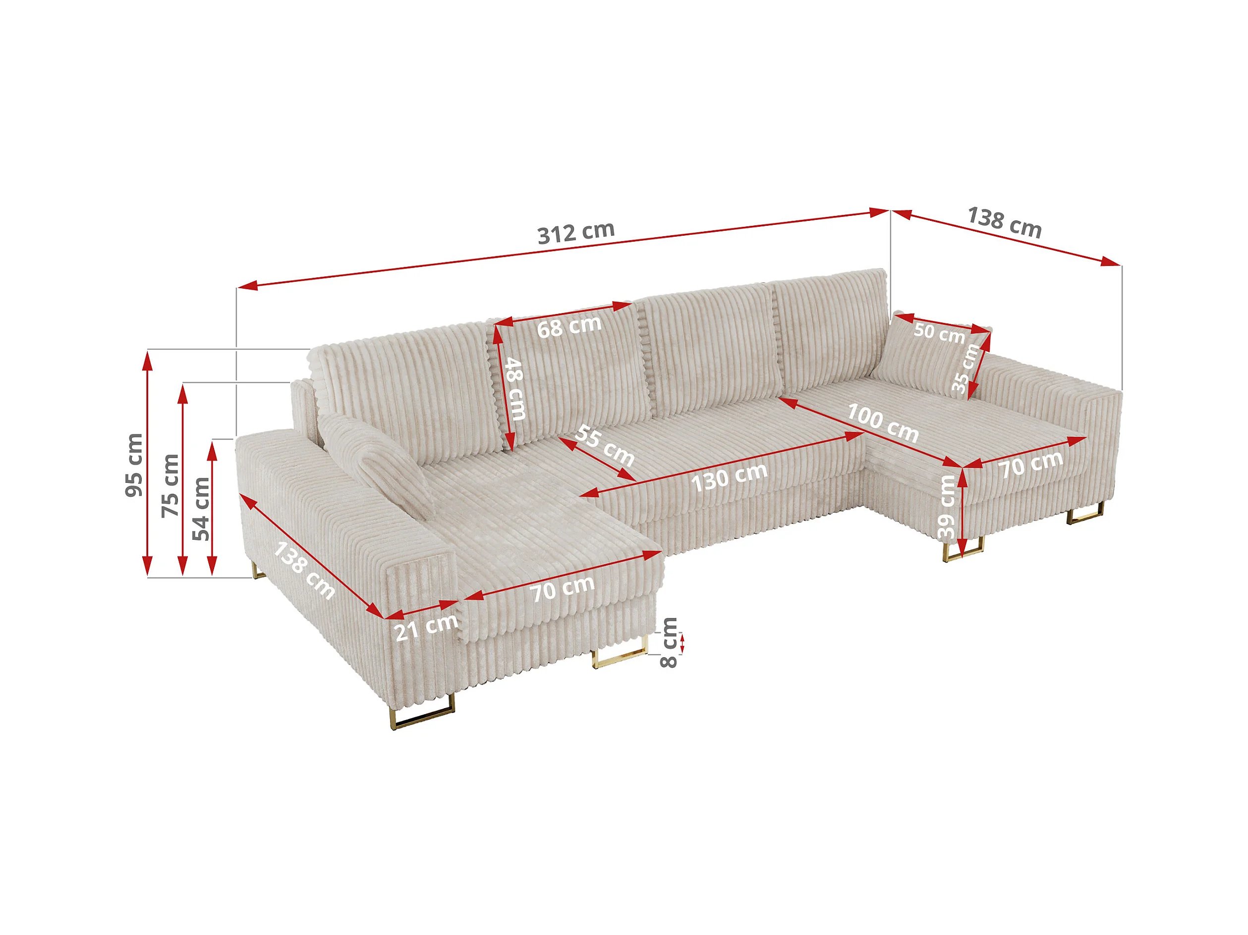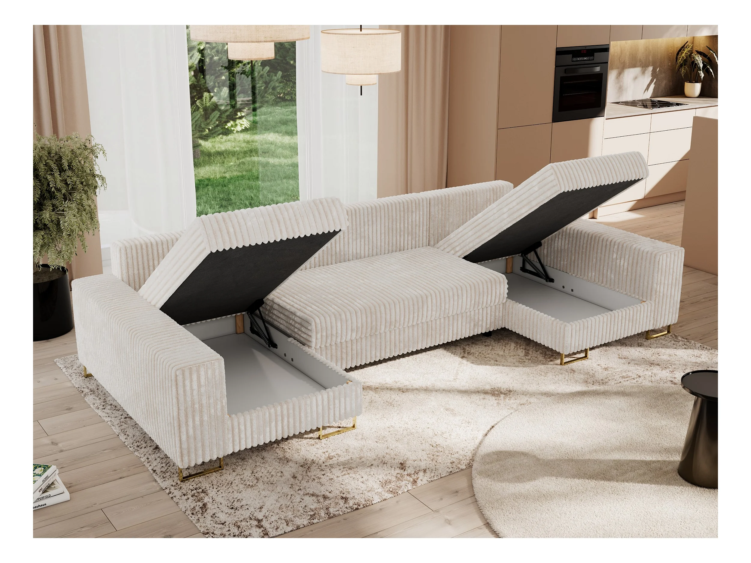 Ecksofa DORIAN U, Wohnlandschaft, Ecksofa mit Armlehnen, schlaffunktion und Bettkästen - Beige Cord