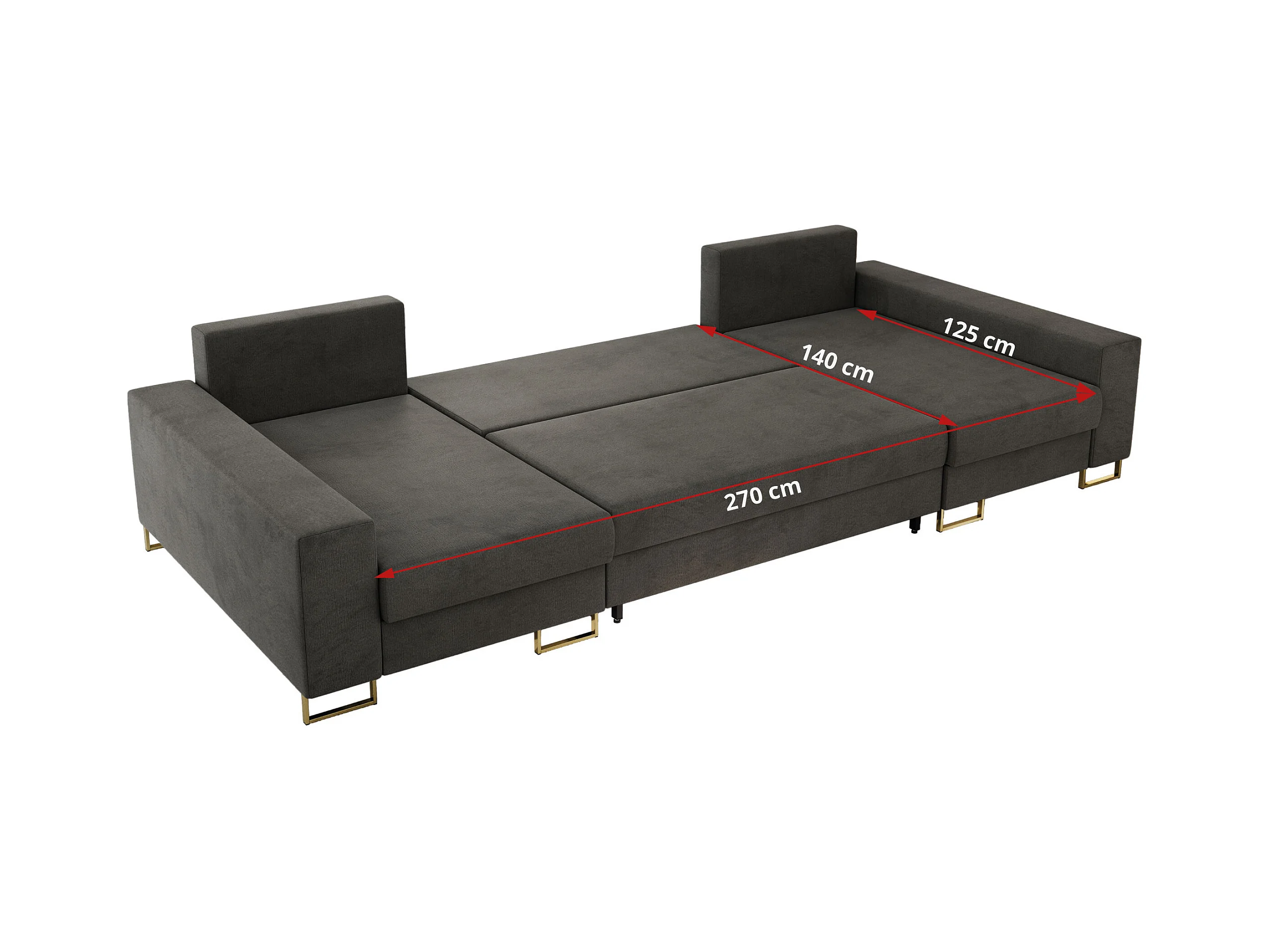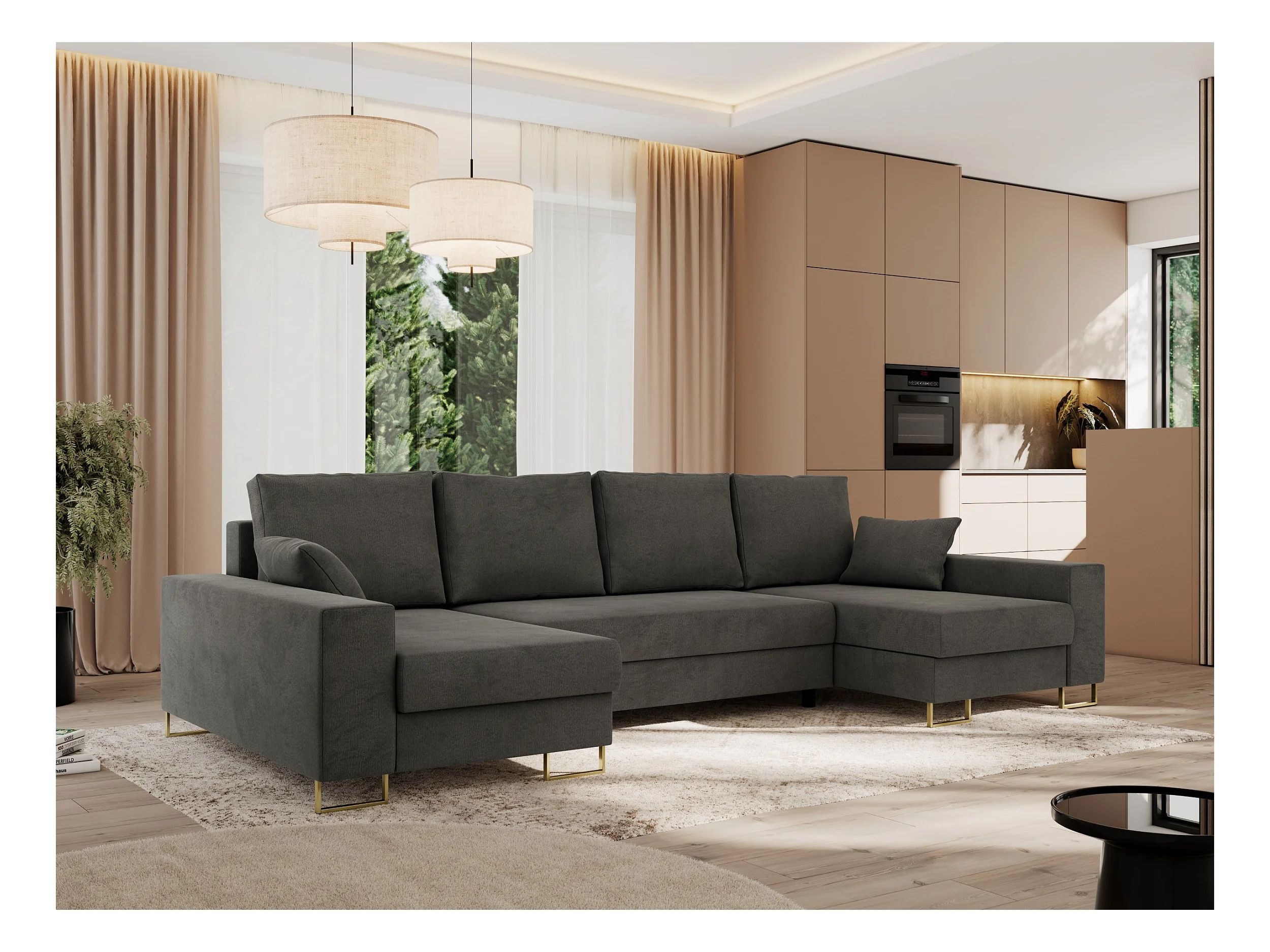 Ecksofa DORIAN U, Wohnlandschaft, Ecksofa mit Armlehnen, schlaffunktion und Bettkästen - Dunkelgrau Velvet