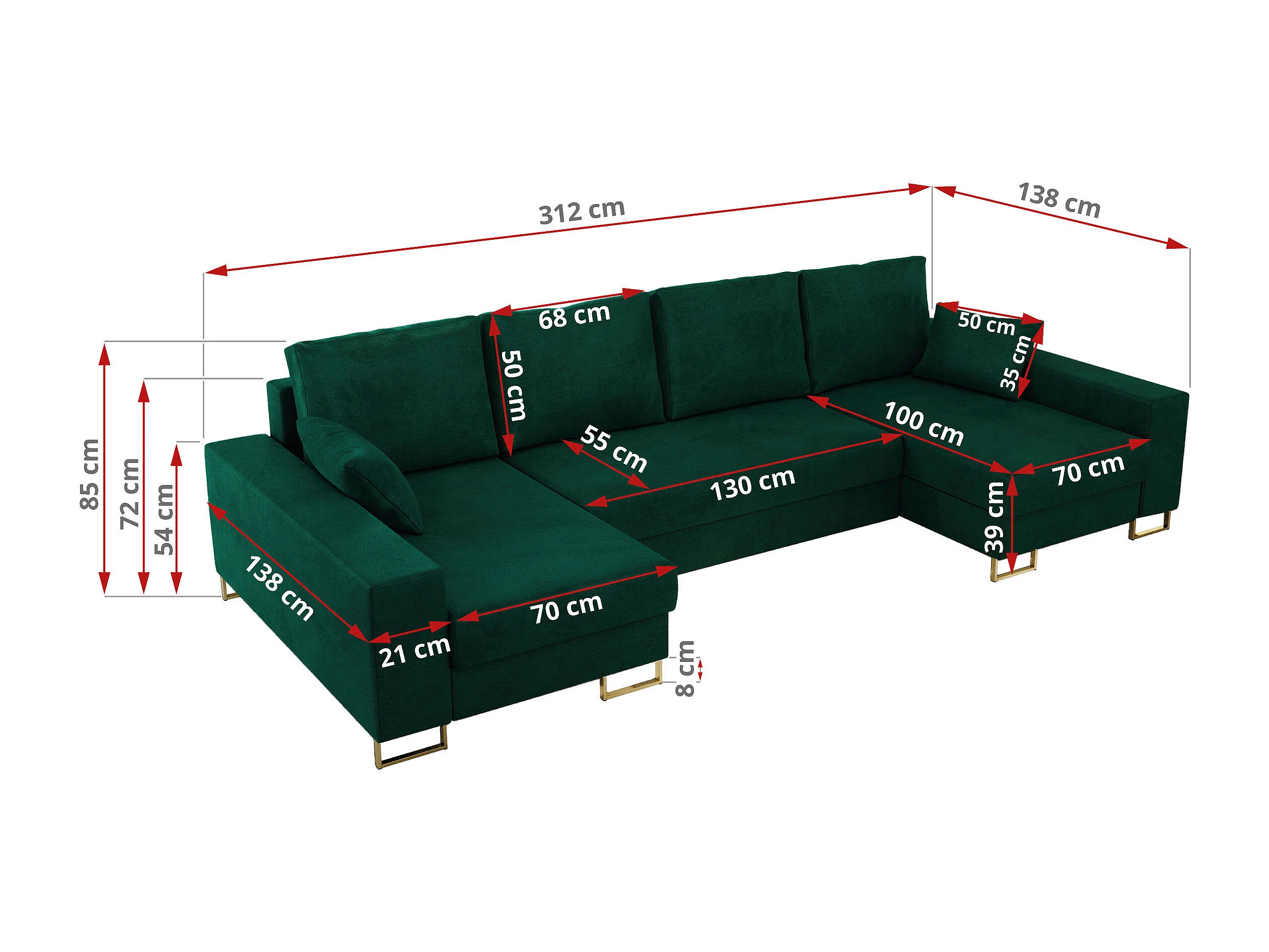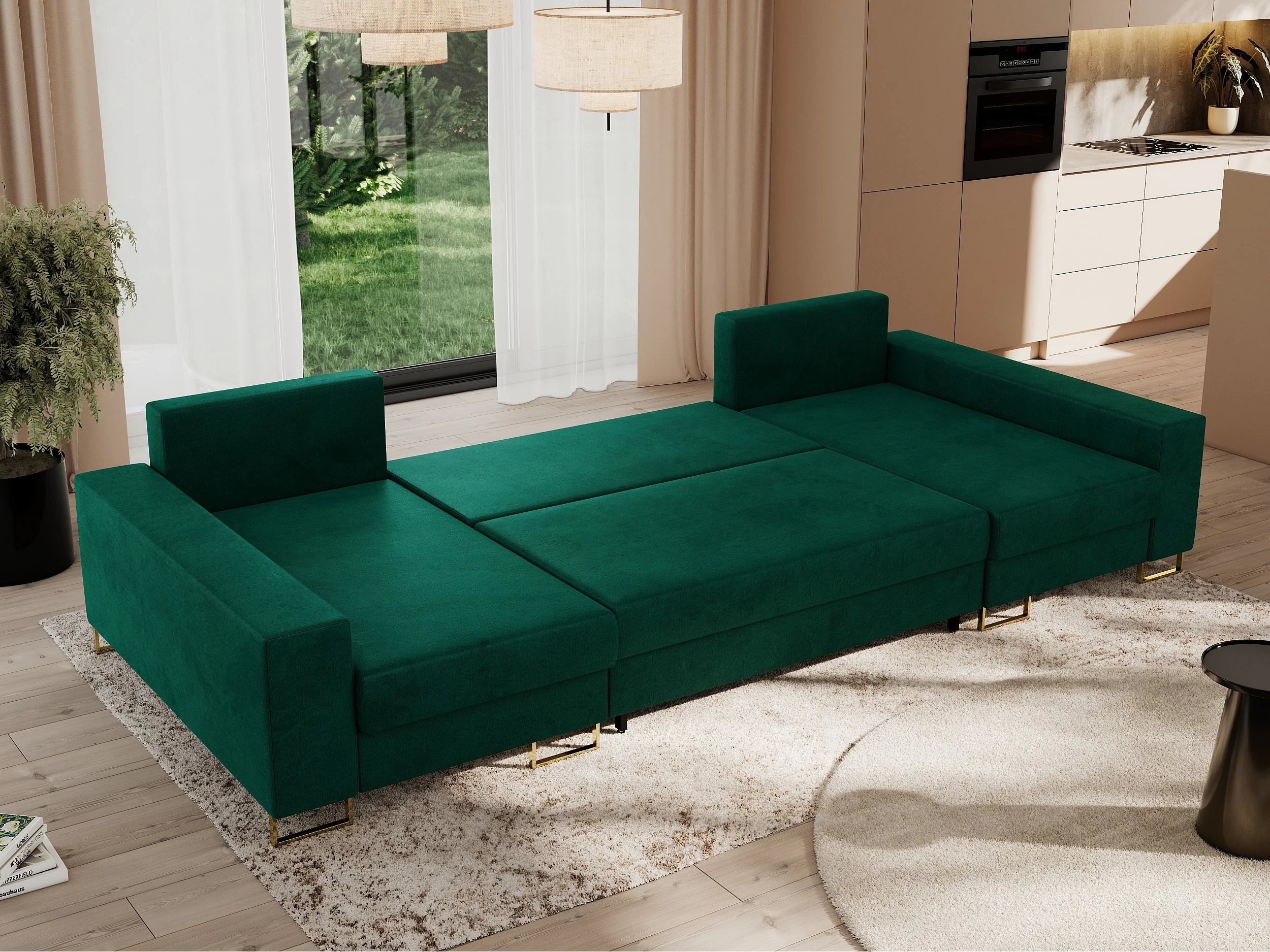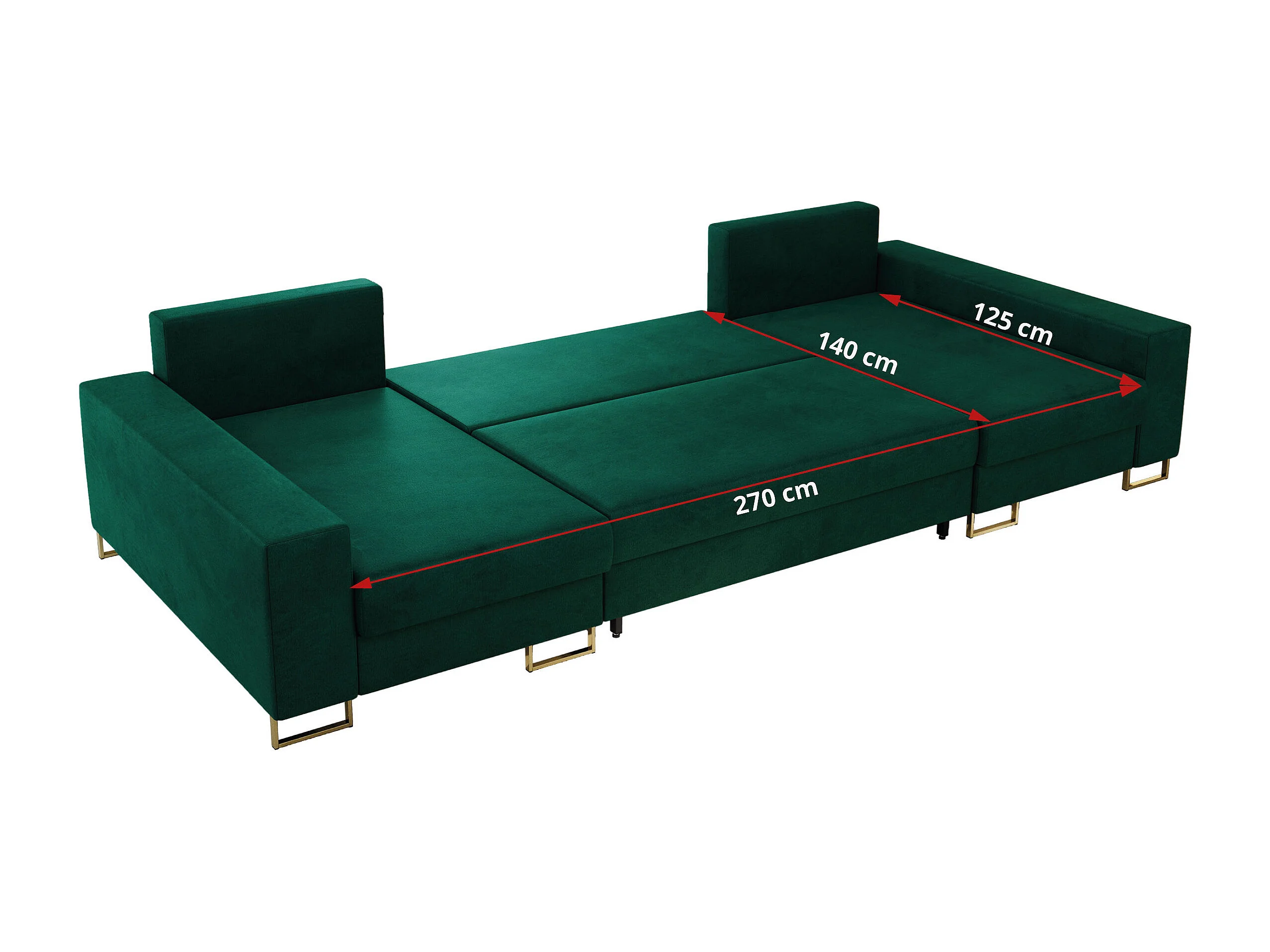 Ecksofa DORIAN U, Wohnlandschaft, Ecksofa mit Armlehnen, schlaffunktion und Bettkästen - Dunkelgrün Velvet