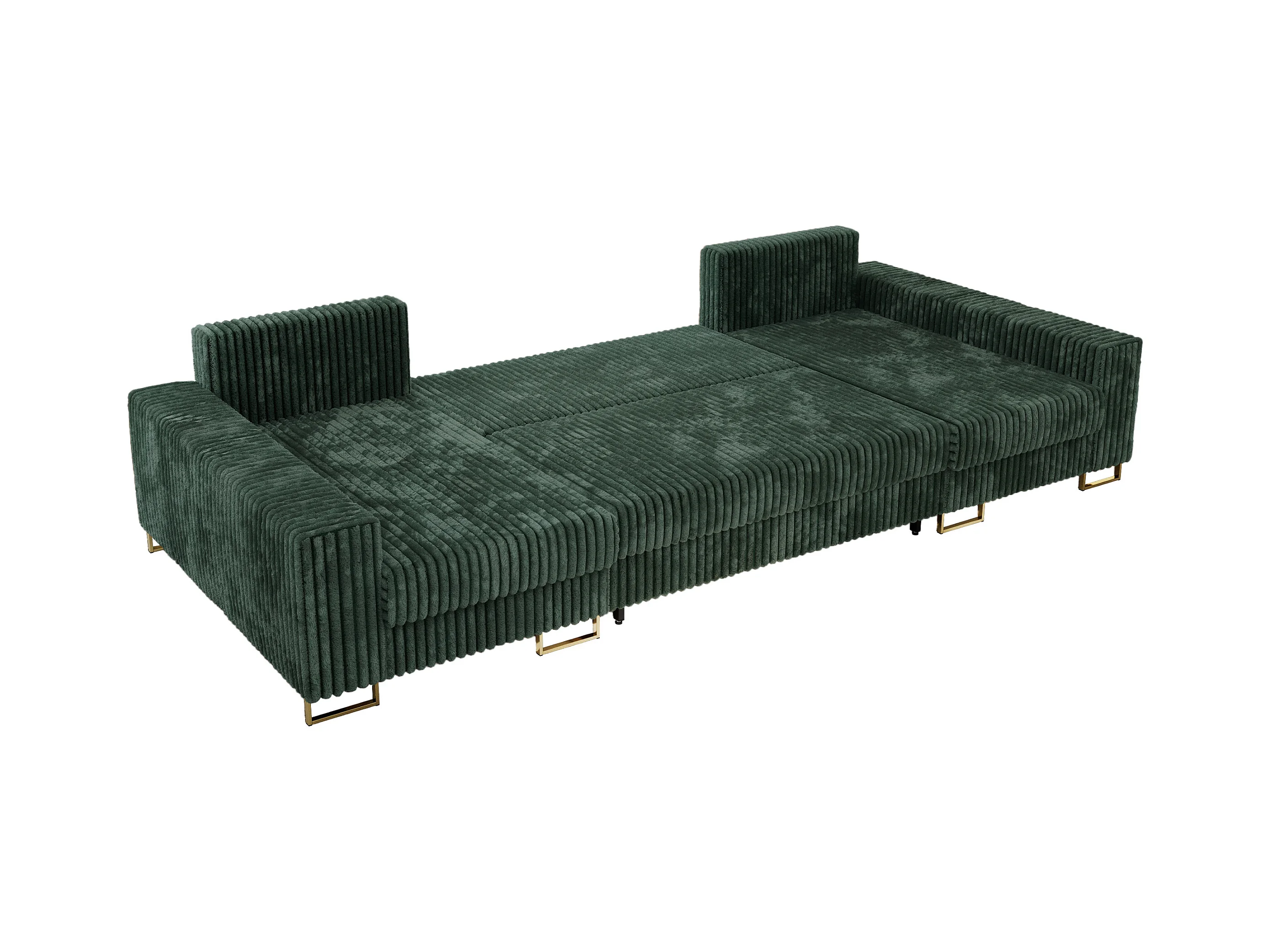 Ecksofa DORIAN U, Wohnlandschaft, Ecksofa mit Armlehnen, schlaffunktion und Bettkästen - Grün Cord