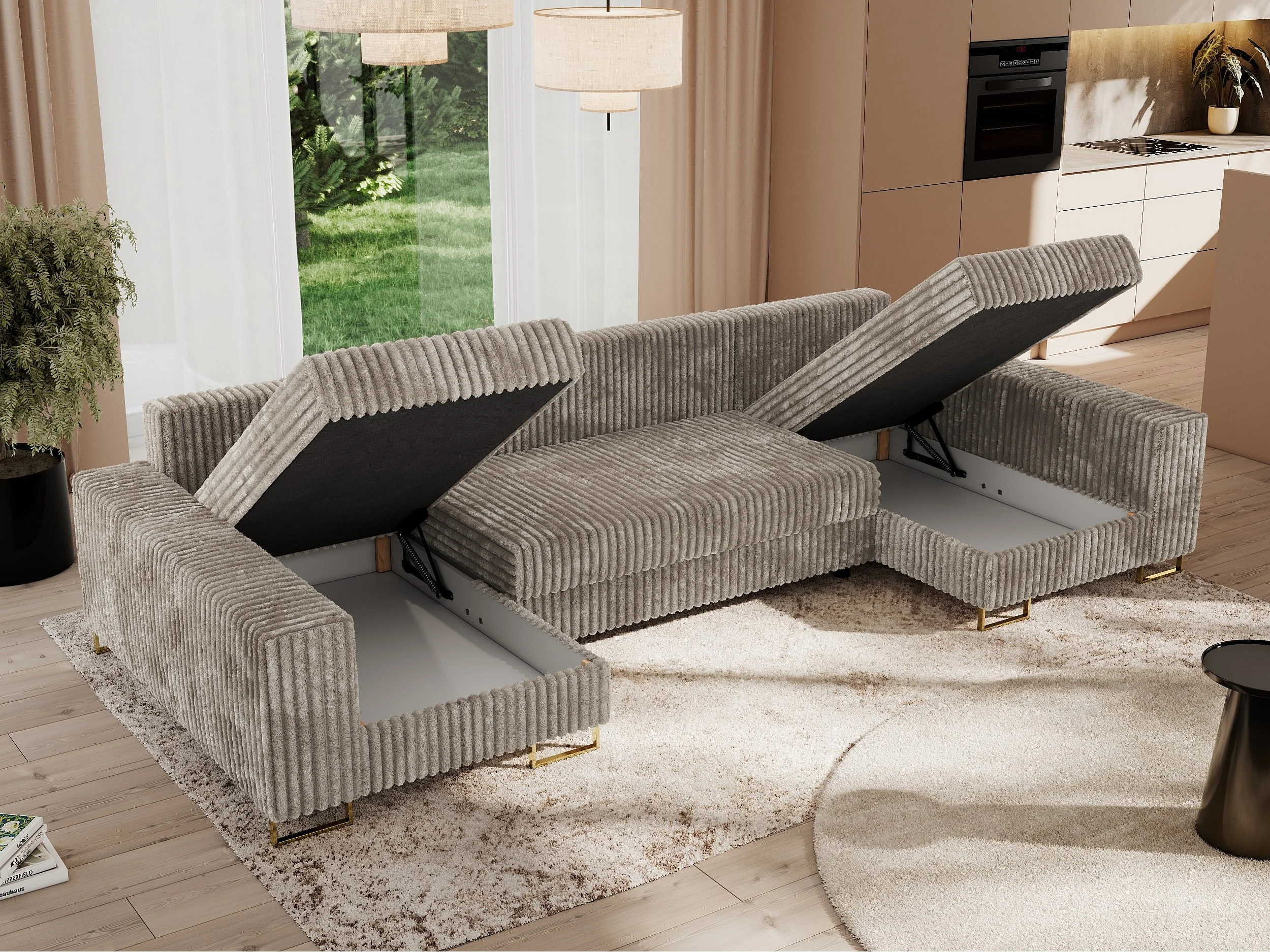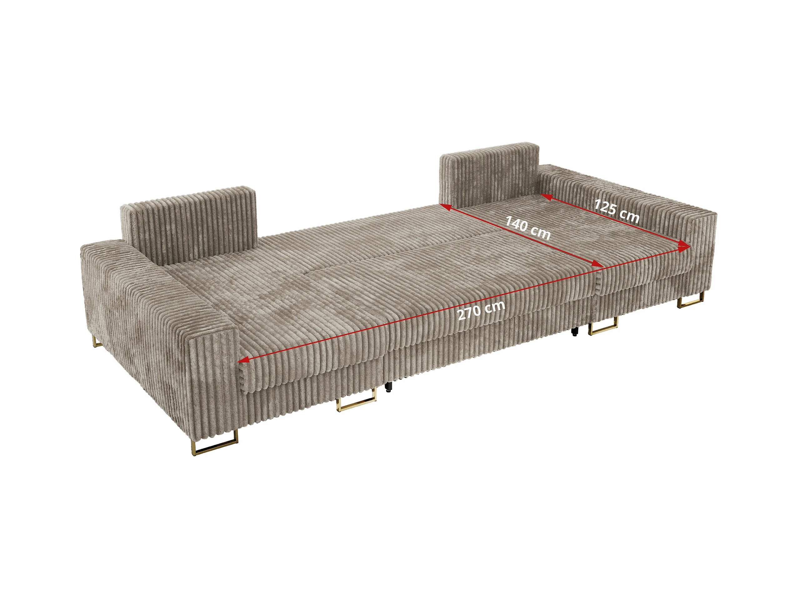 Ecksofa DORIAN U, Wohnlandschaft, Ecksofa mit Armlehnen, schlaffunktion und Bettkästen - Hellbraun Cord