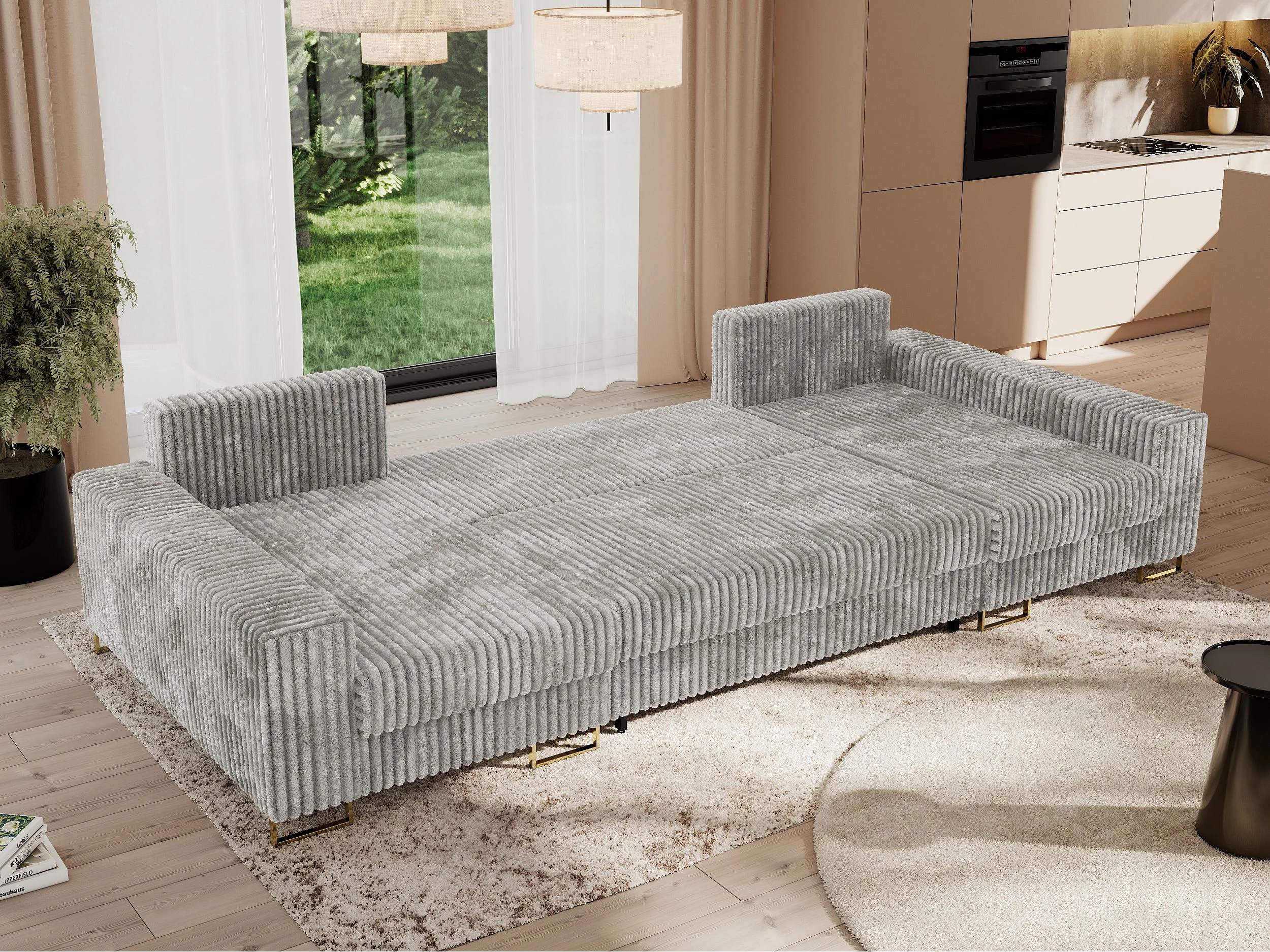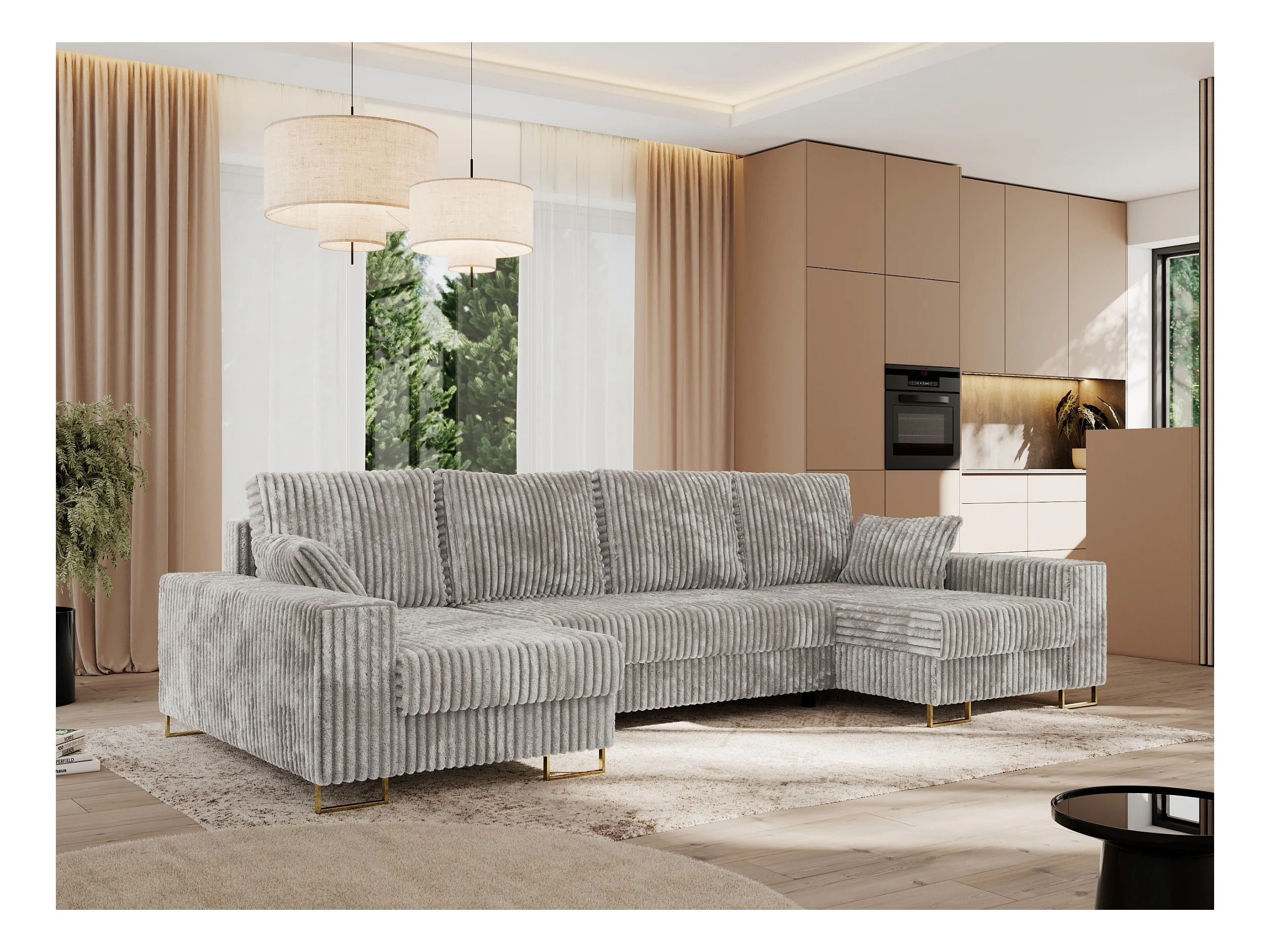 Ecksofa DORIAN U, Wohnlandschaft, Ecksofa mit Armlehnen, schlaffunktion und Bettkästen - Hellgrau Cord
