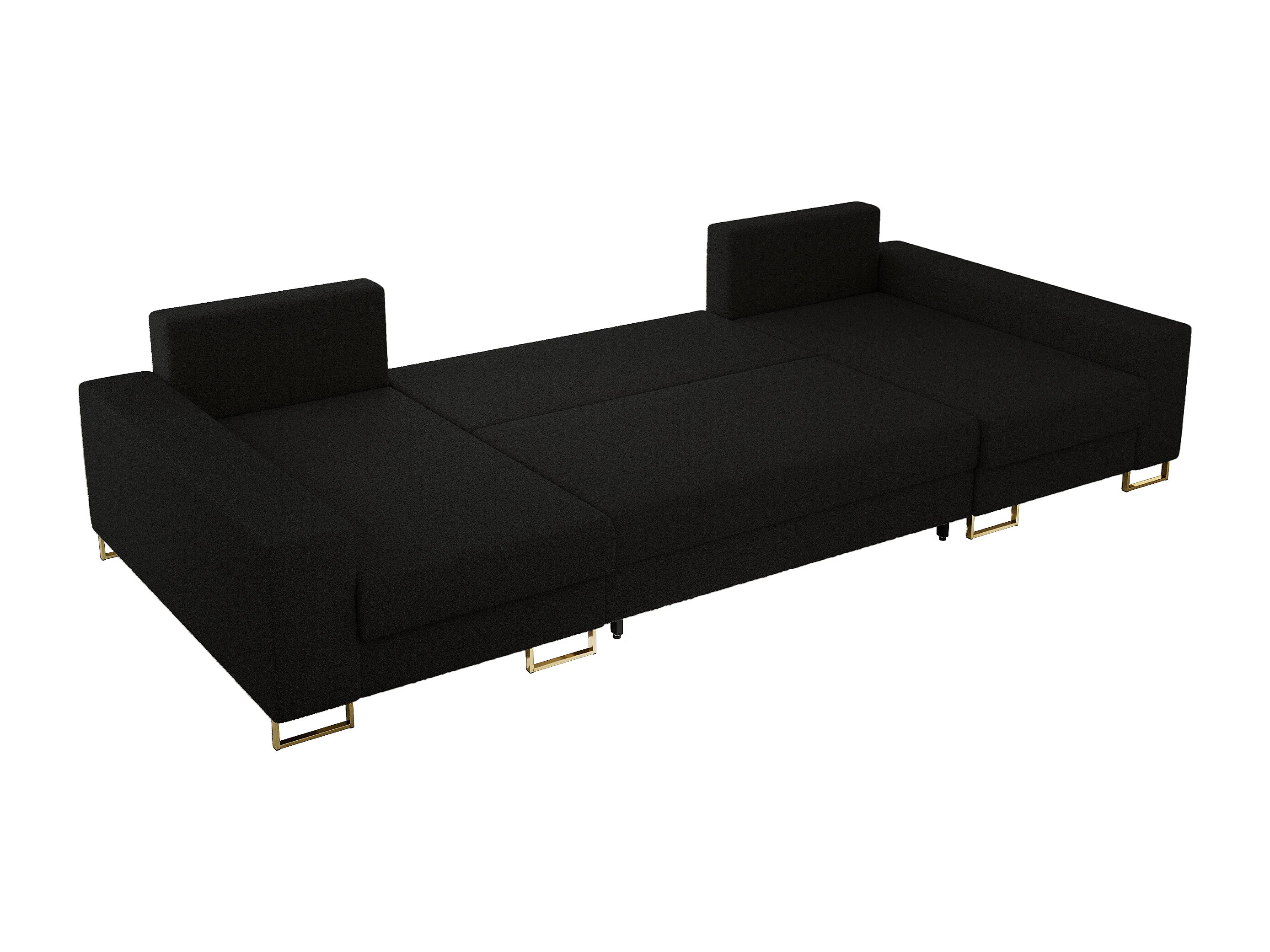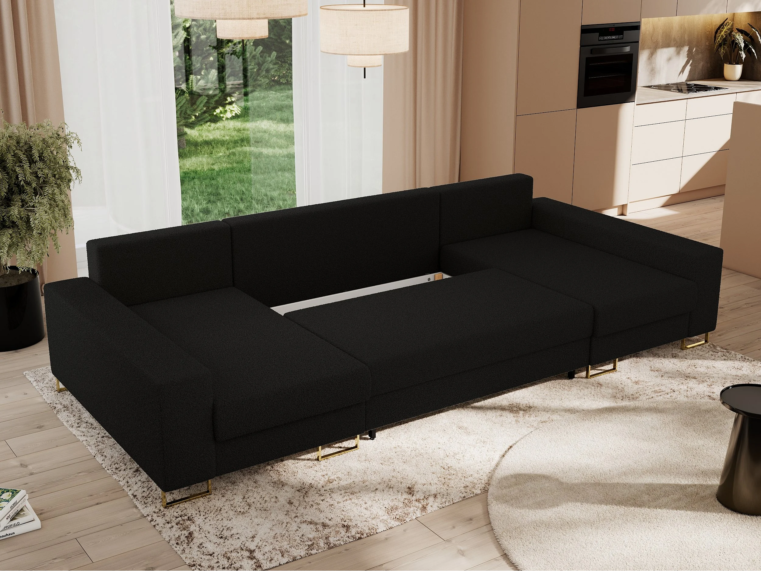 Ecksofa DORIAN U, Wohnlandschaft, Ecksofa mit Armlehnen, schlaffunktion und Bettkästen - Schwarz Boucle