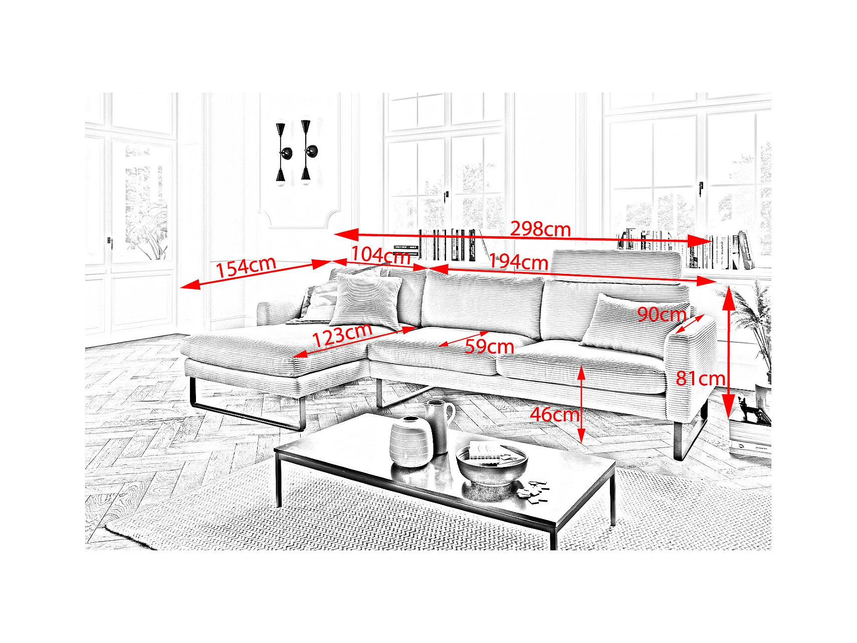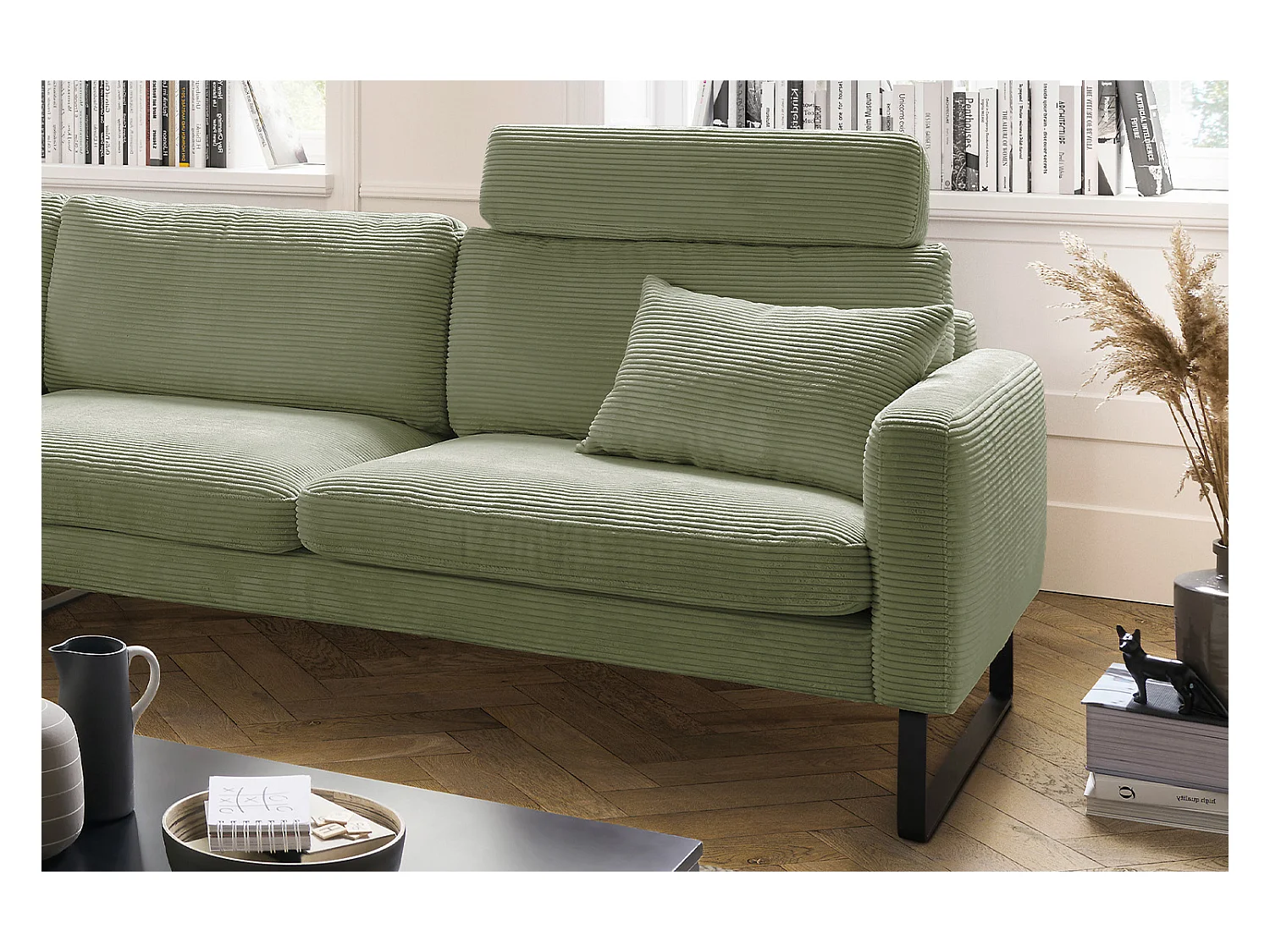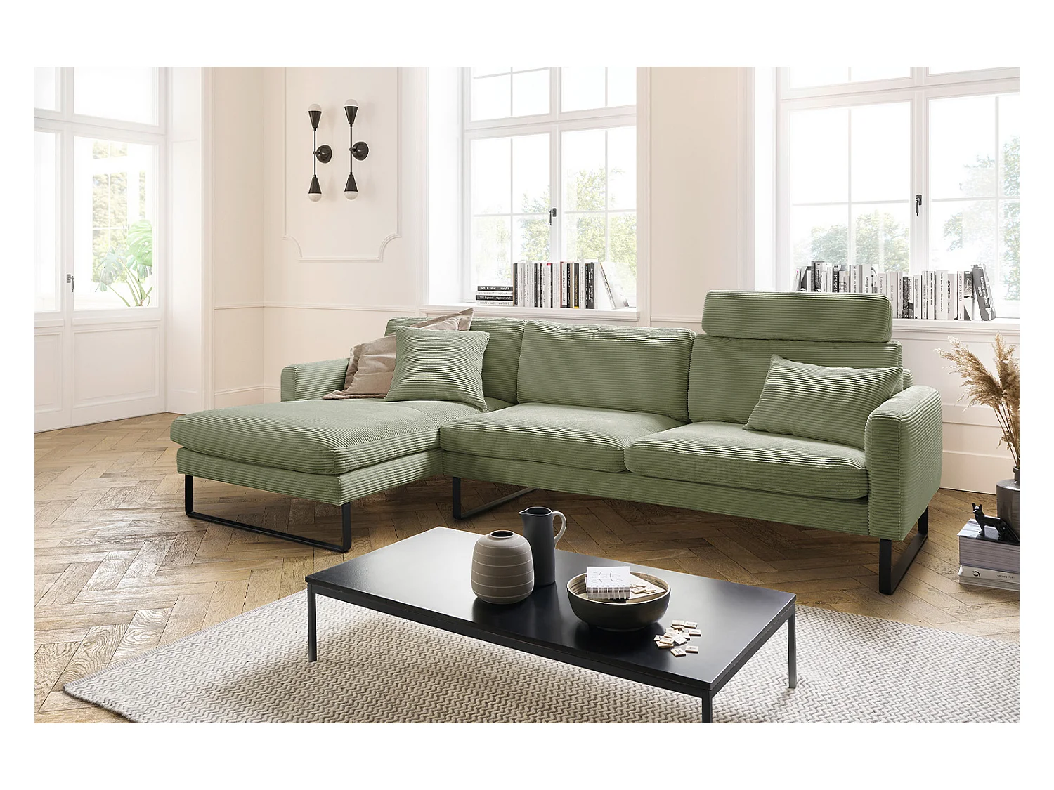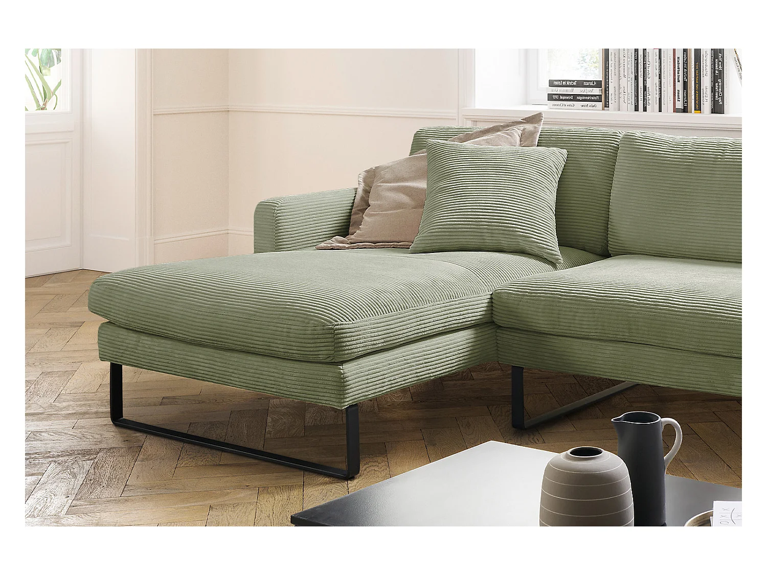 Ecksofa - Dunkelgrün Cord - RICARDA