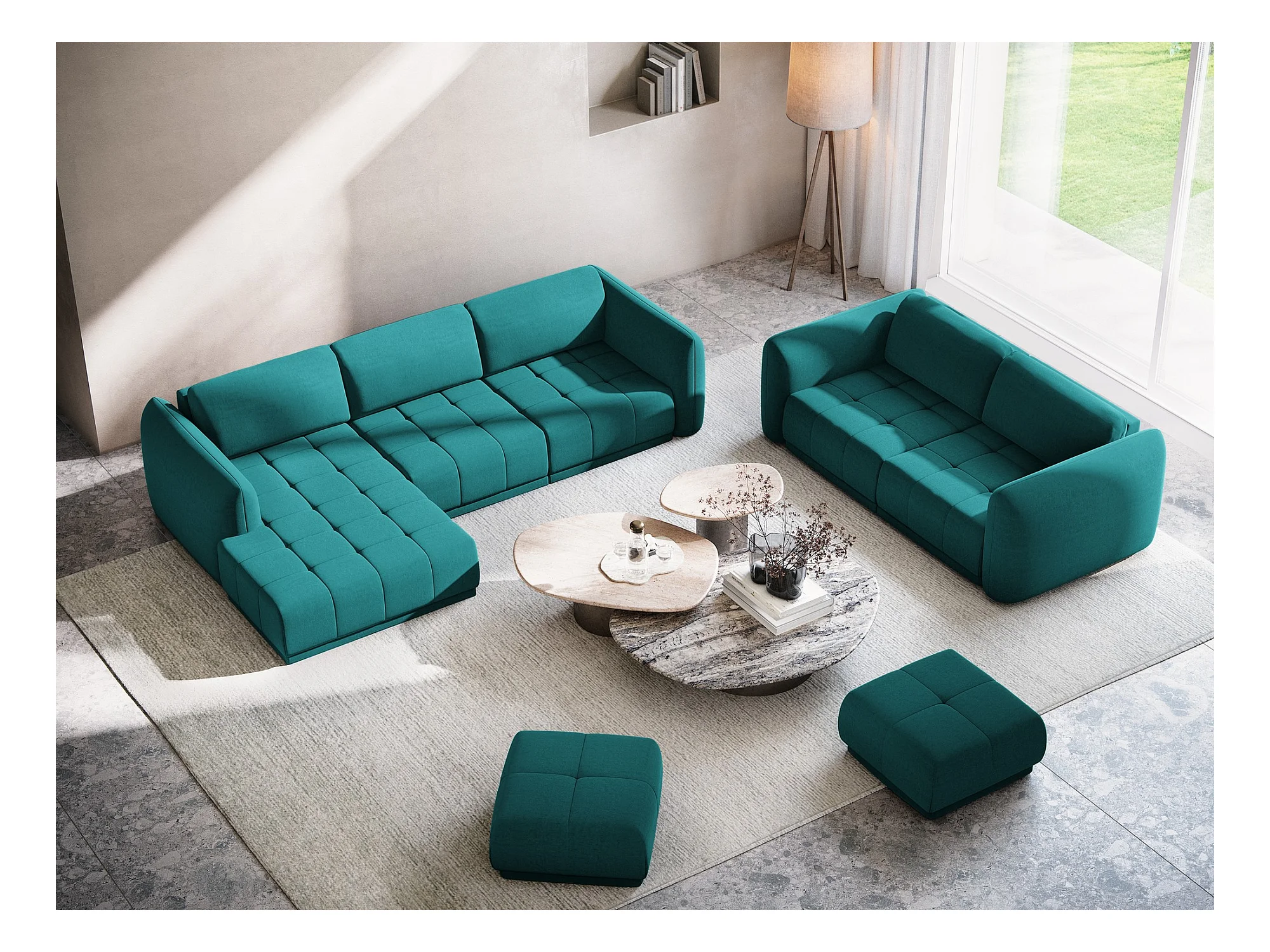 Ecksofa - Ecke Links - Samt - Marine - HOKU
