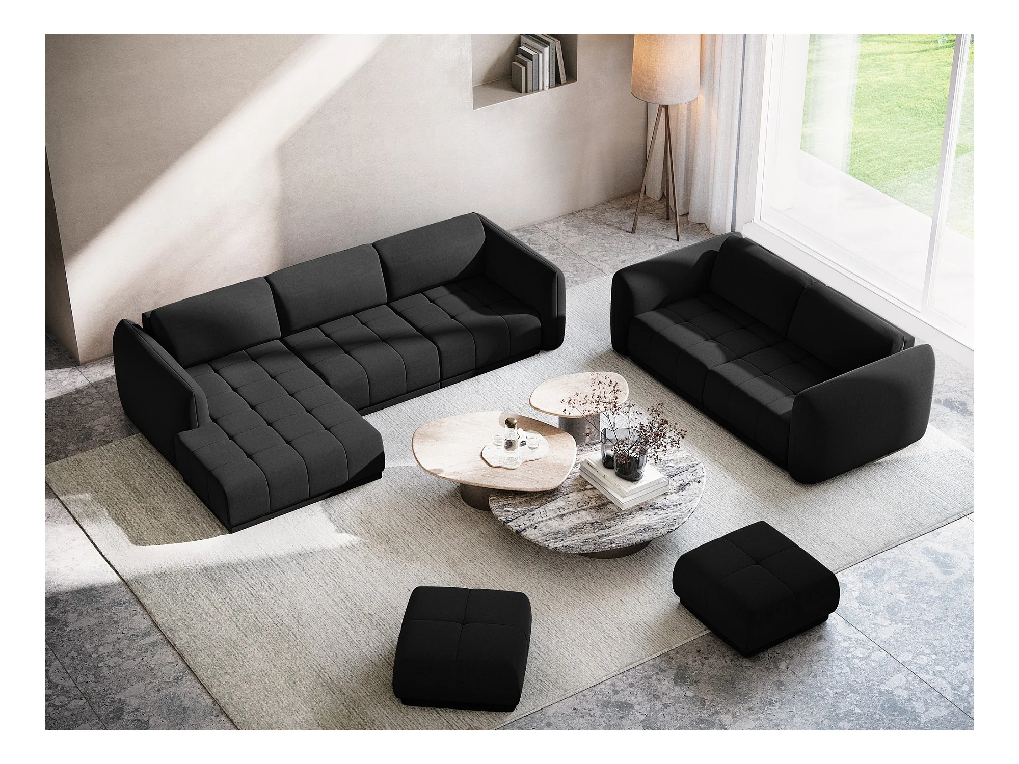 Ecksofa - Ecke Links - Samt - Schwarz - HOKU