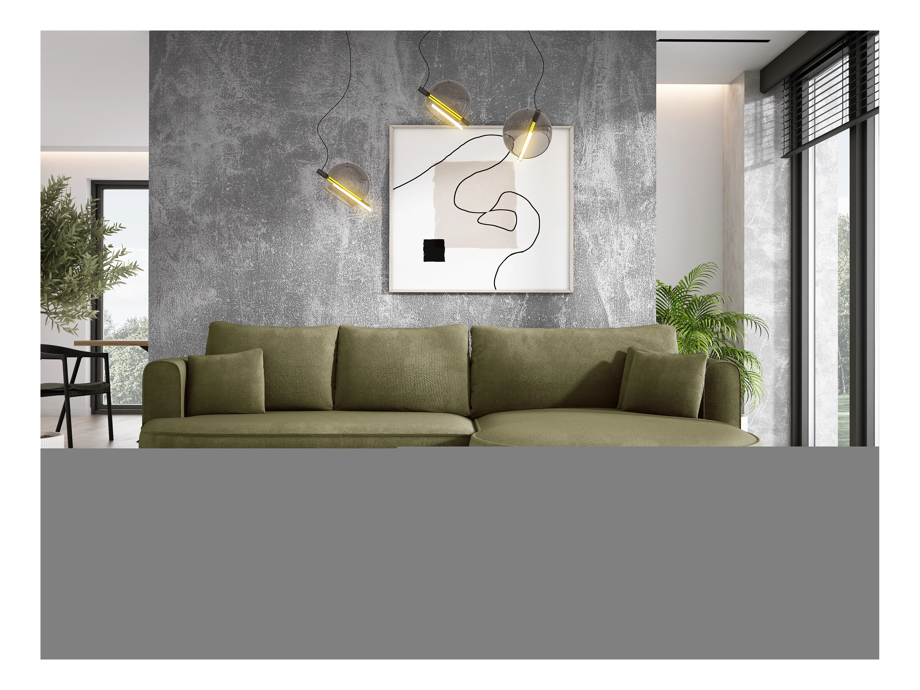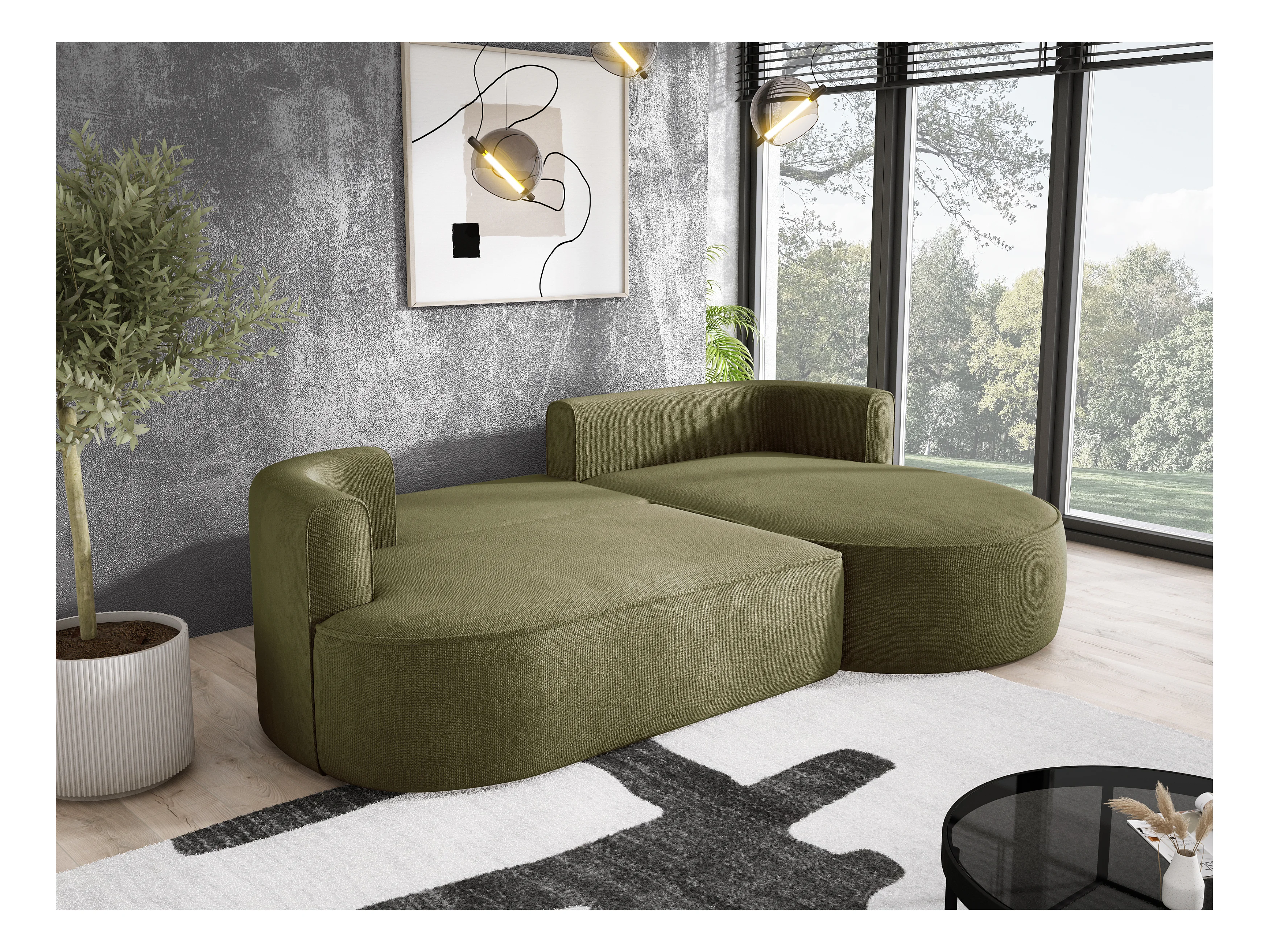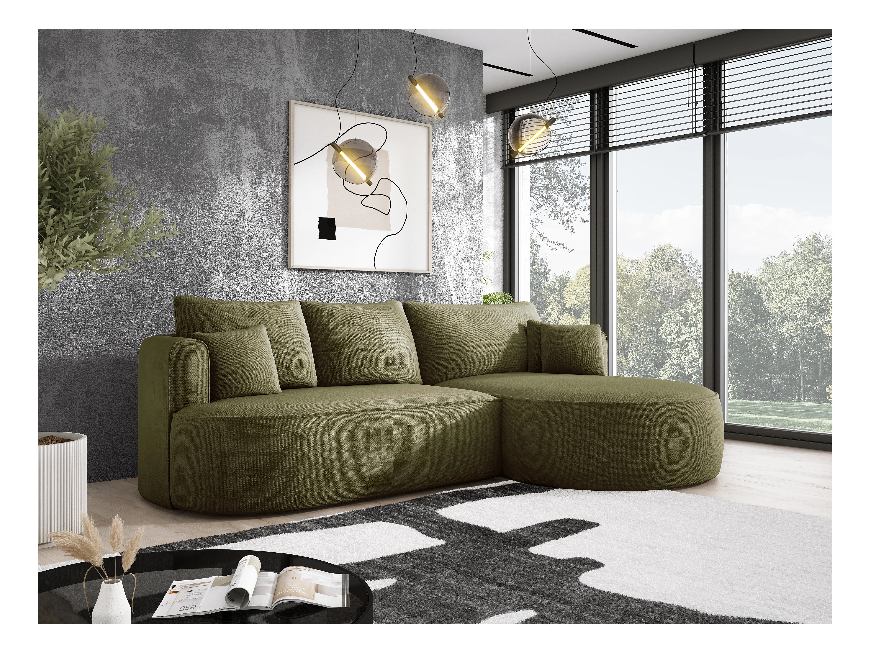 Ecksofa FIORE - umbaubar mit automatischer Öffnung, High Resilience Foam, modernes Design, rechts 284x183x82 cm, grün