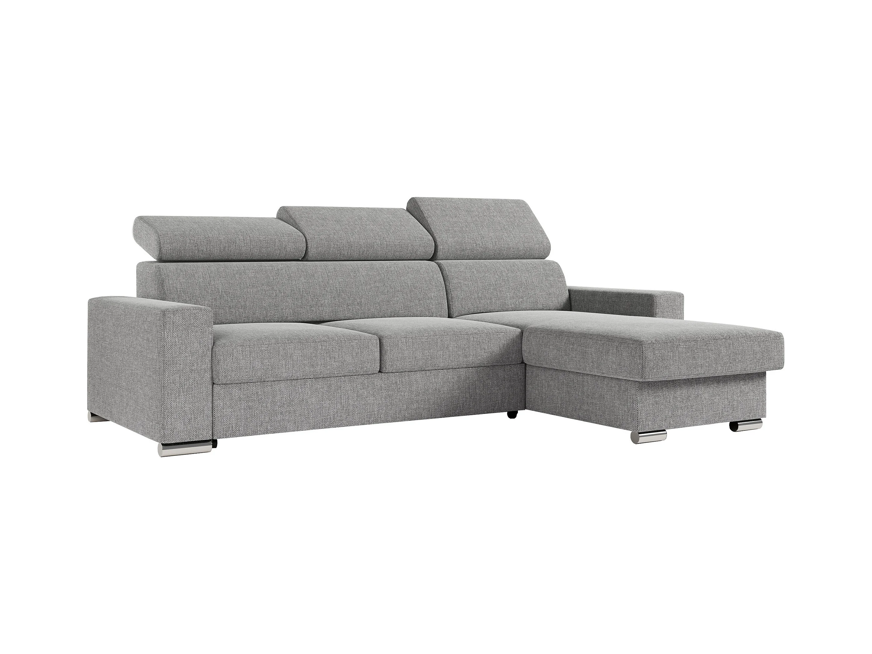 Ecksofa FOX, L-förmige Ecke, Schlaffunktion und Bettkasten, verstellbare Kopfstützen - Grau Stukture