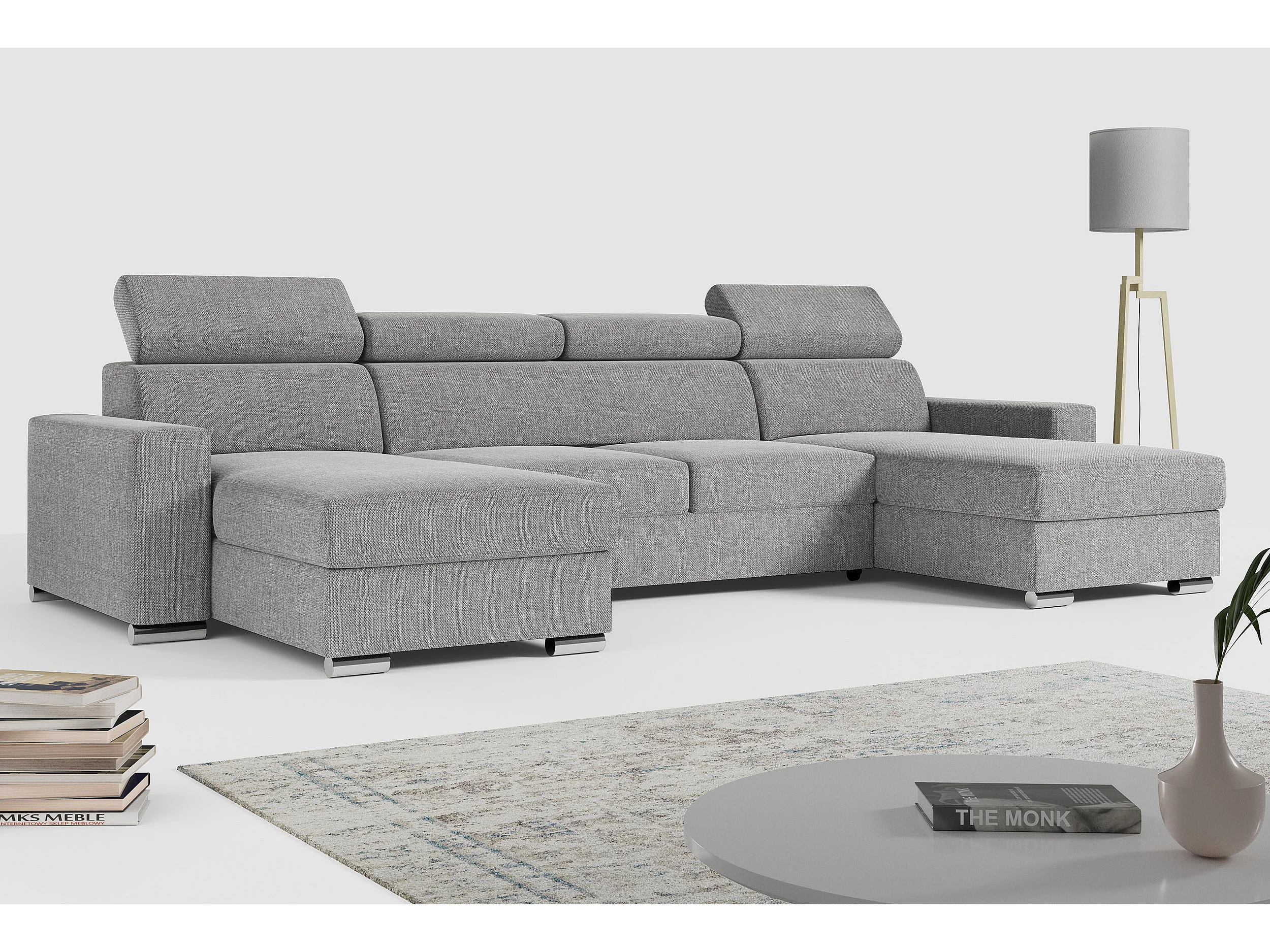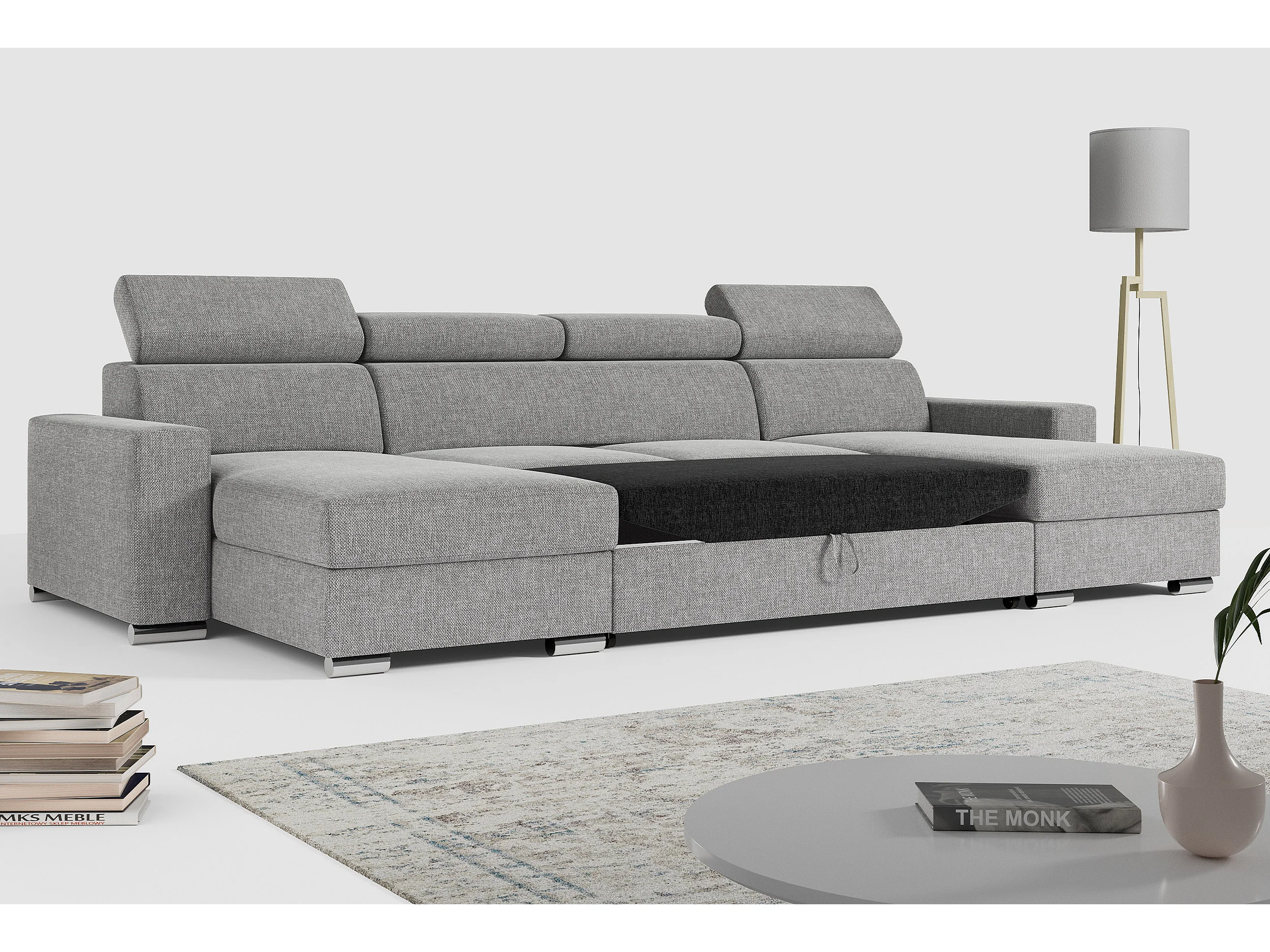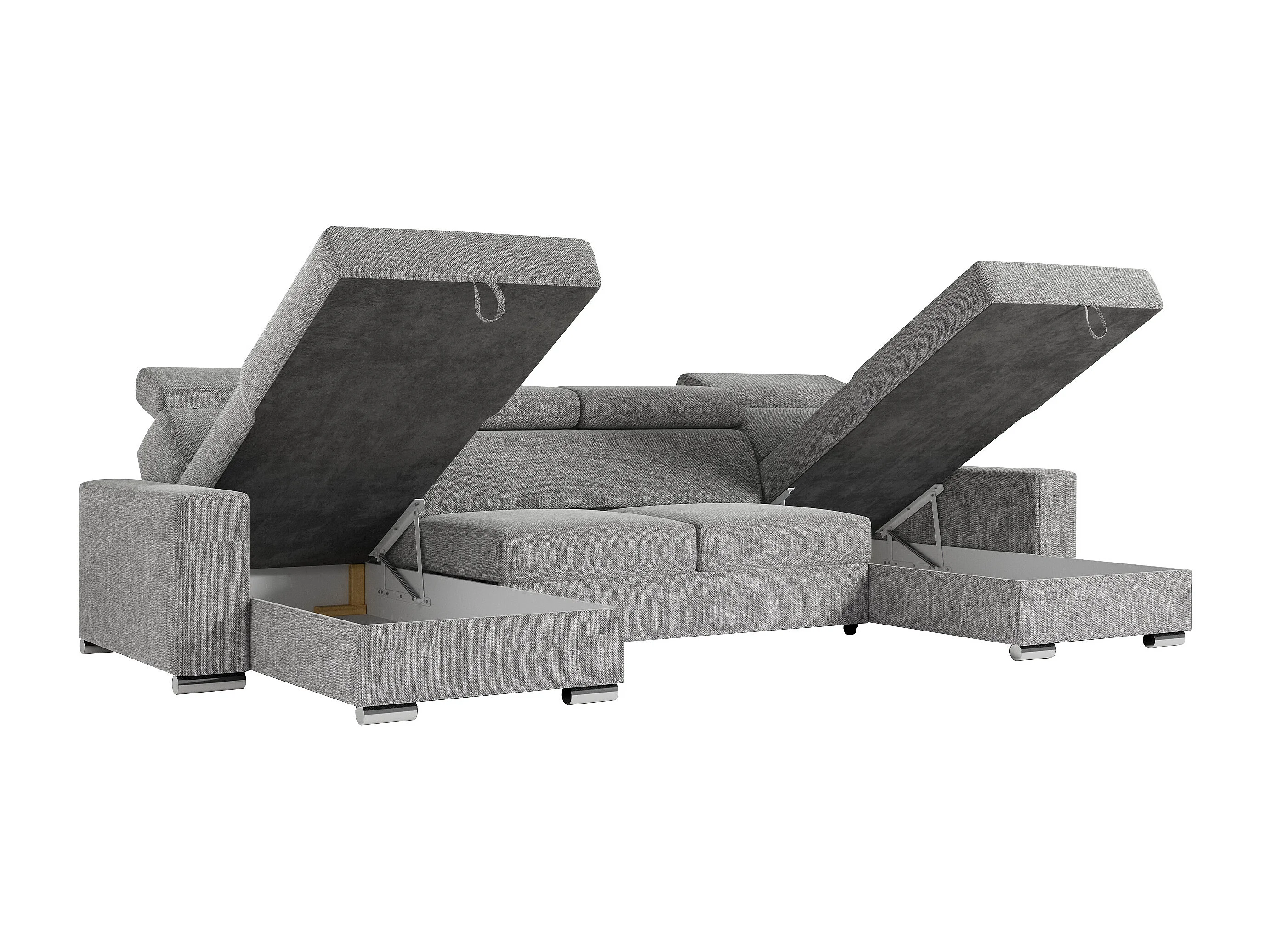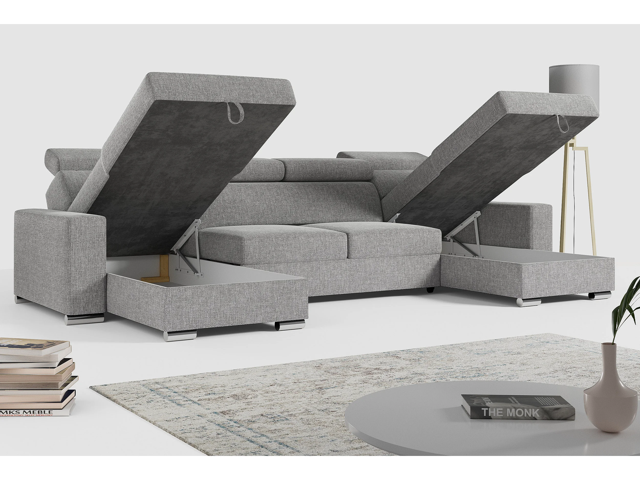 Ecksofa FOX U - verstellbare Kopfstützen, zwei Bettkästen, L-förmige Ecke mit Schlaffunktion, Armlehnen - Hellgrau, Stukture