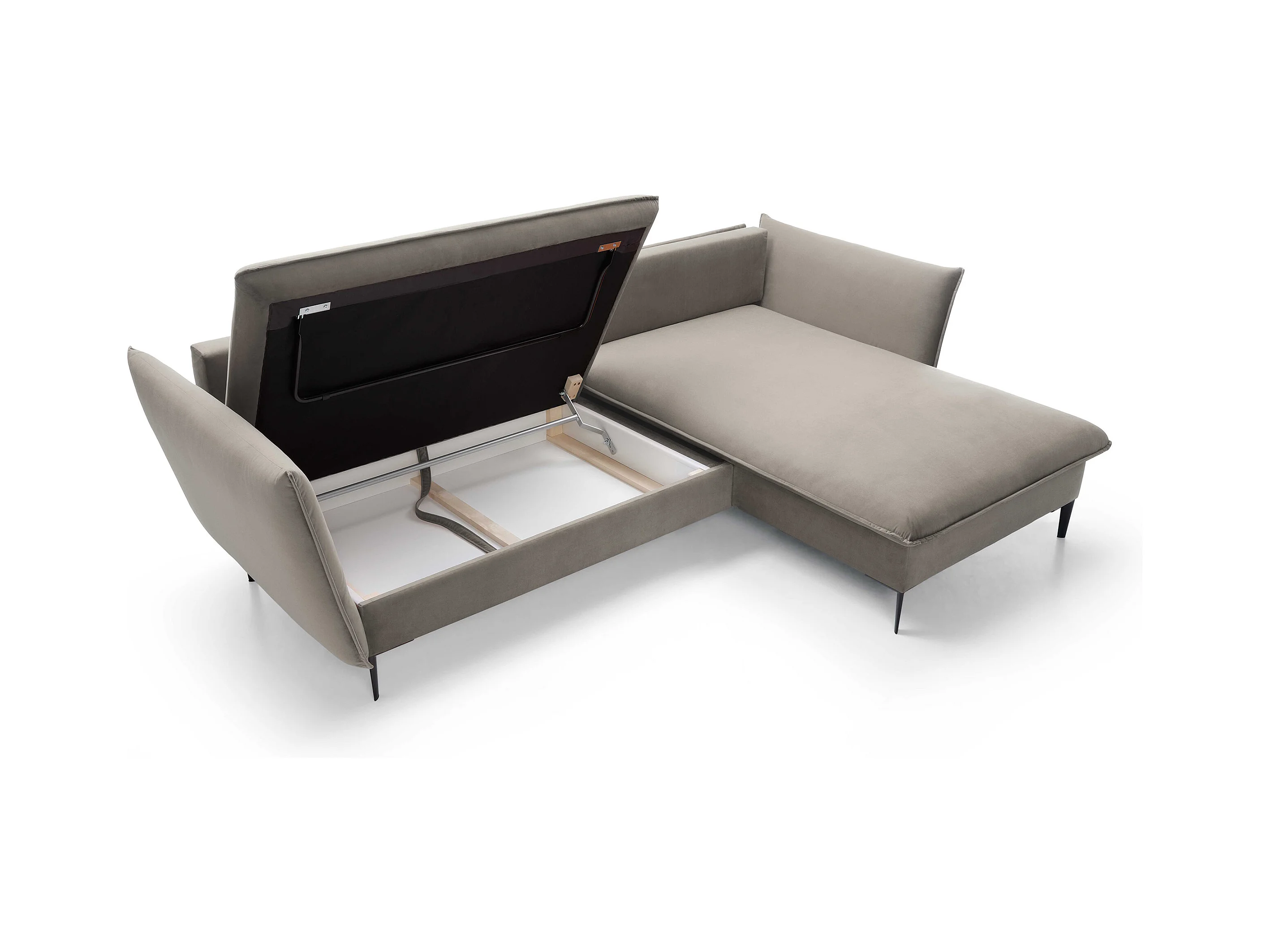 Ecksofa GLOSS mit Schlaffunktion, Ottomane & goldenen Füßen – Samtsofa im GLOSSour-Stil mit Zierkissen, 258x167x91cm, Rechte Seite GRÜN