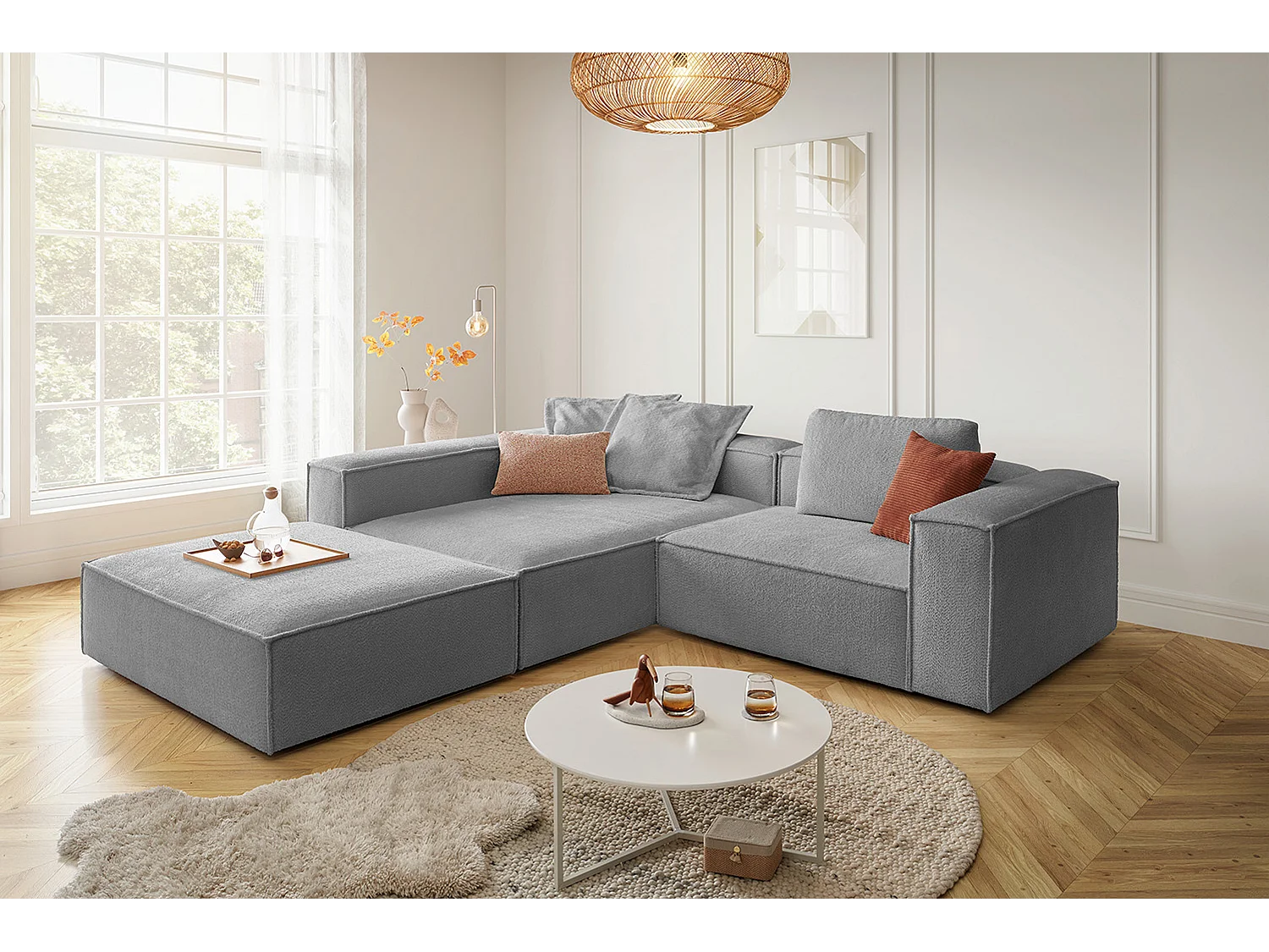 Ecksofa - Grau Flachgewebe - CARMO