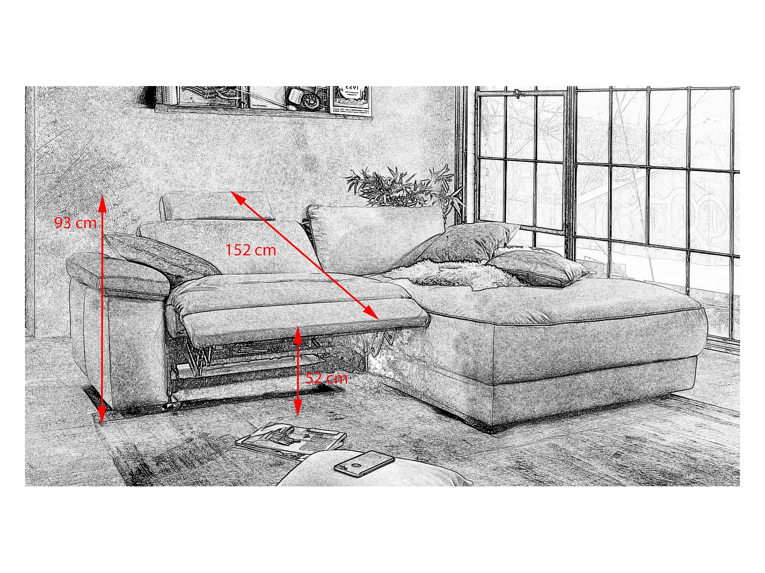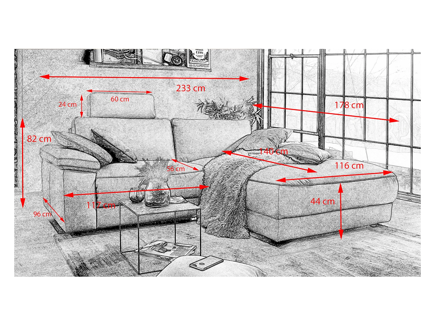 Ecksofa - Grau Webstoff - LOLA