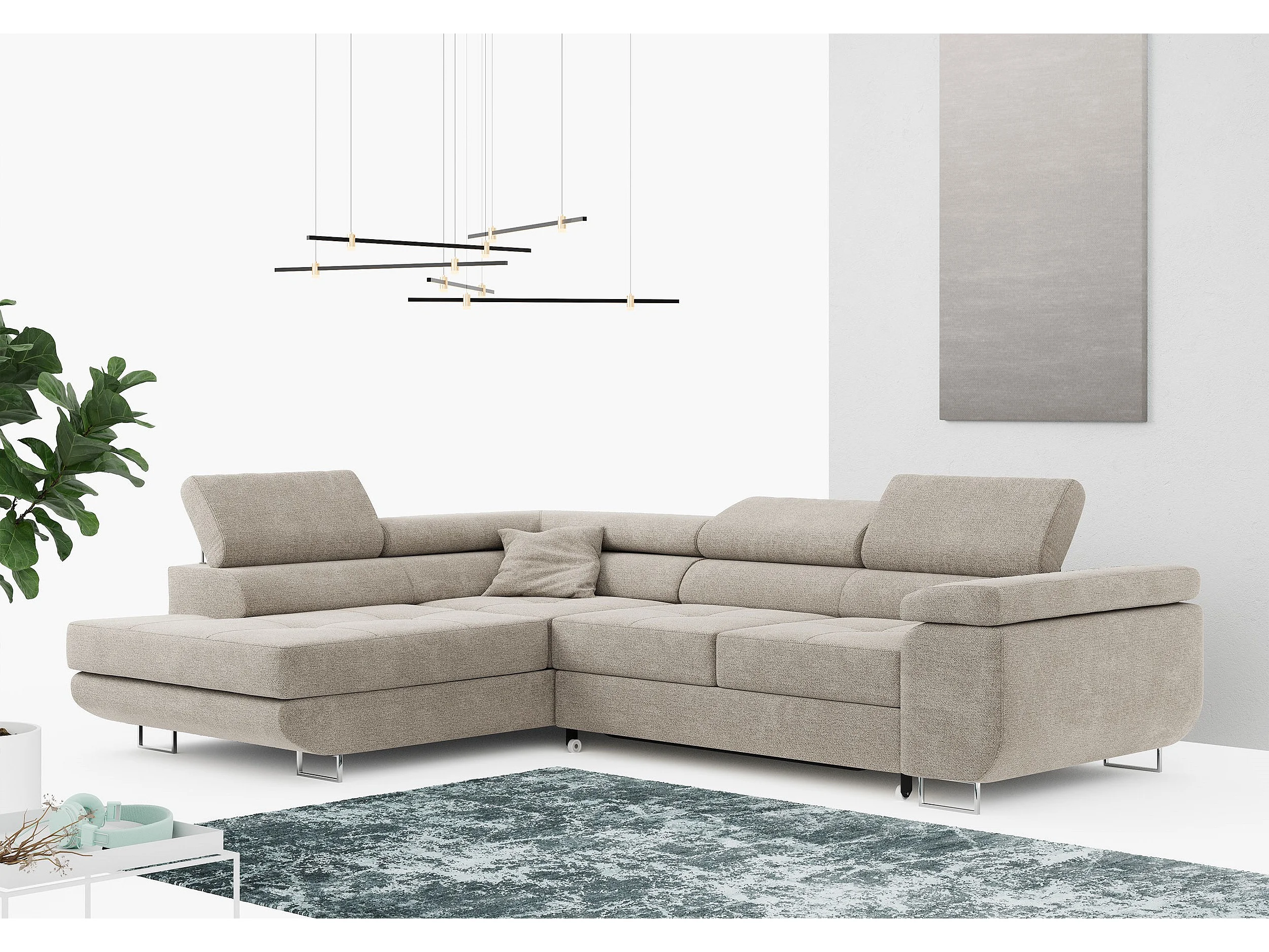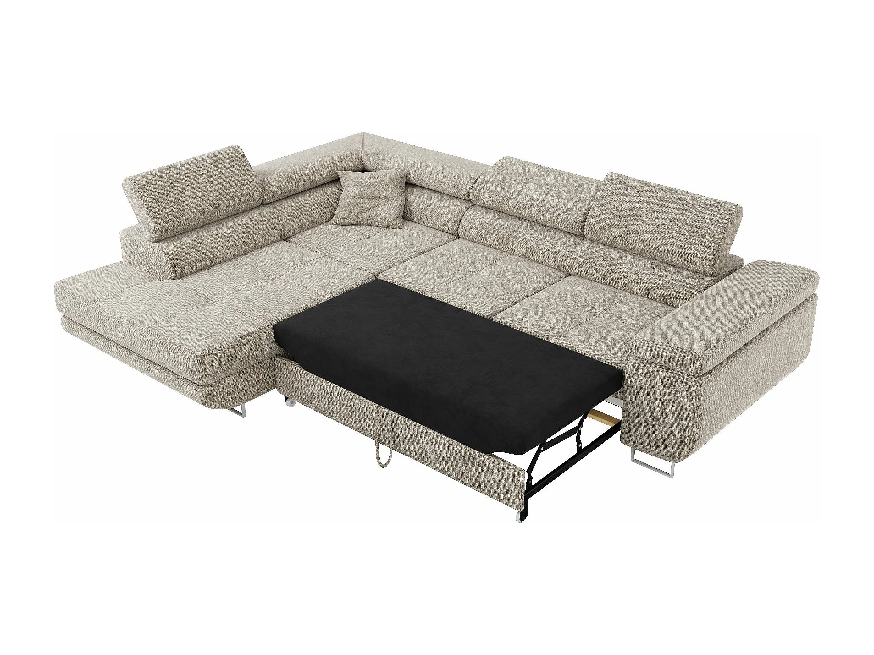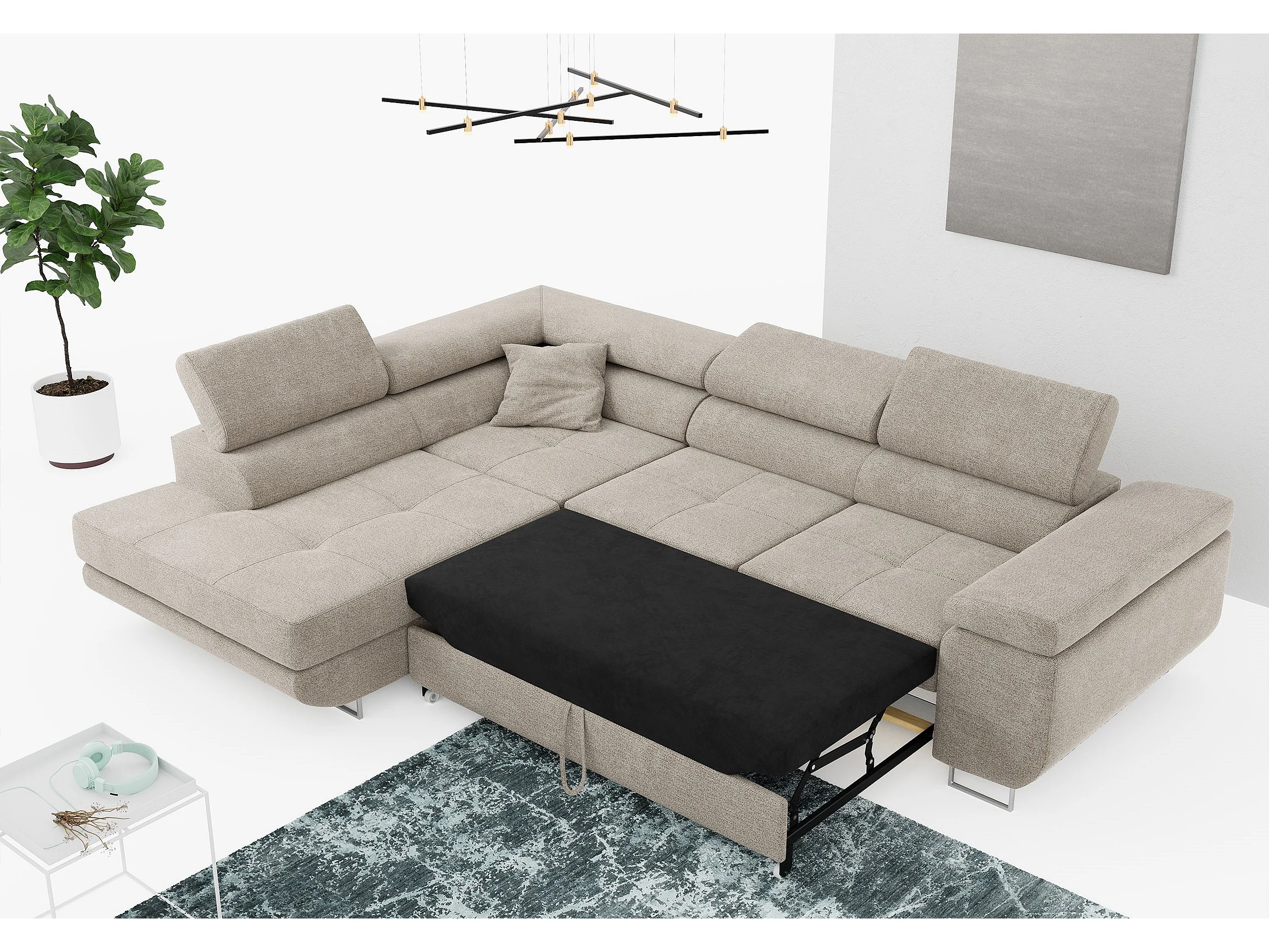 Ecksofa GUSTAW - mit Schlaffunktion, verstellbare Kopfstützen, Metallbeine - Beige Stukture - Ecke Links