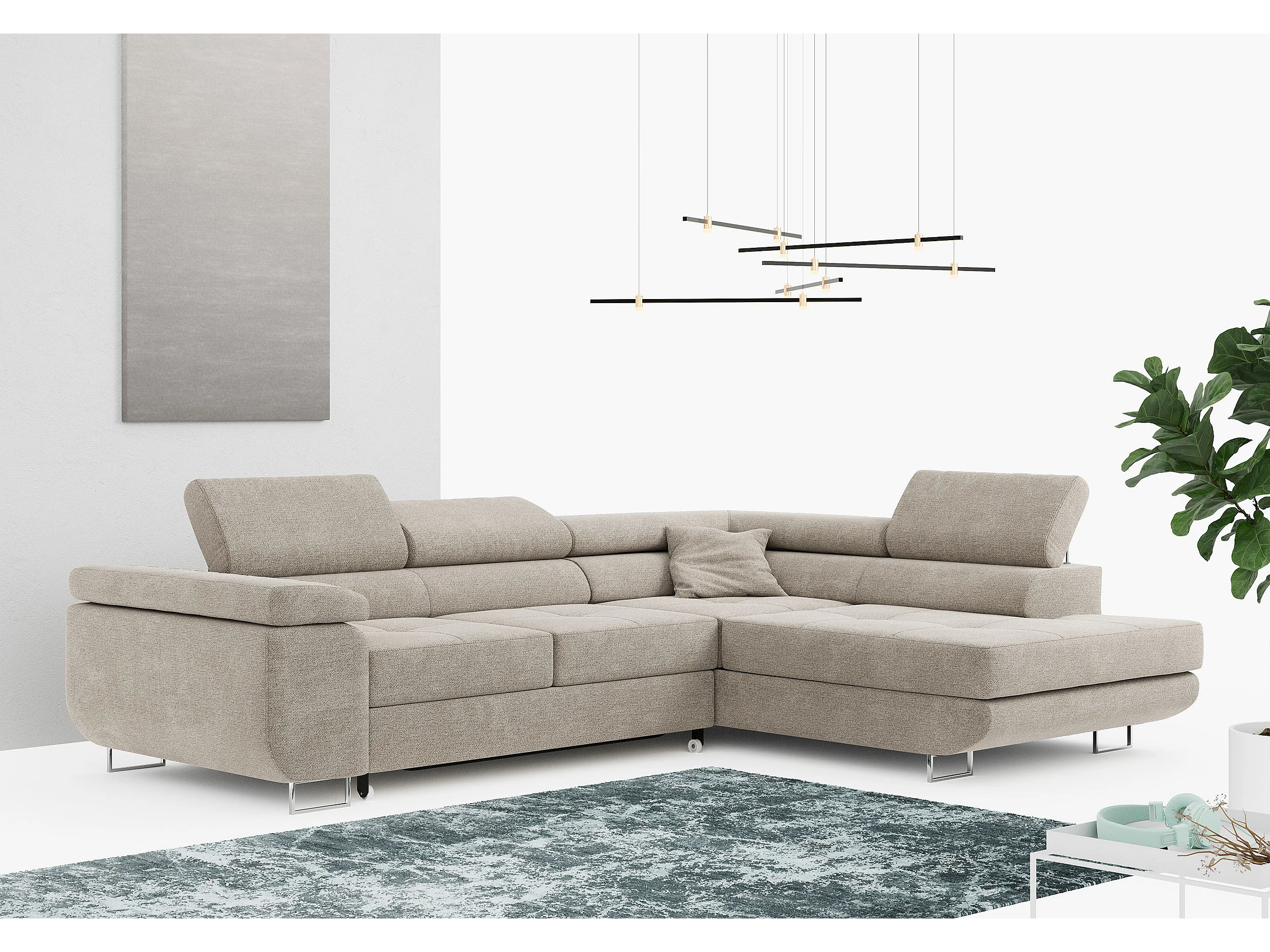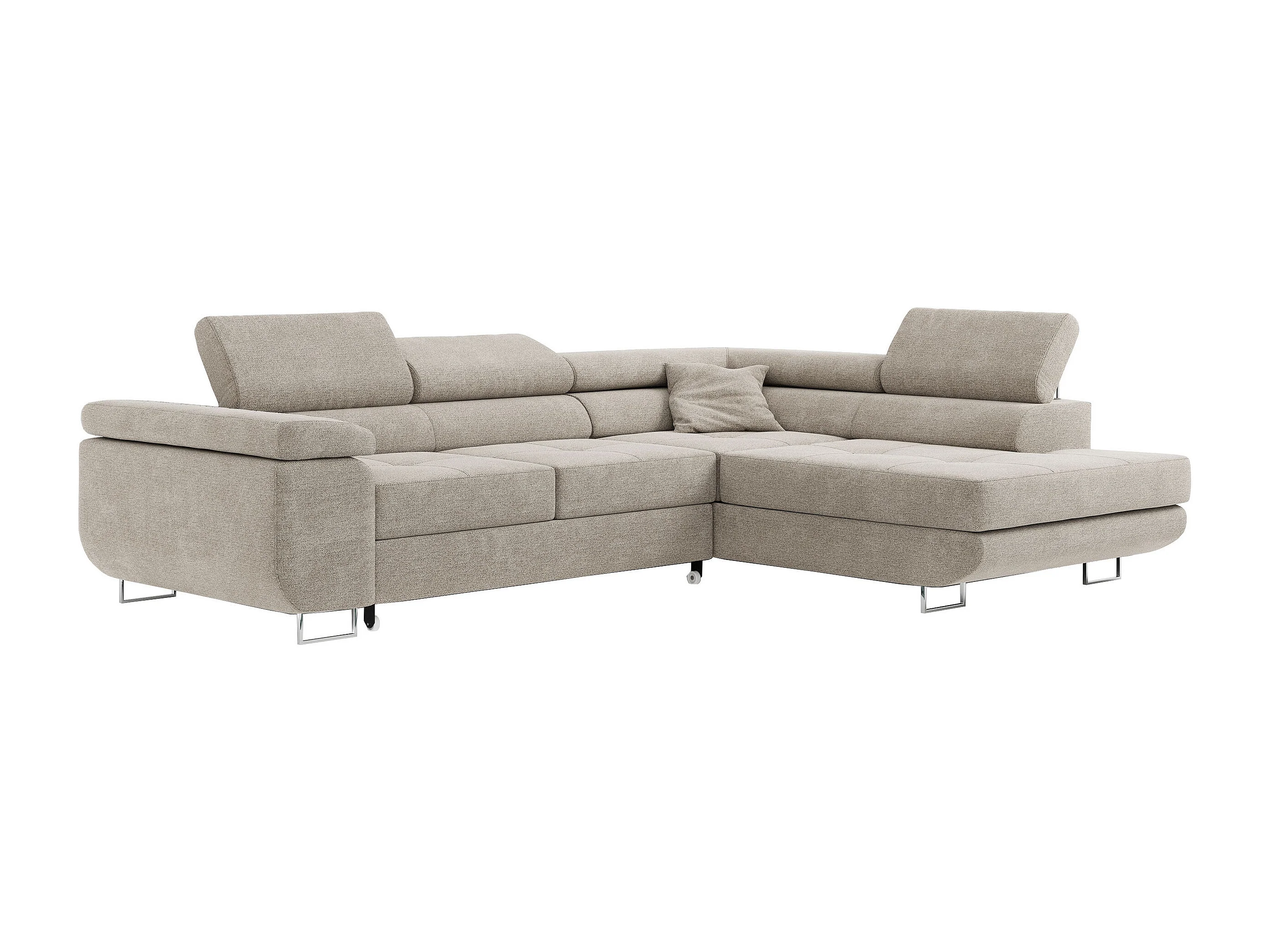 Ecksofa GUSTAW - mit Schlaffunktion, verstellbare Kopfstützen, Metallbeine - Beige Stukture - Ecke Rechts