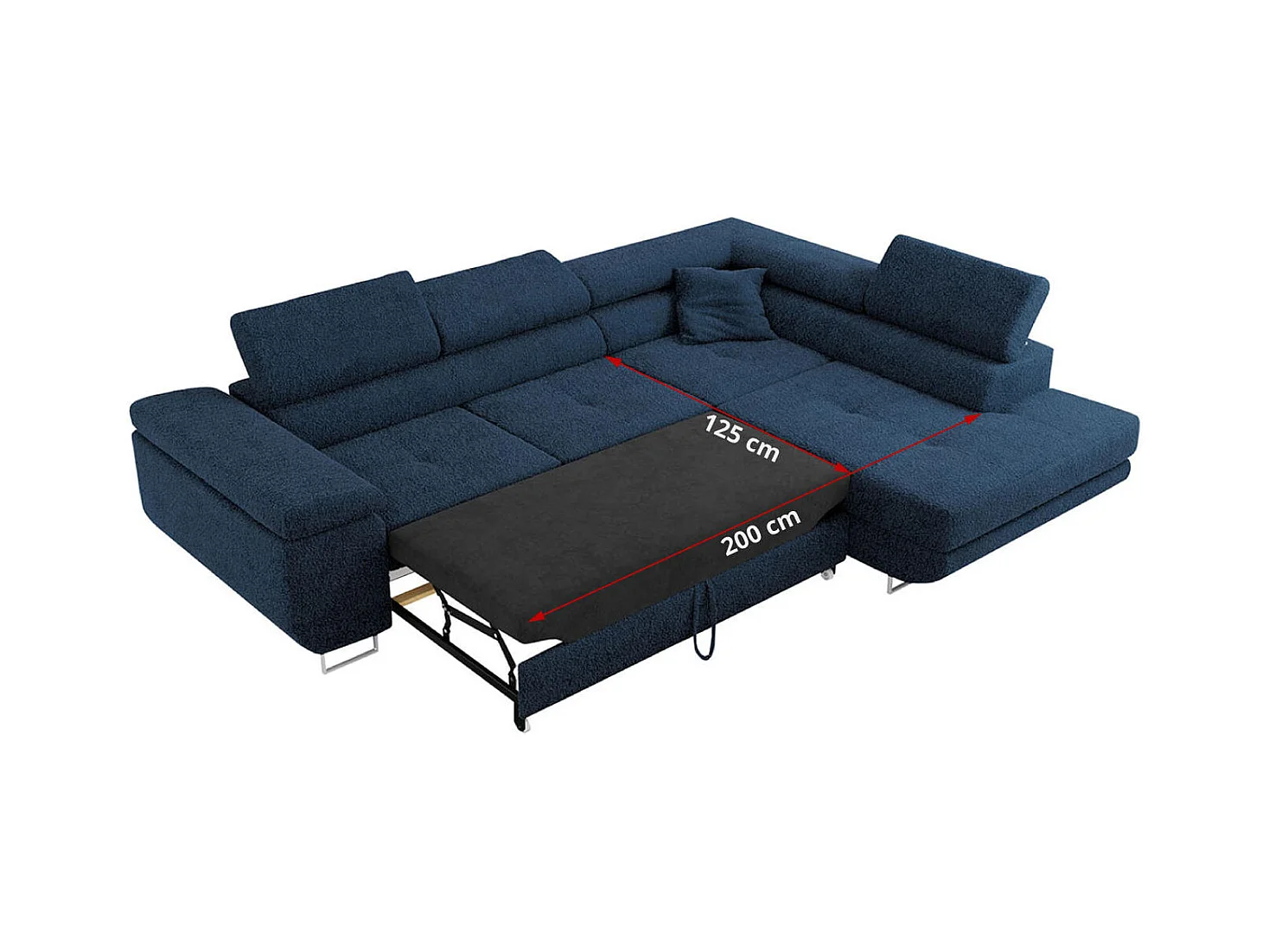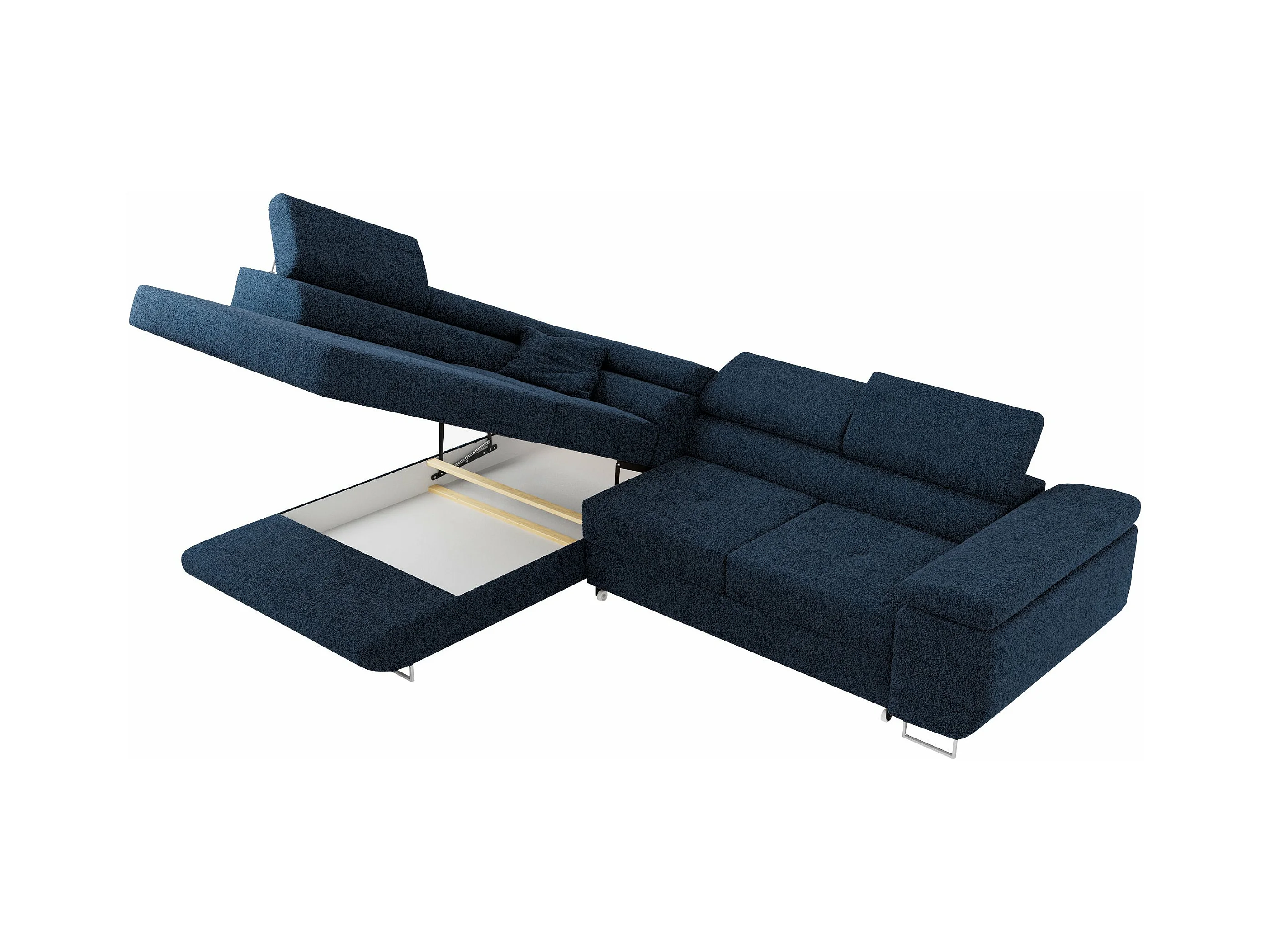 Ecksofa GUSTAW - mit Schlaffunktion, verstellbare Kopfstützen, Metallbeine - Dunkelblau Boucle - Ecke Links