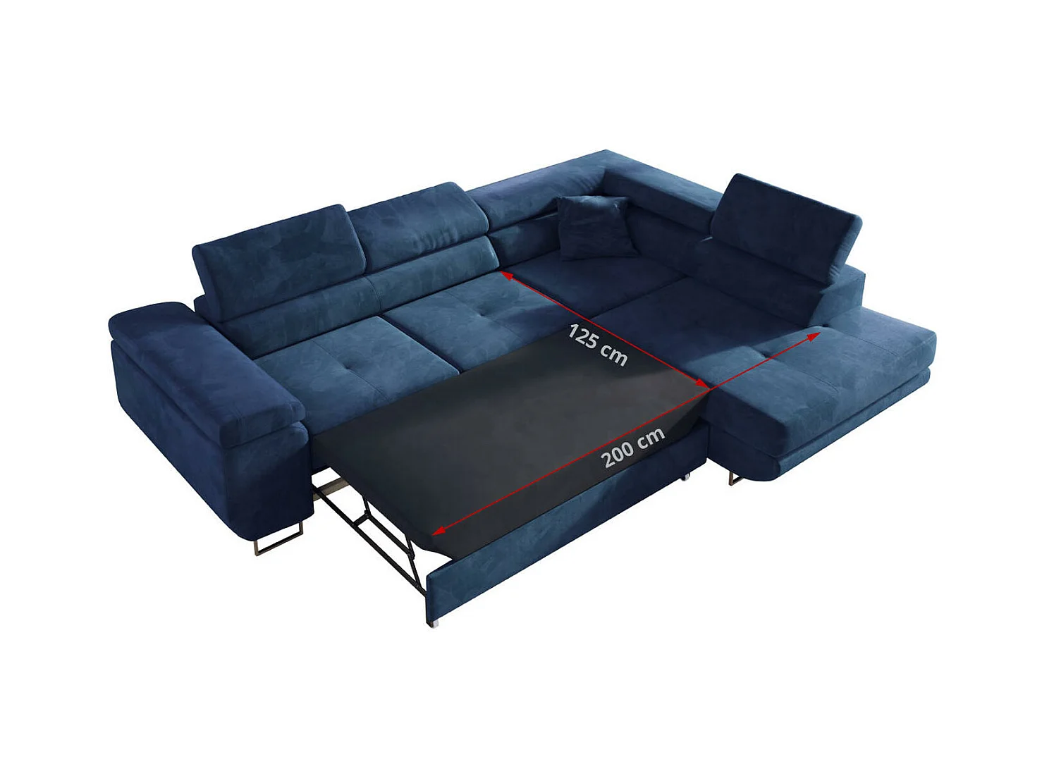 Ecksofa GUSTAW - mit Schlaffunktion, verstellbare Kopfstützen, Metallbeine - Dunkelblau Velvet - Ecke Rechts