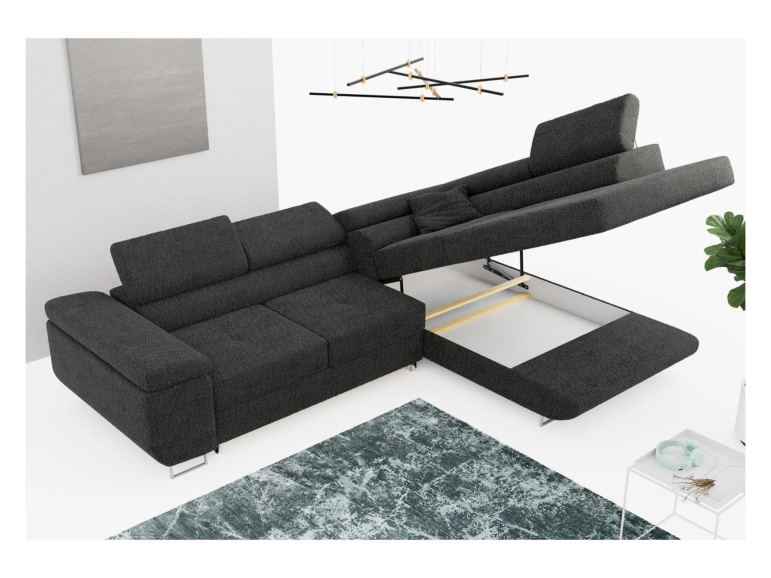 Ecksofa GUSTAW - mit Schlaffunktion, verstellbare Kopfstützen, Metallbeine - Dunkelgrau Boucle - Ecke Rechts