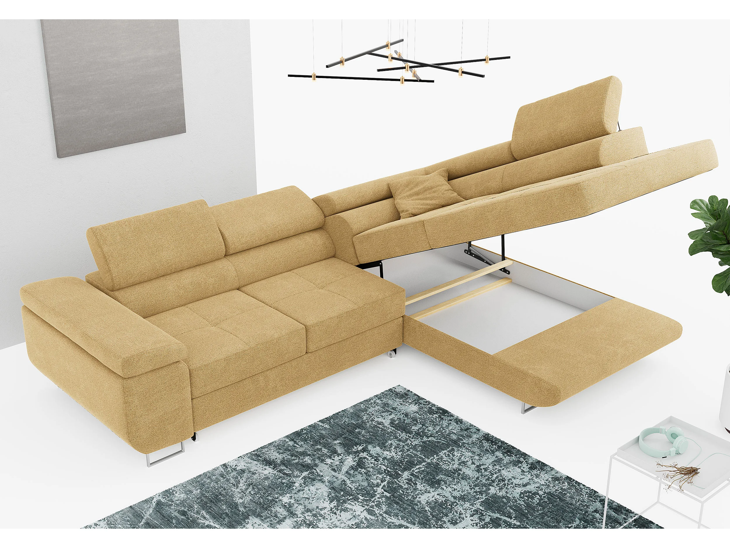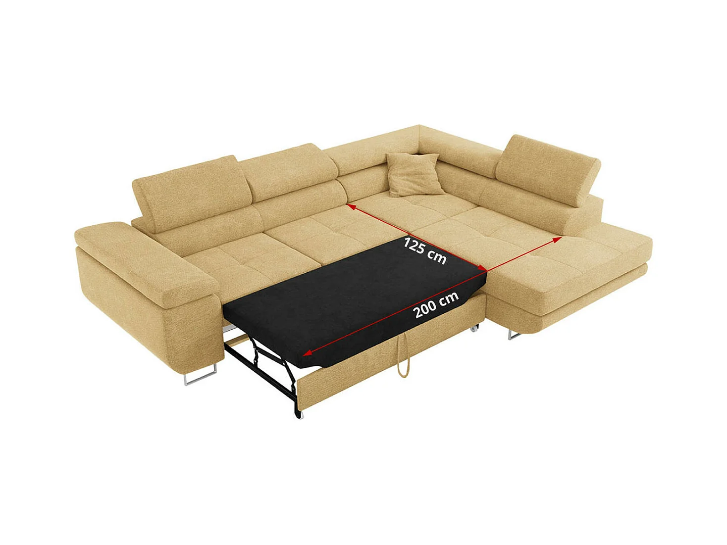 Ecksofa GUSTAW - mit Schlaffunktion, verstellbare Kopfstützen, Metallbeine - Gelb Stukture - Ecke Rechts