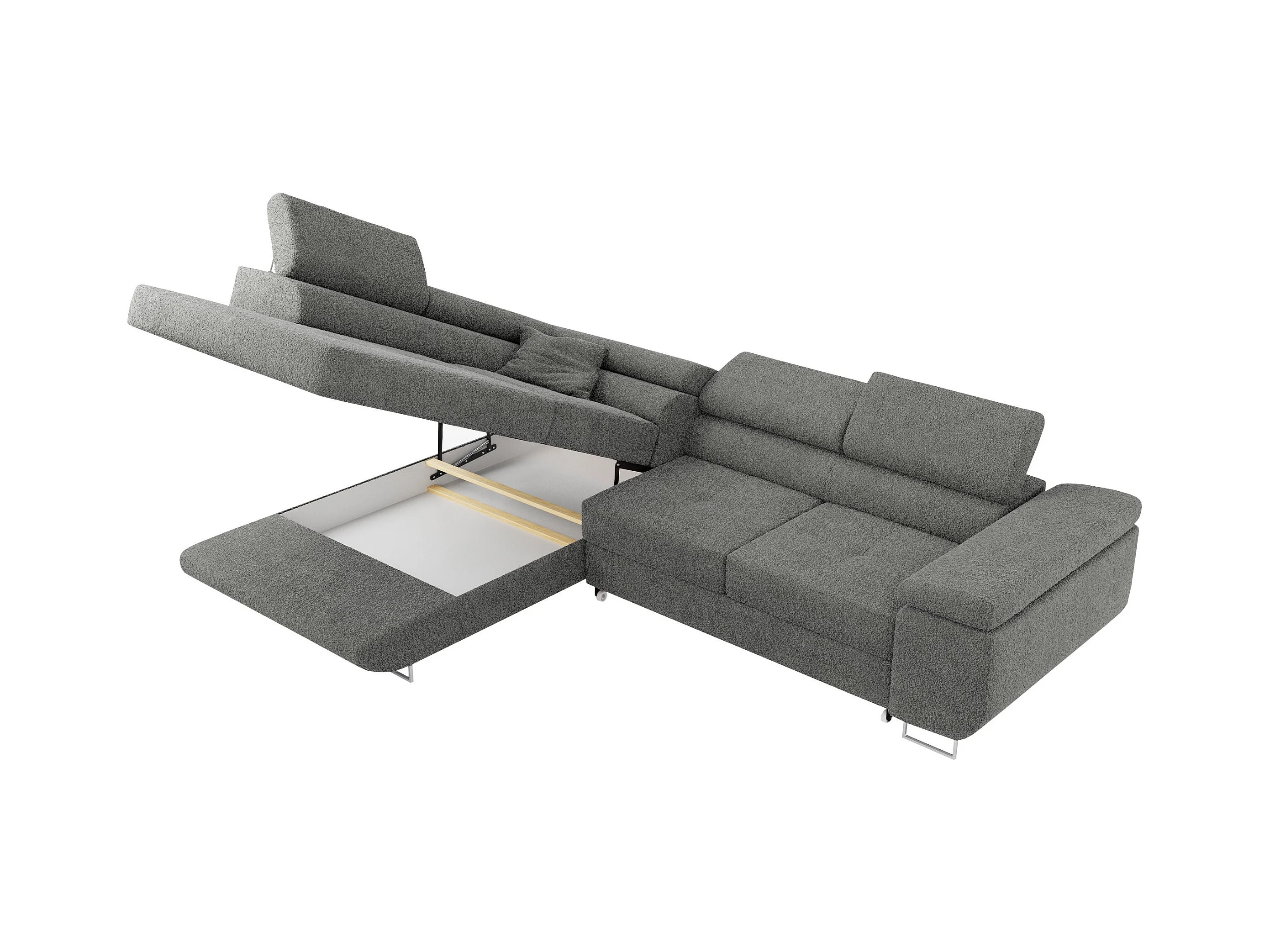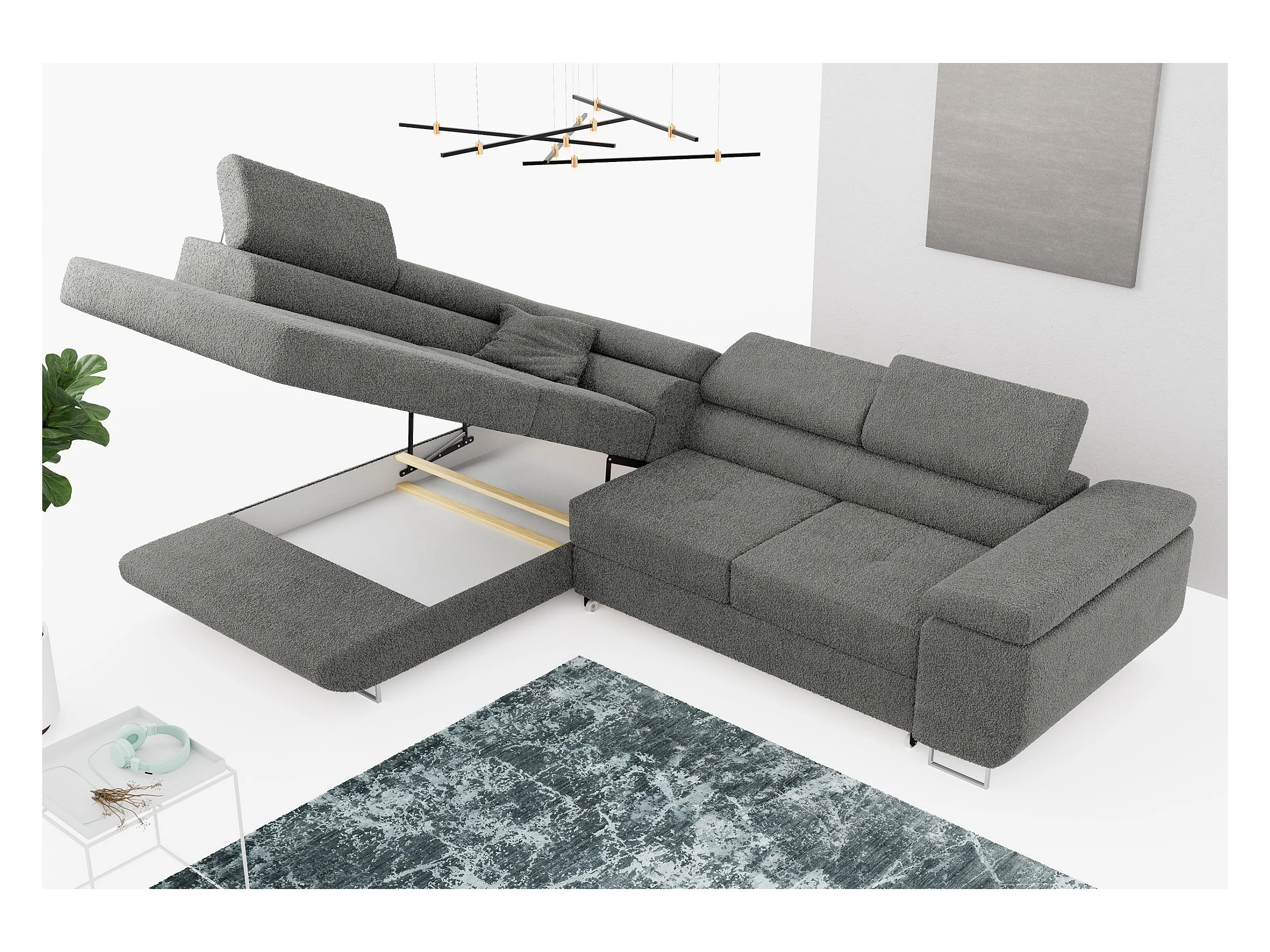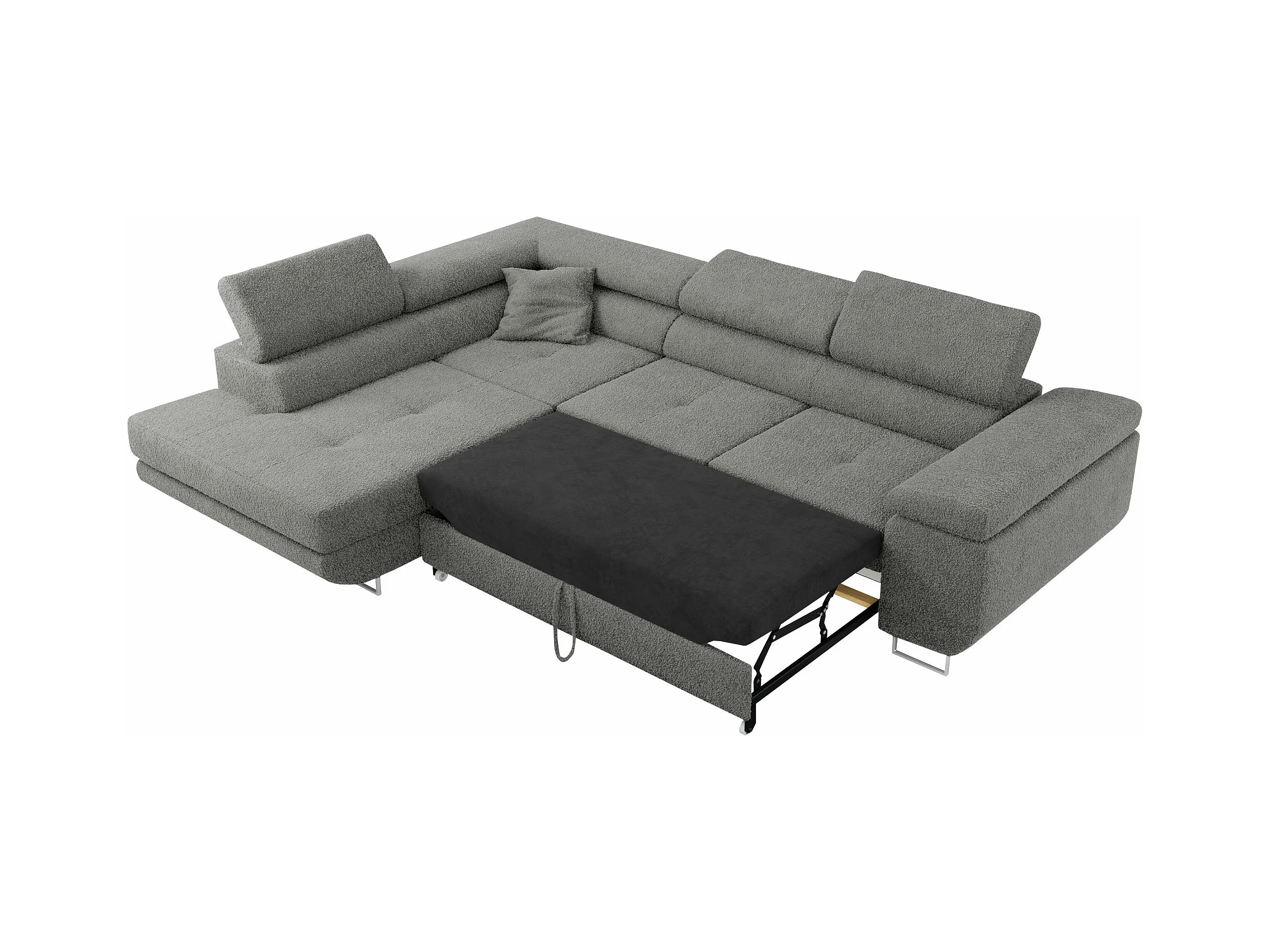 Ecksofa GUSTAW - mit Schlaffunktion, verstellbare Kopfstützen, Metallbeine - Grau Boucle - Ecke Links