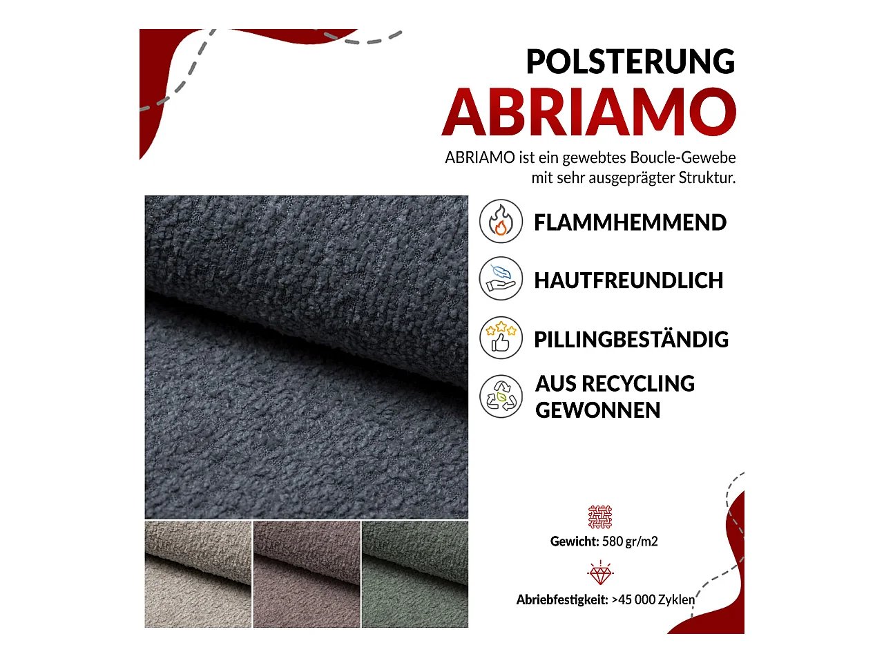 Ecksofa GUSTAW - mit Schlaffunktion, verstellbare Kopfstützen, Metallbeine - Hellgrau Boucle - Ecke Links
