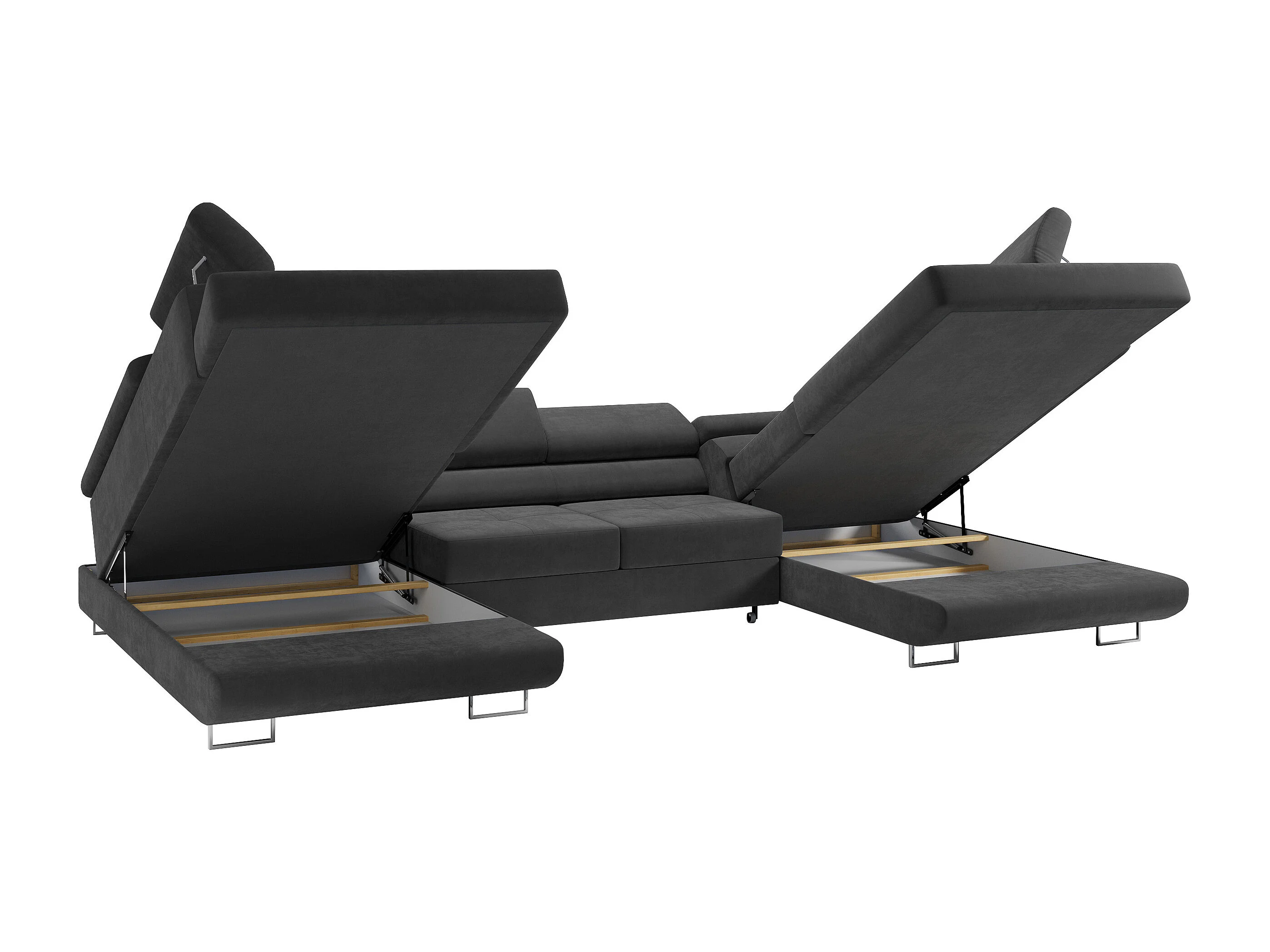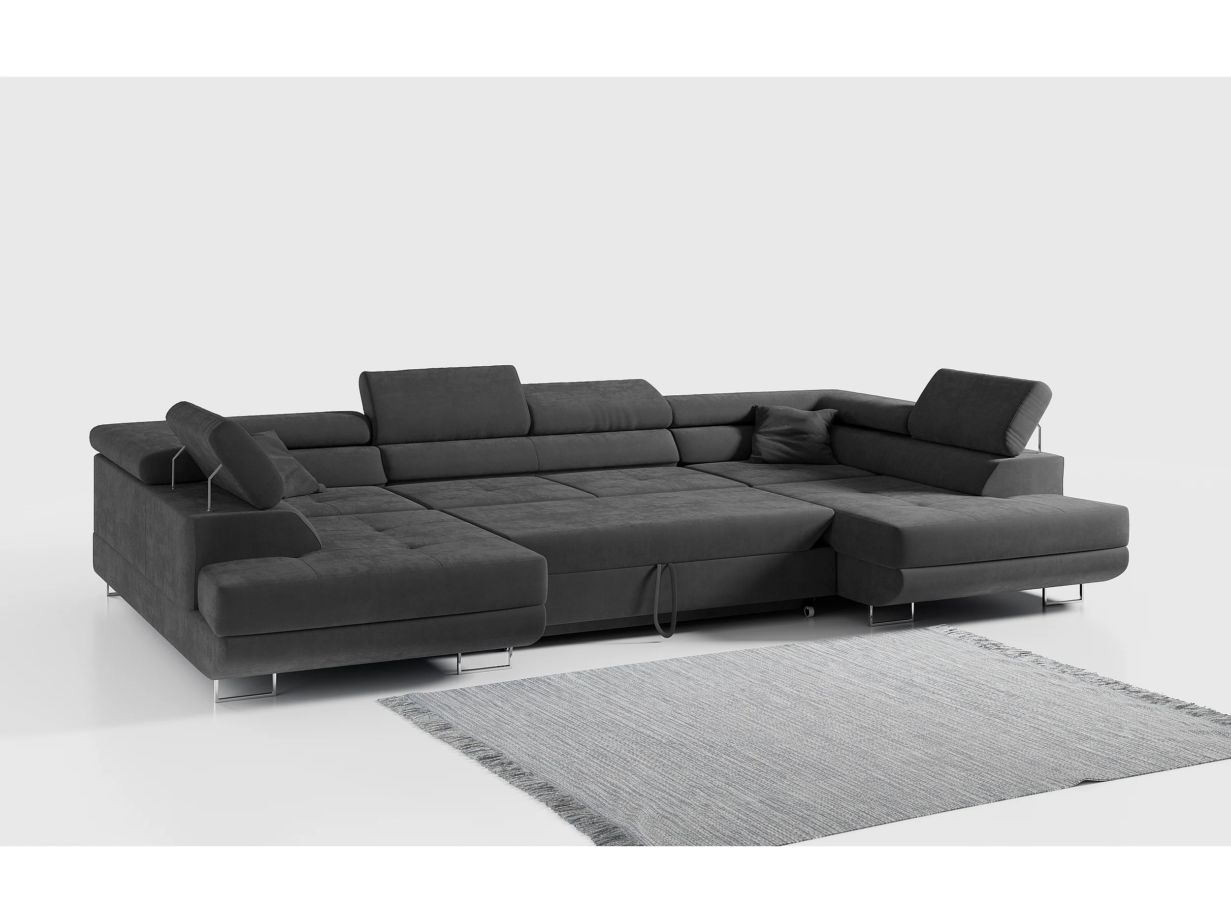 Ecksofa GUSTAW U, mit Schlaffunktion, Großes U-form ecksofa, XXL Wohnlandschaft, verstellbare Kopfstützen - Dunkelgrau Velvet