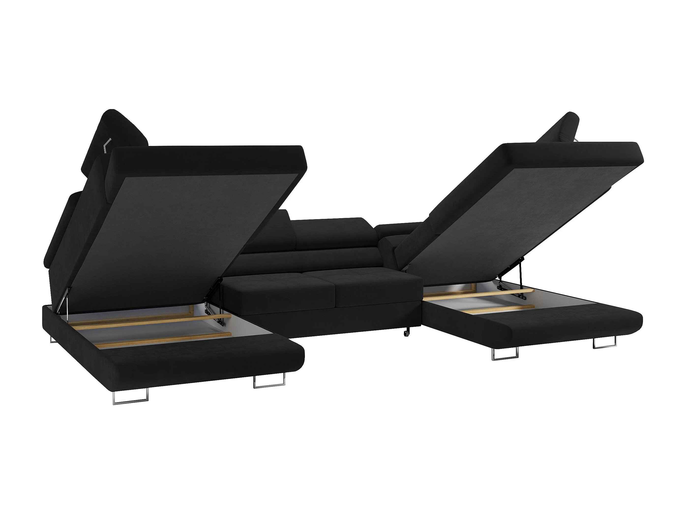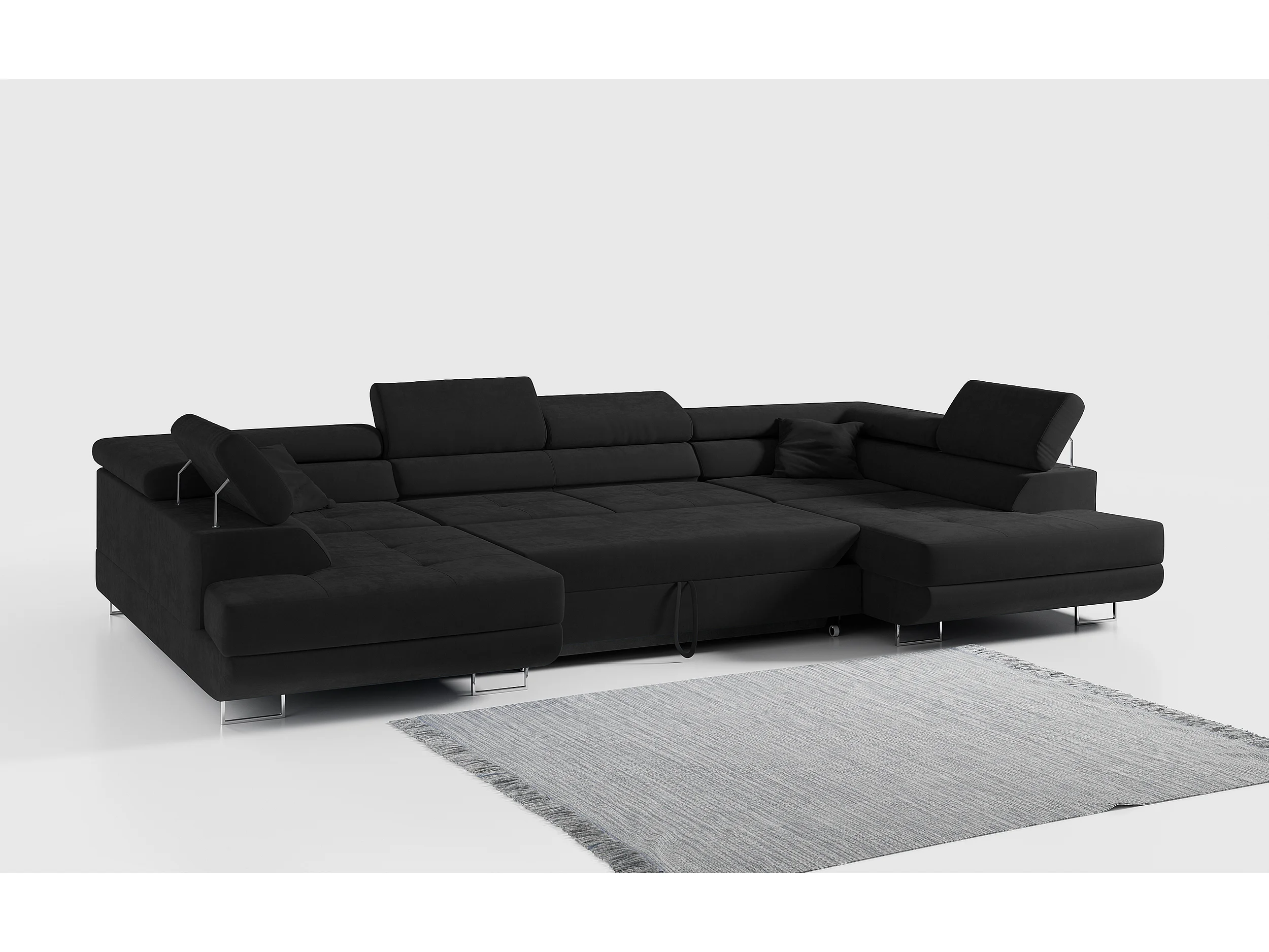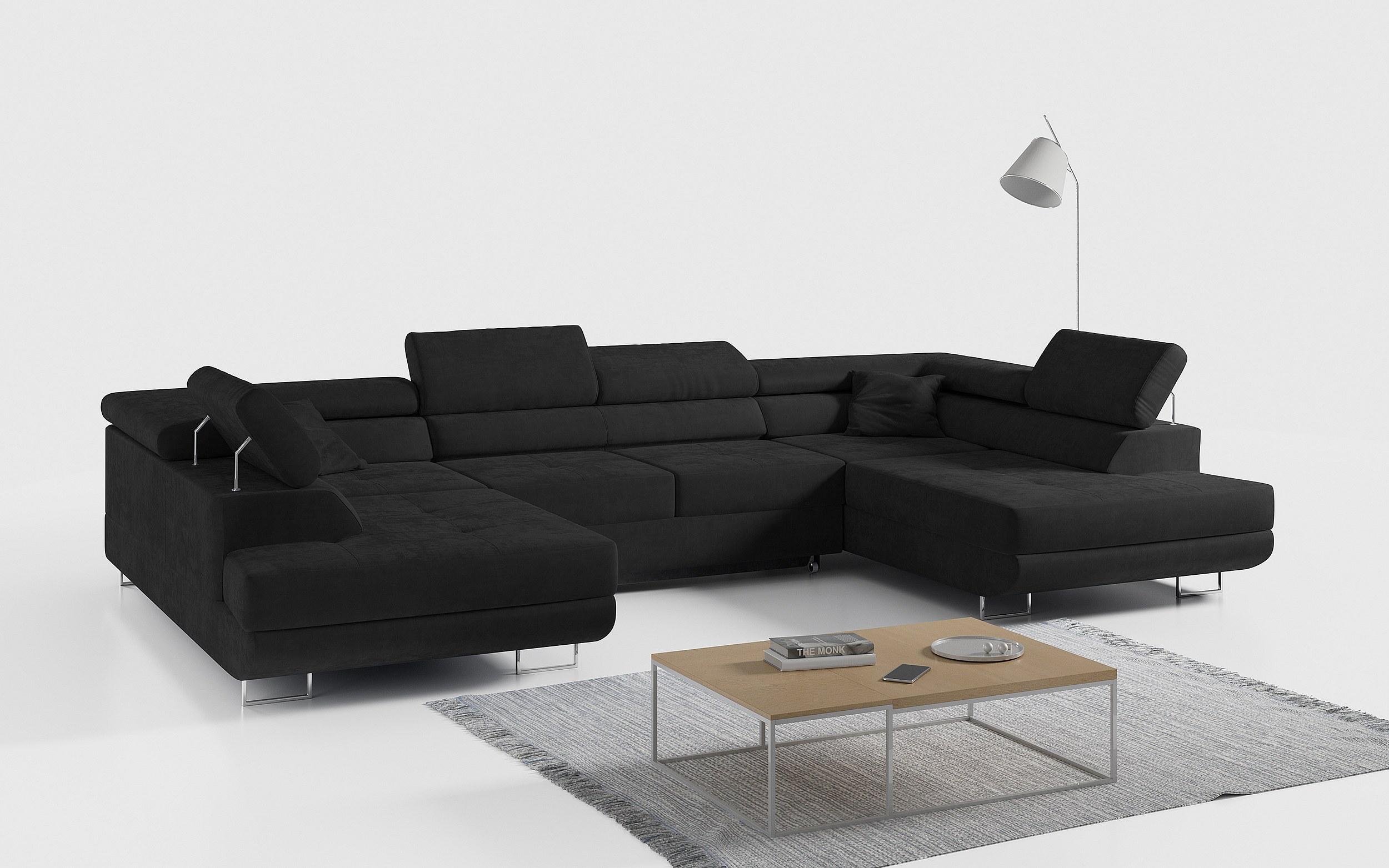 Ecksofa GUSTAW U, mit Schlaffunktion, Großes U-form ecksofa, XXL Wohnlandschaft, verstellbare Kopfstützen - Schwarz Velvet