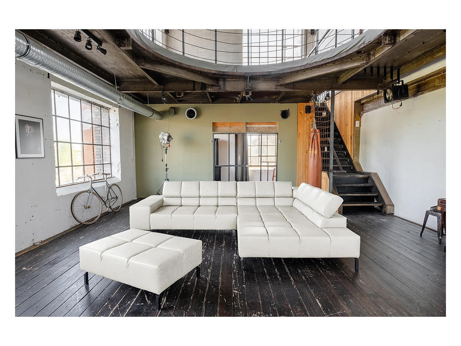 Ecksofa - Hellgrau Leder - NELSON