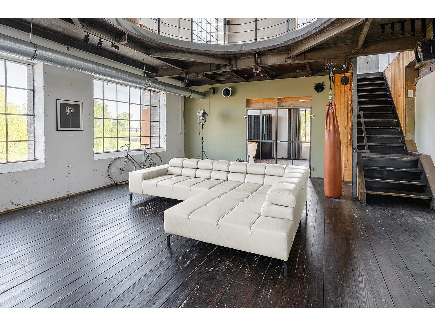 Ecksofa - Hellgrau Leder - NELSON