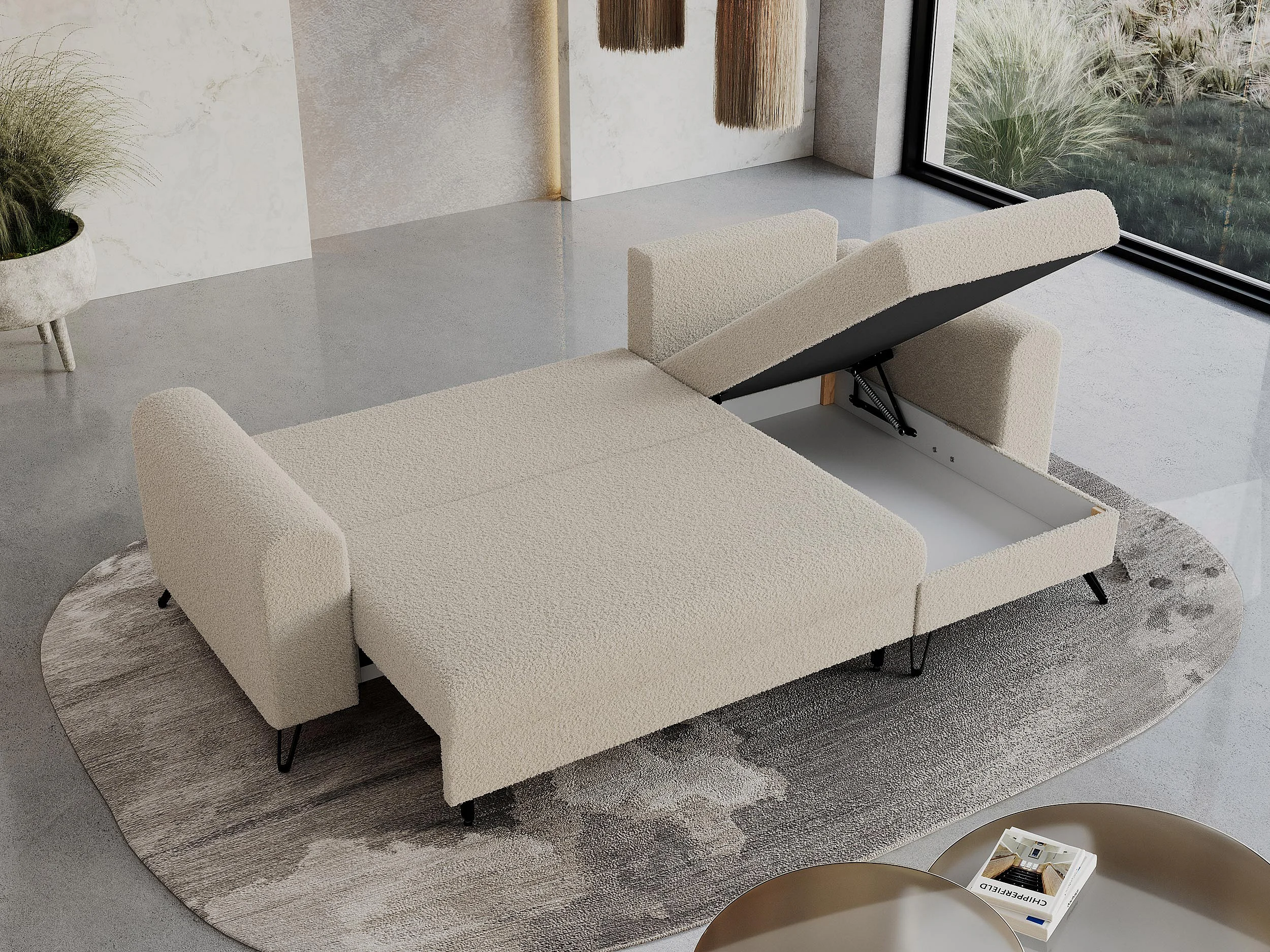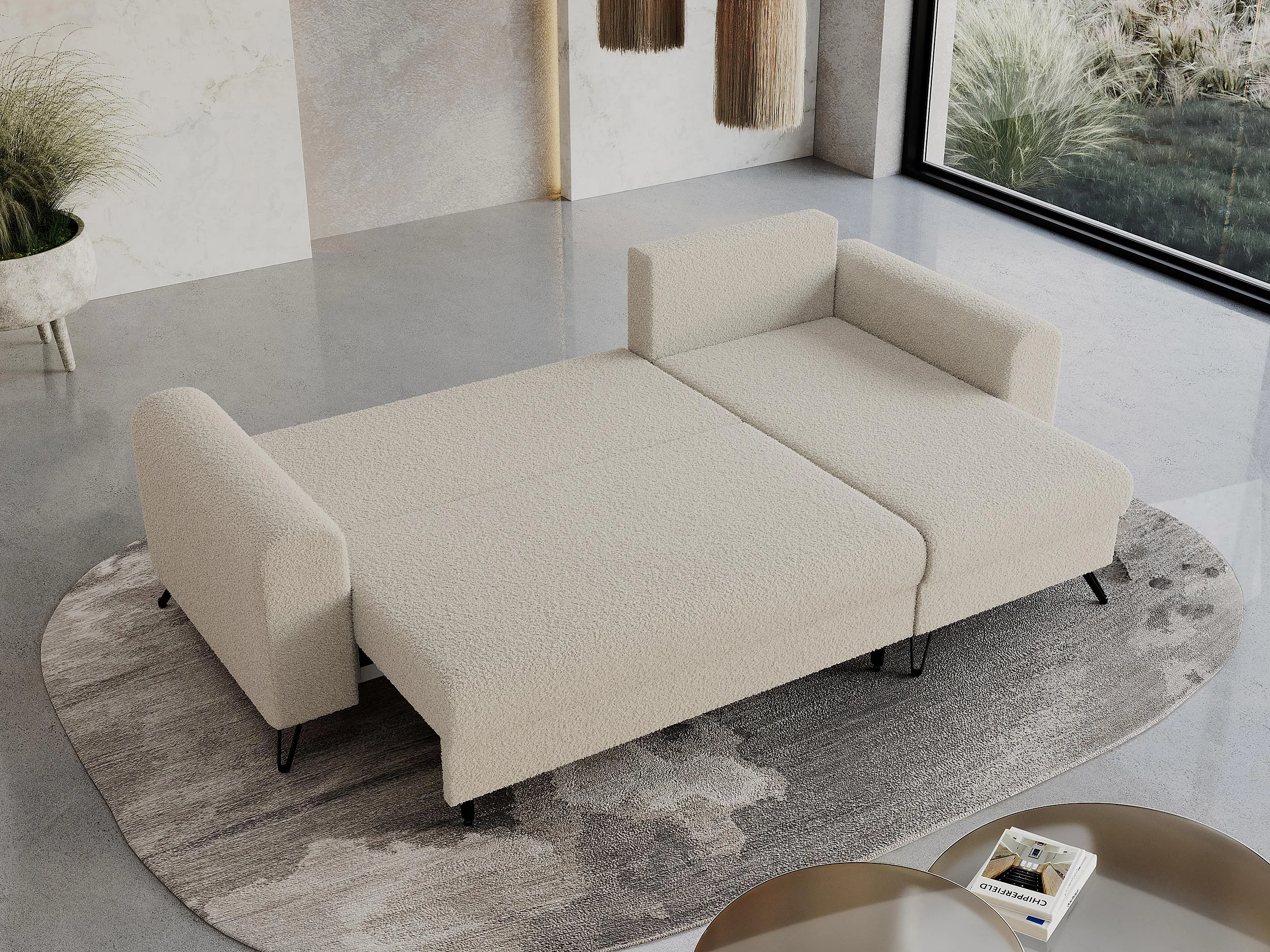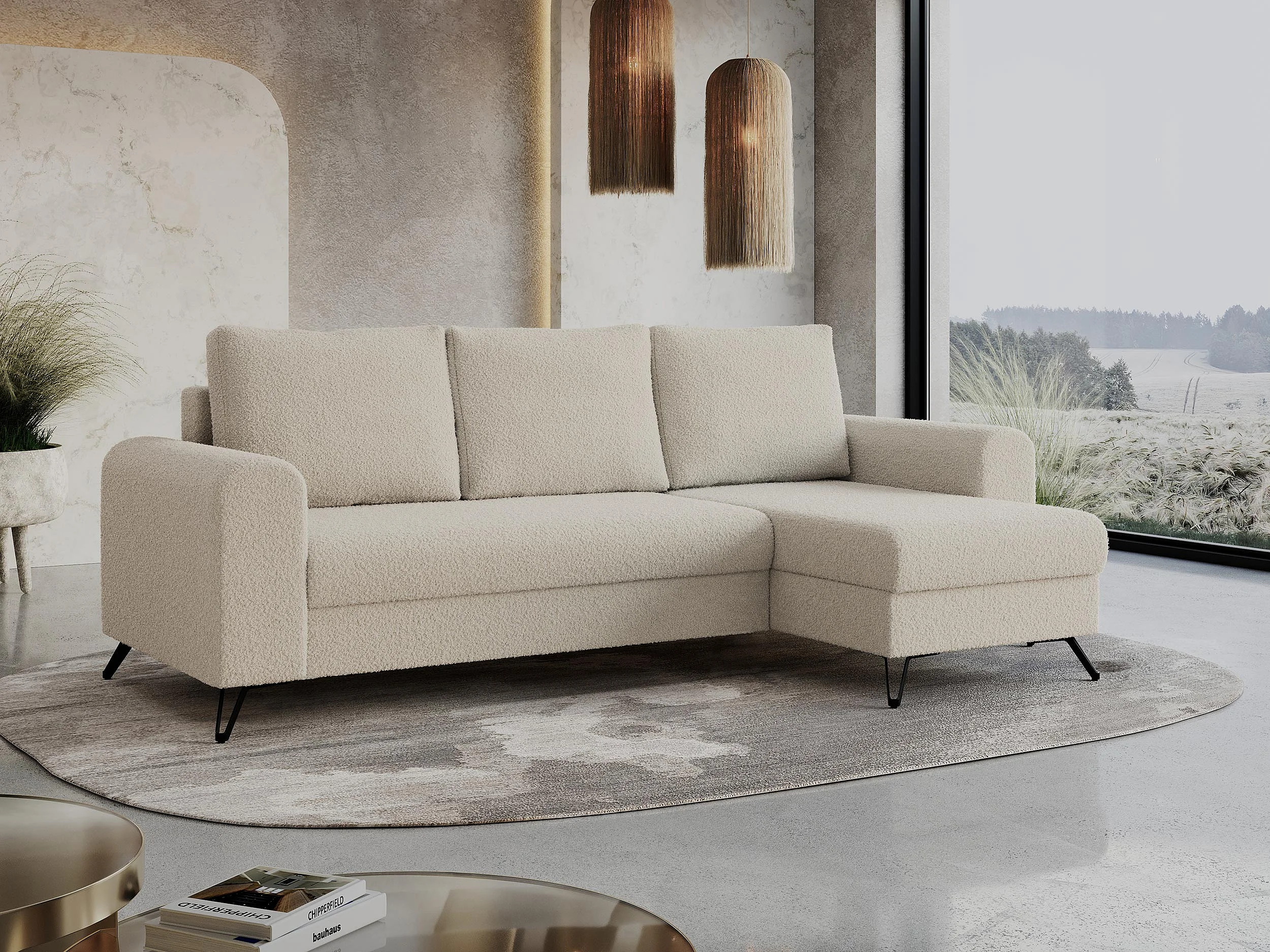 Ecksofa HUGO - L-Form mit Schlaffunktion, lose Kissen - Beige Boucle