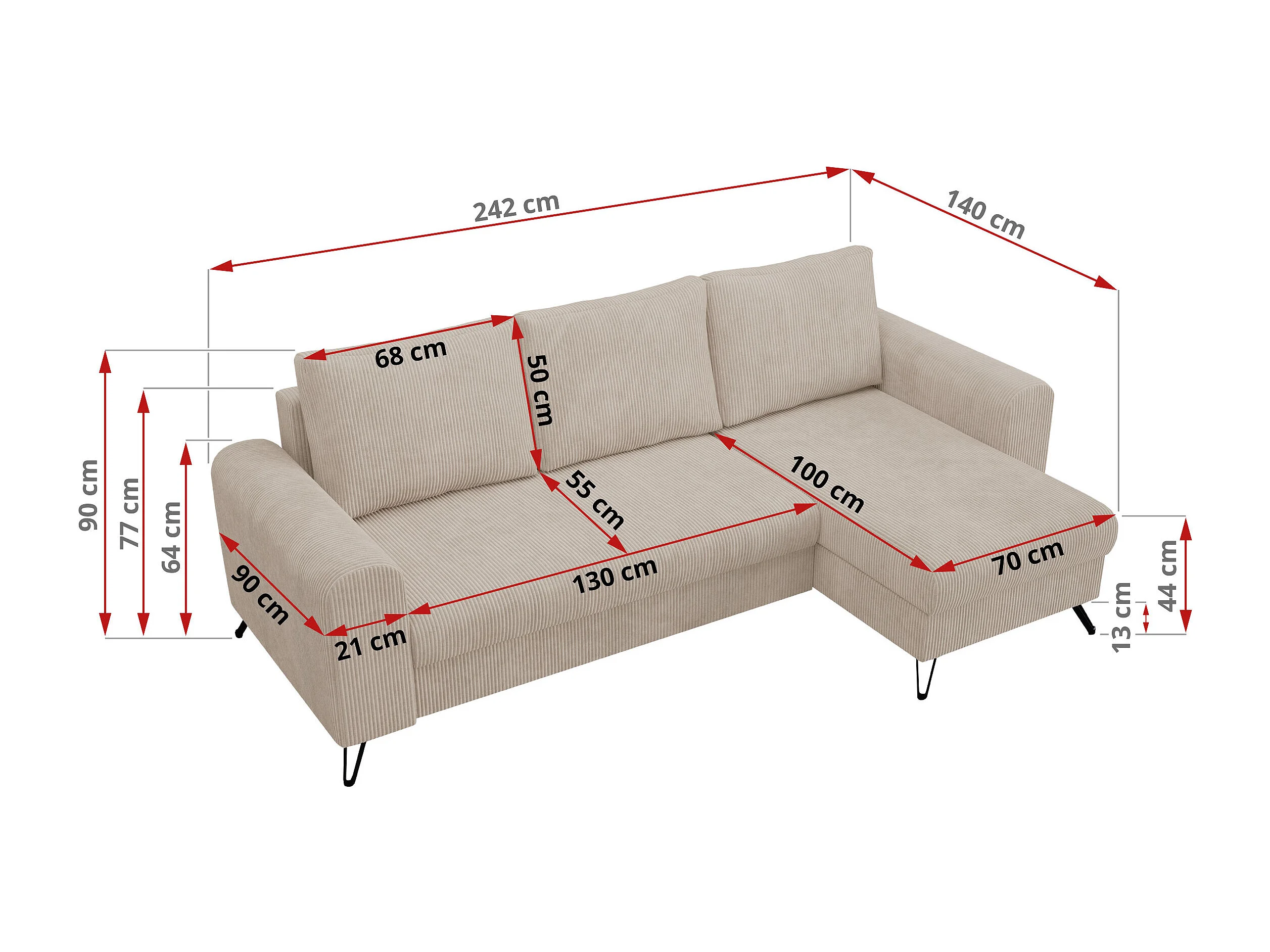 Ecksofa HUGO - L-Form mit Schlaffunktion, lose Kissen - Beige Cord