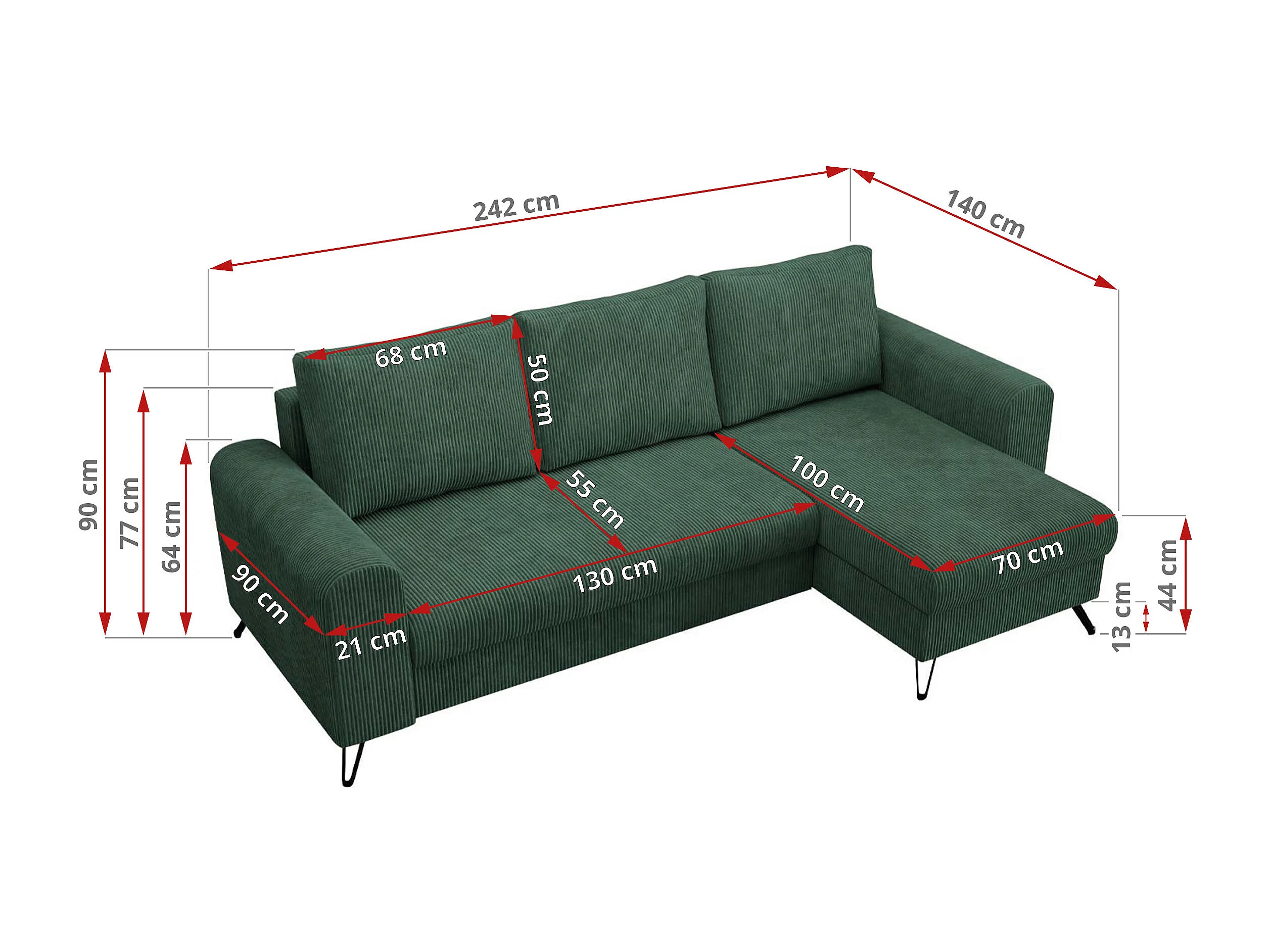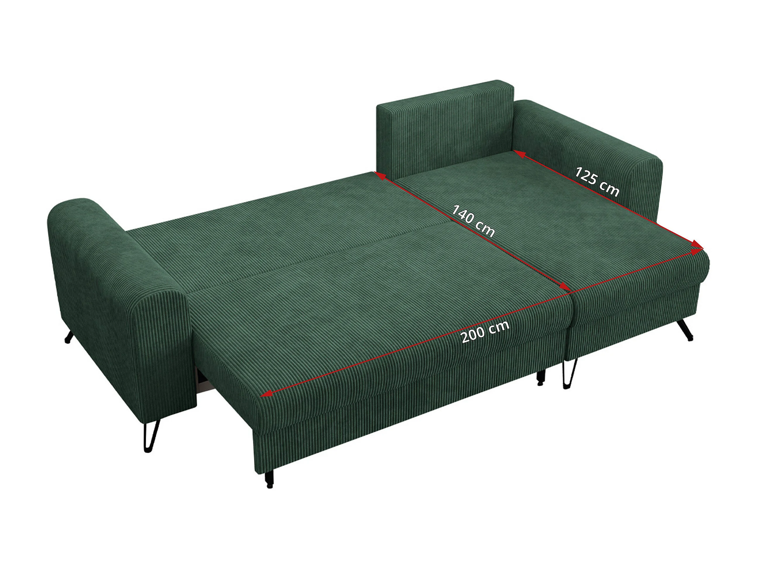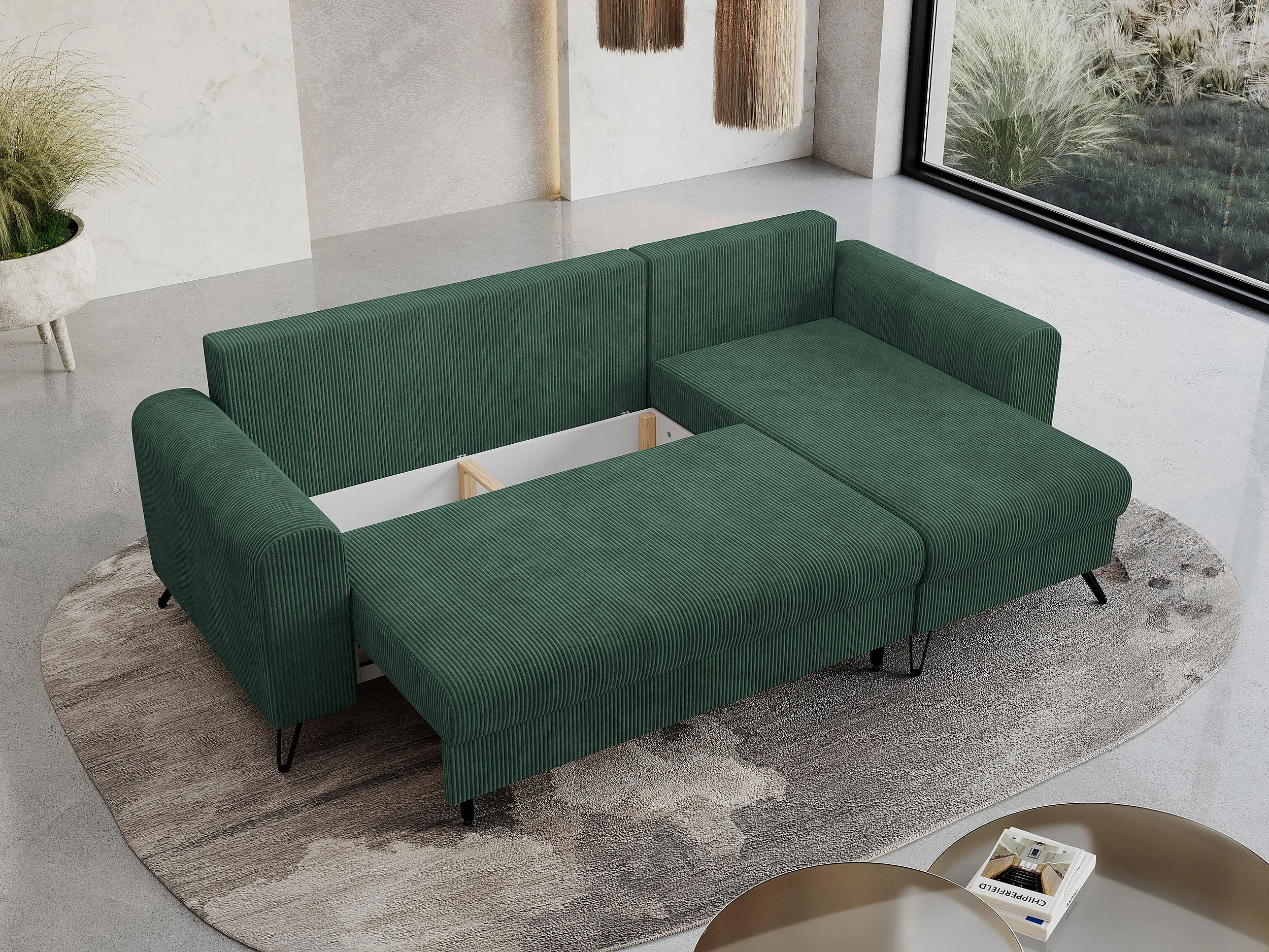 Ecksofa HUGO - L-Form mit Schlaffunktion, lose Kissen - Grün Cord