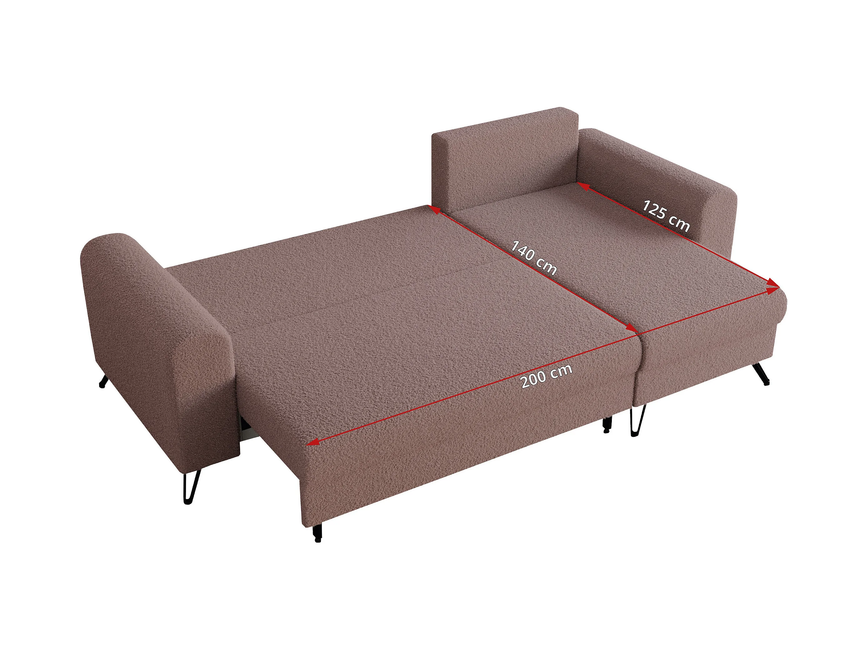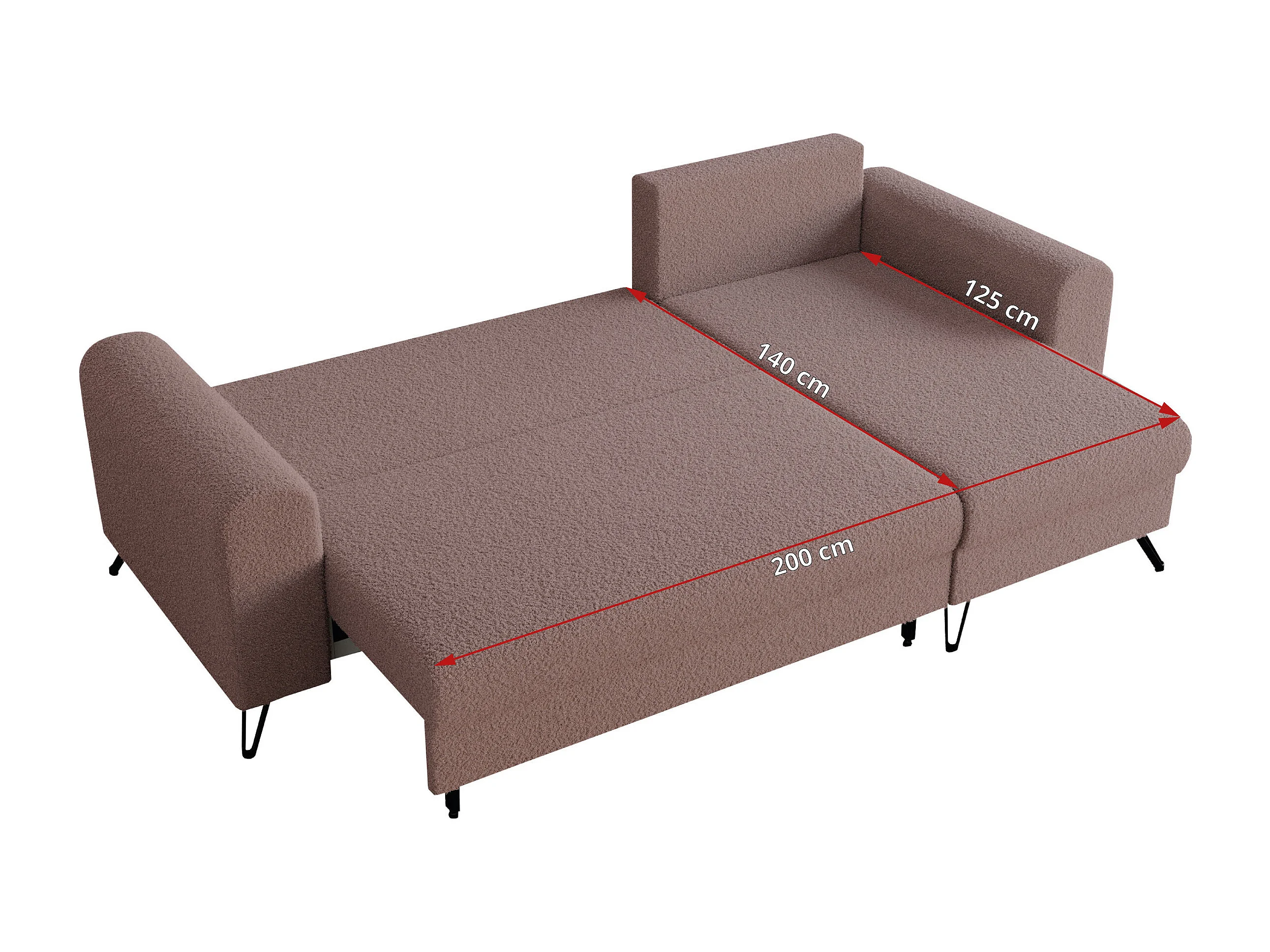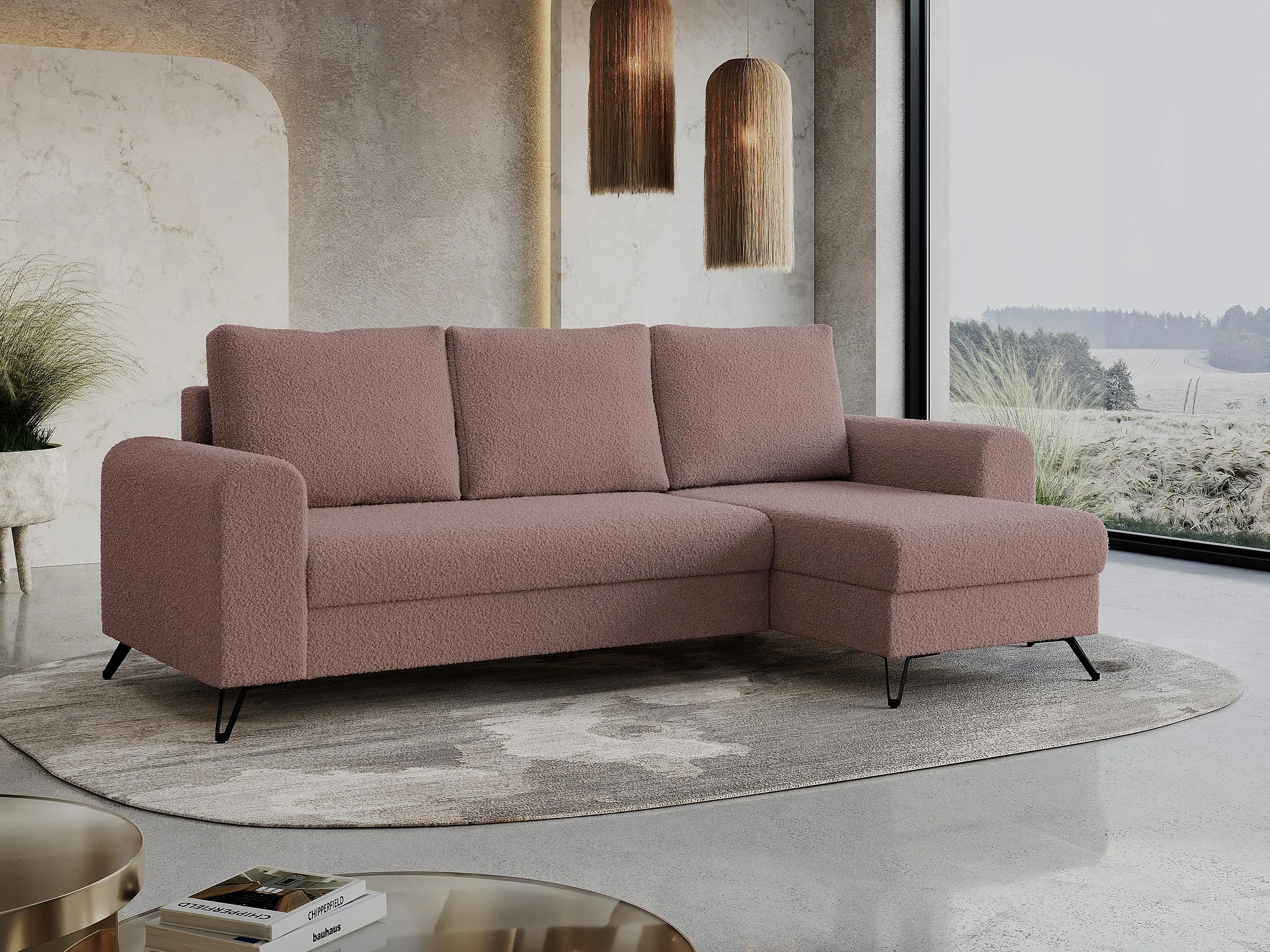 Ecksofa HUGO - L-Form mit Schlaffunktion, lose Kissen - Rosa Boucle