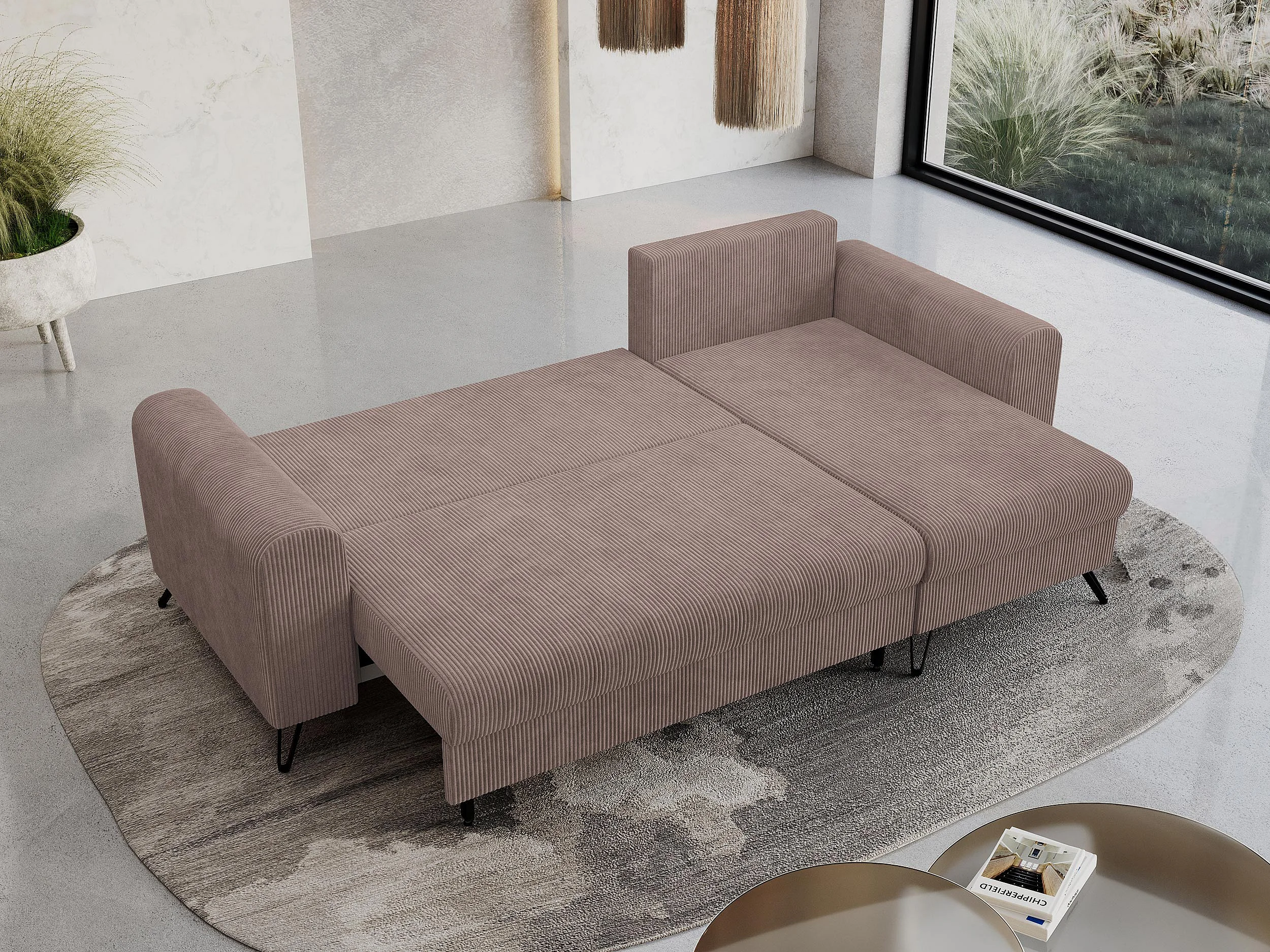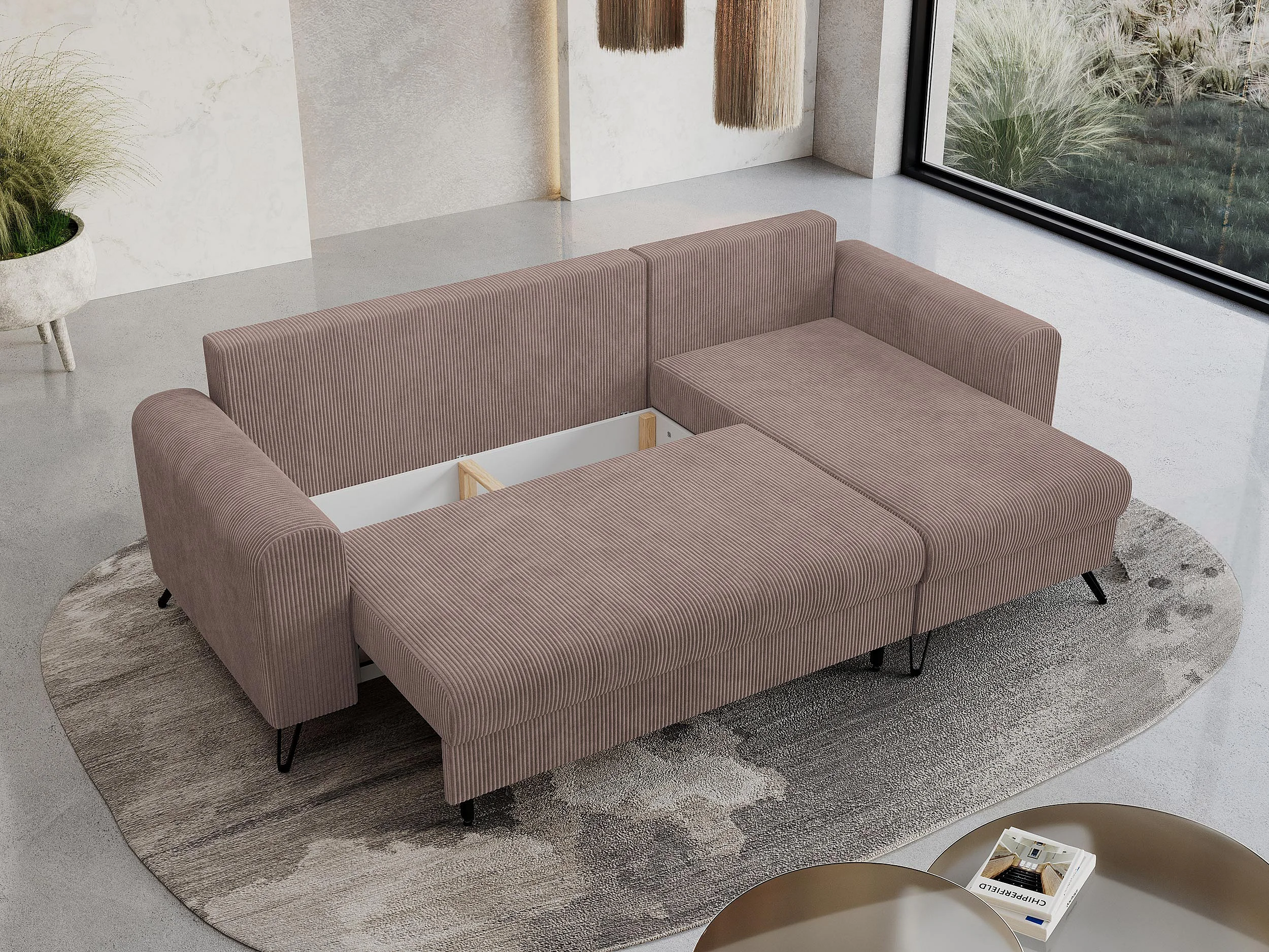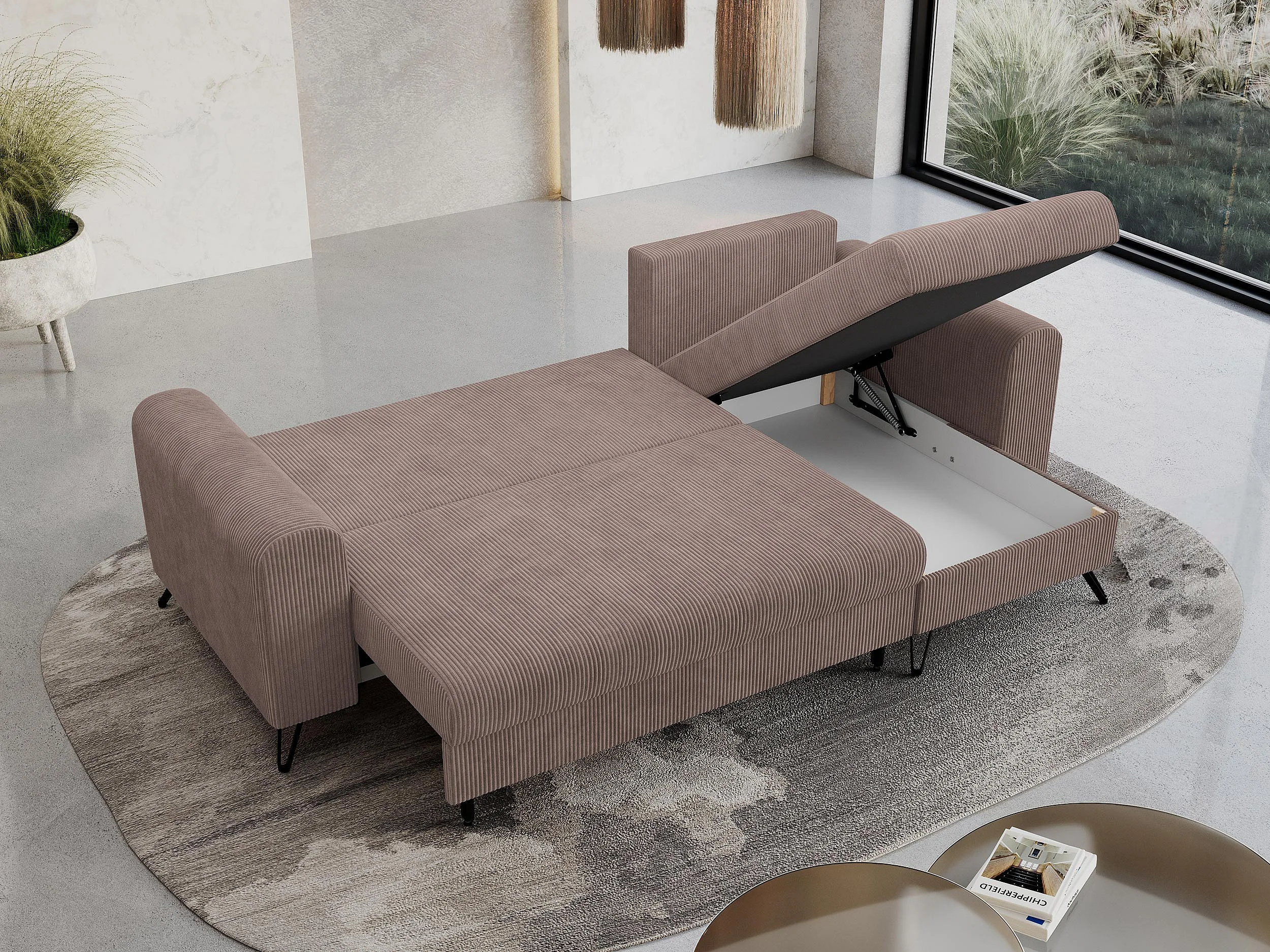 Ecksofa HUGO - L-Form mit Schlaffunktion, lose Kissen - Rosa Cord