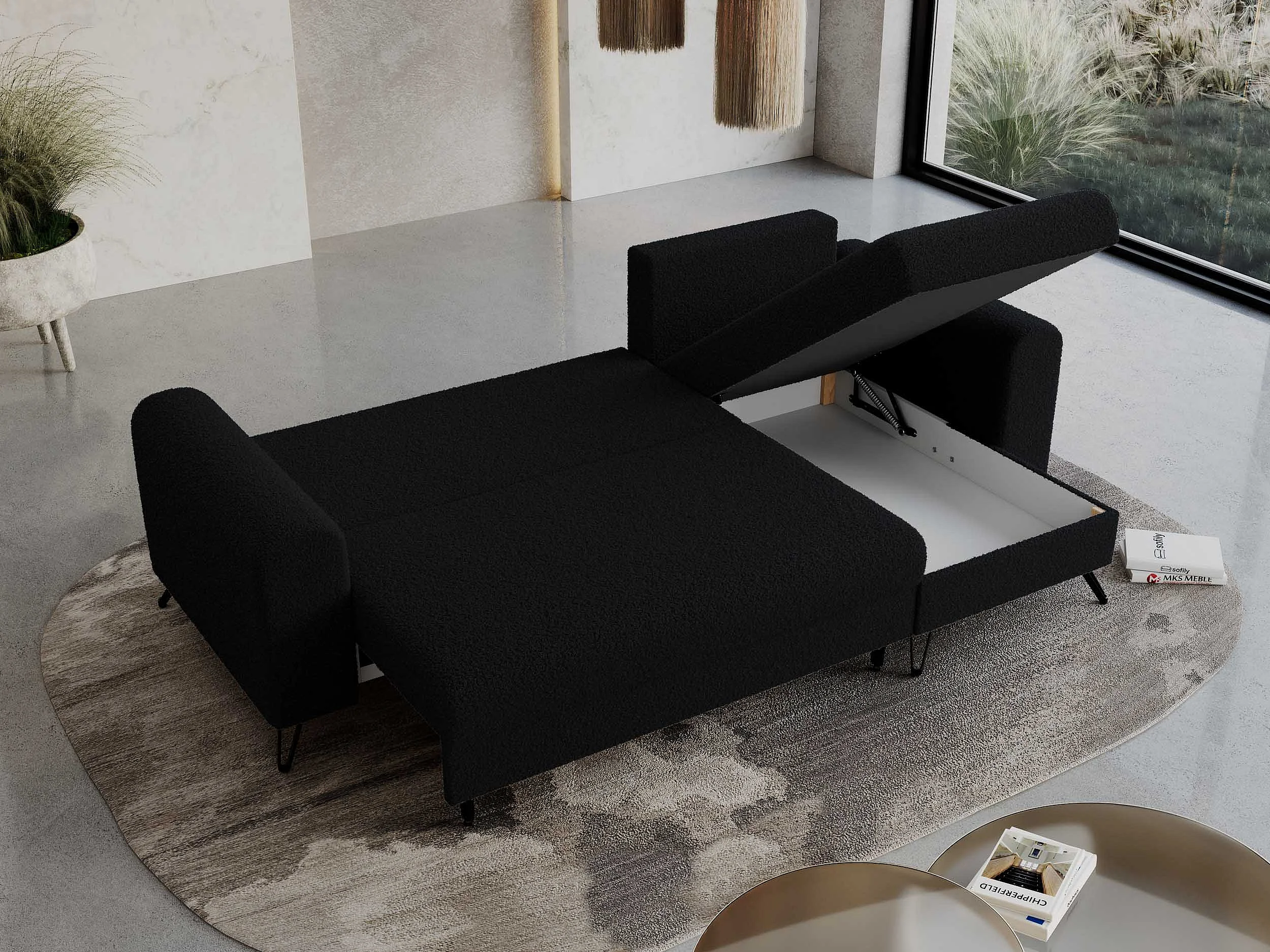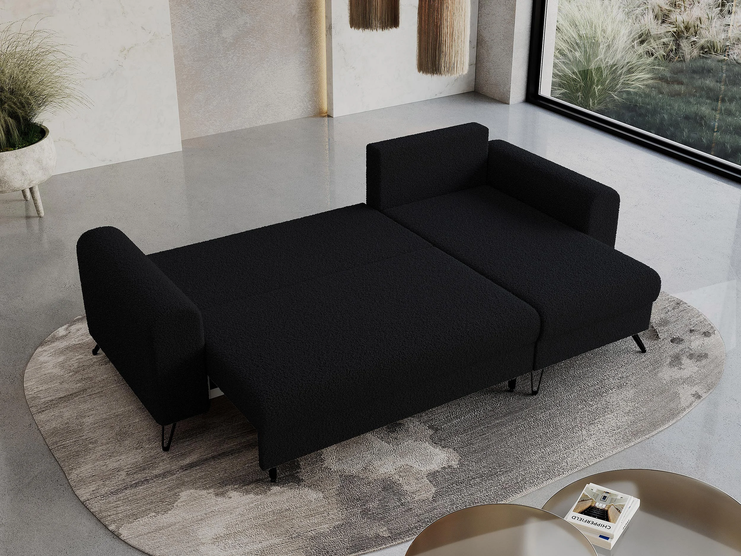 Ecksofa HUGO - L-Form mit Schlaffunktion, lose Kissen - Schwarz Boucle