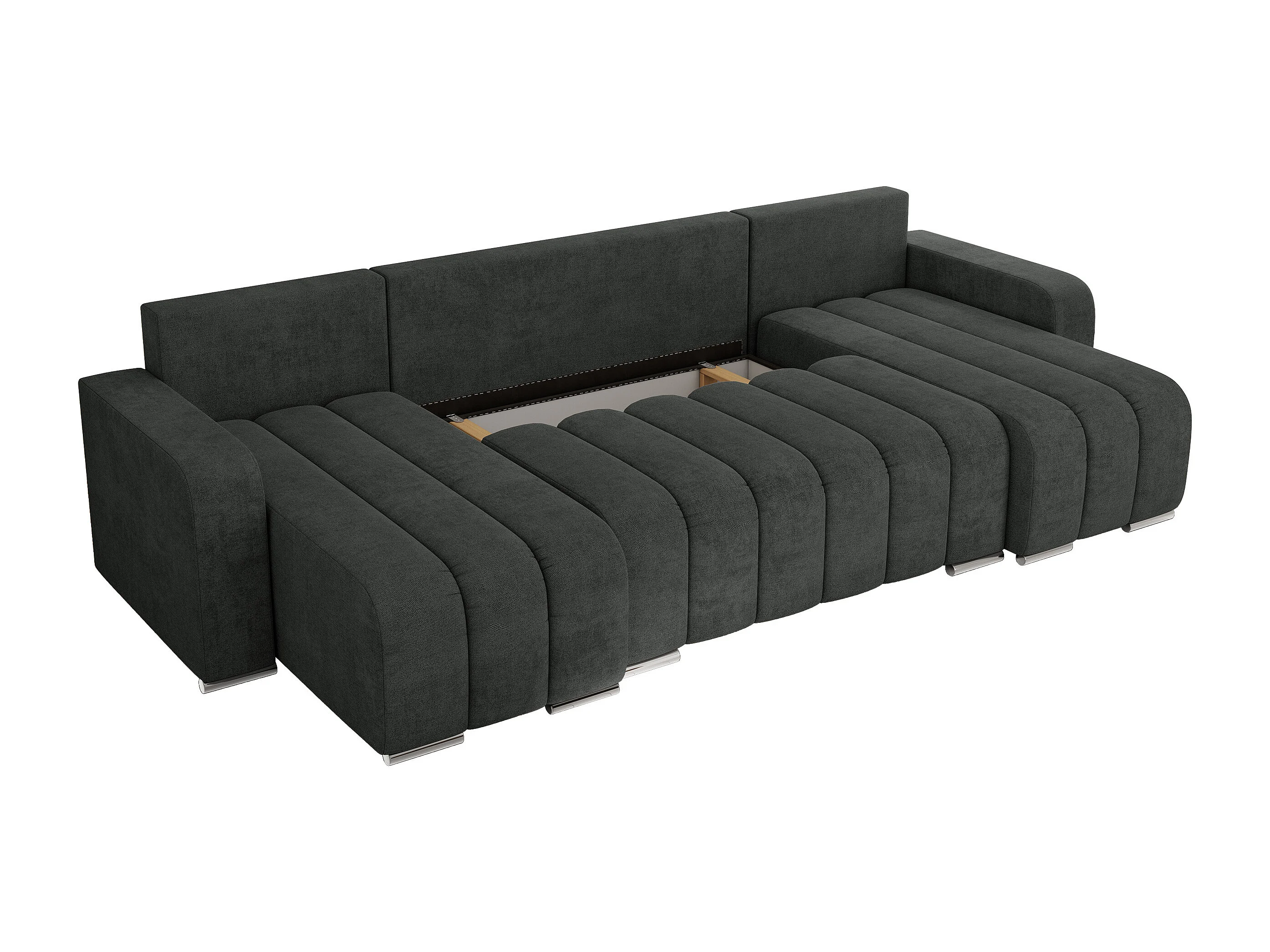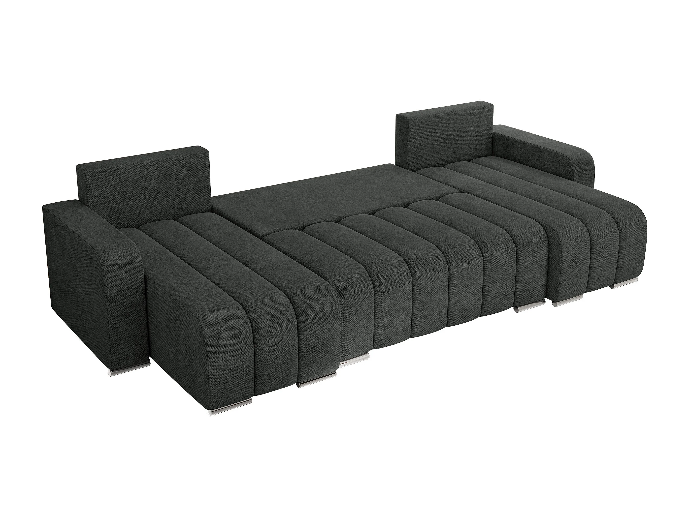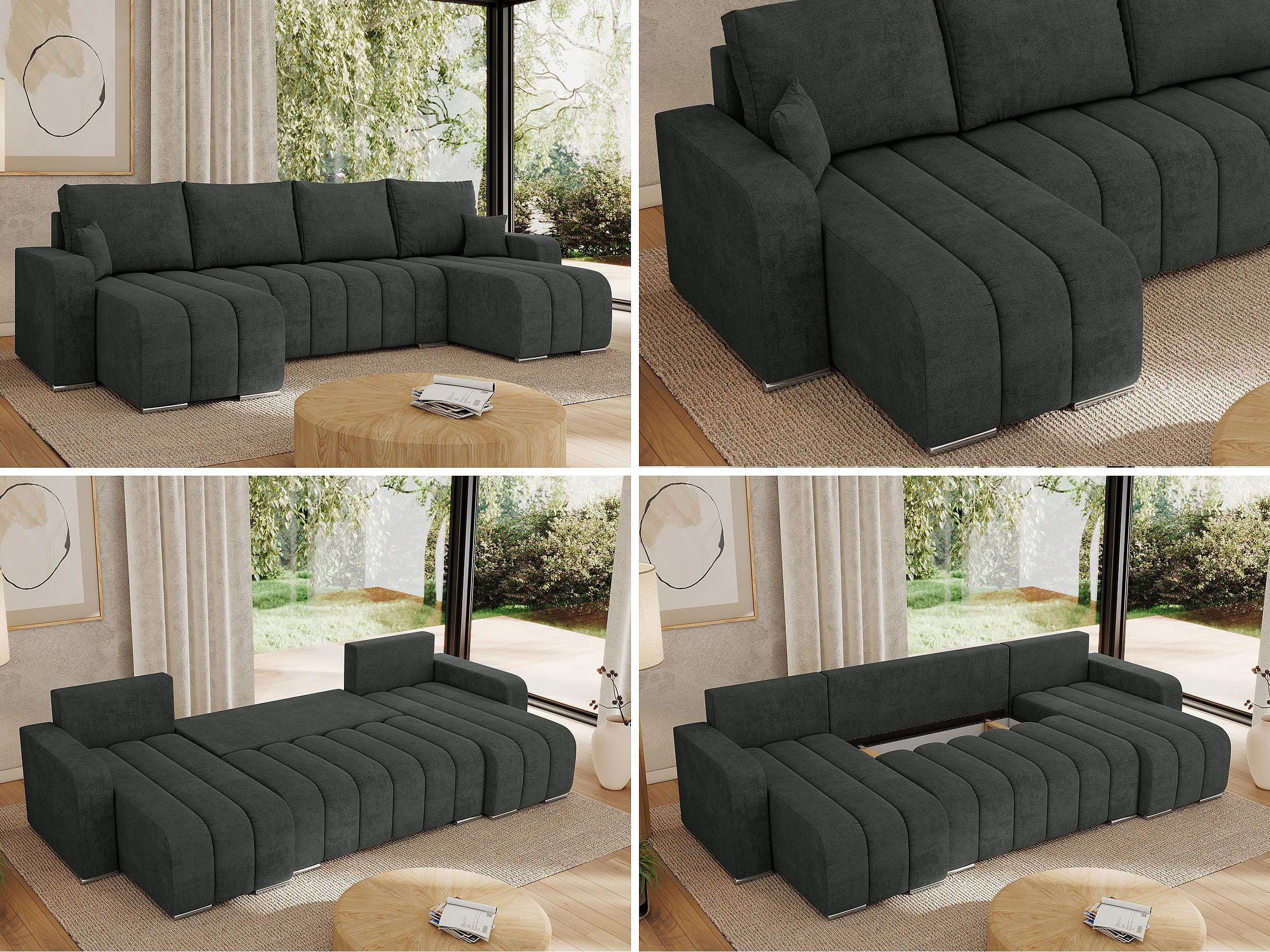 Ecksofa KIRASSO U - Wohnlandschaft, Schlaffunktion und Bettkasten, Couch U-form, lose Kissen - Dunkelgrau Strukture