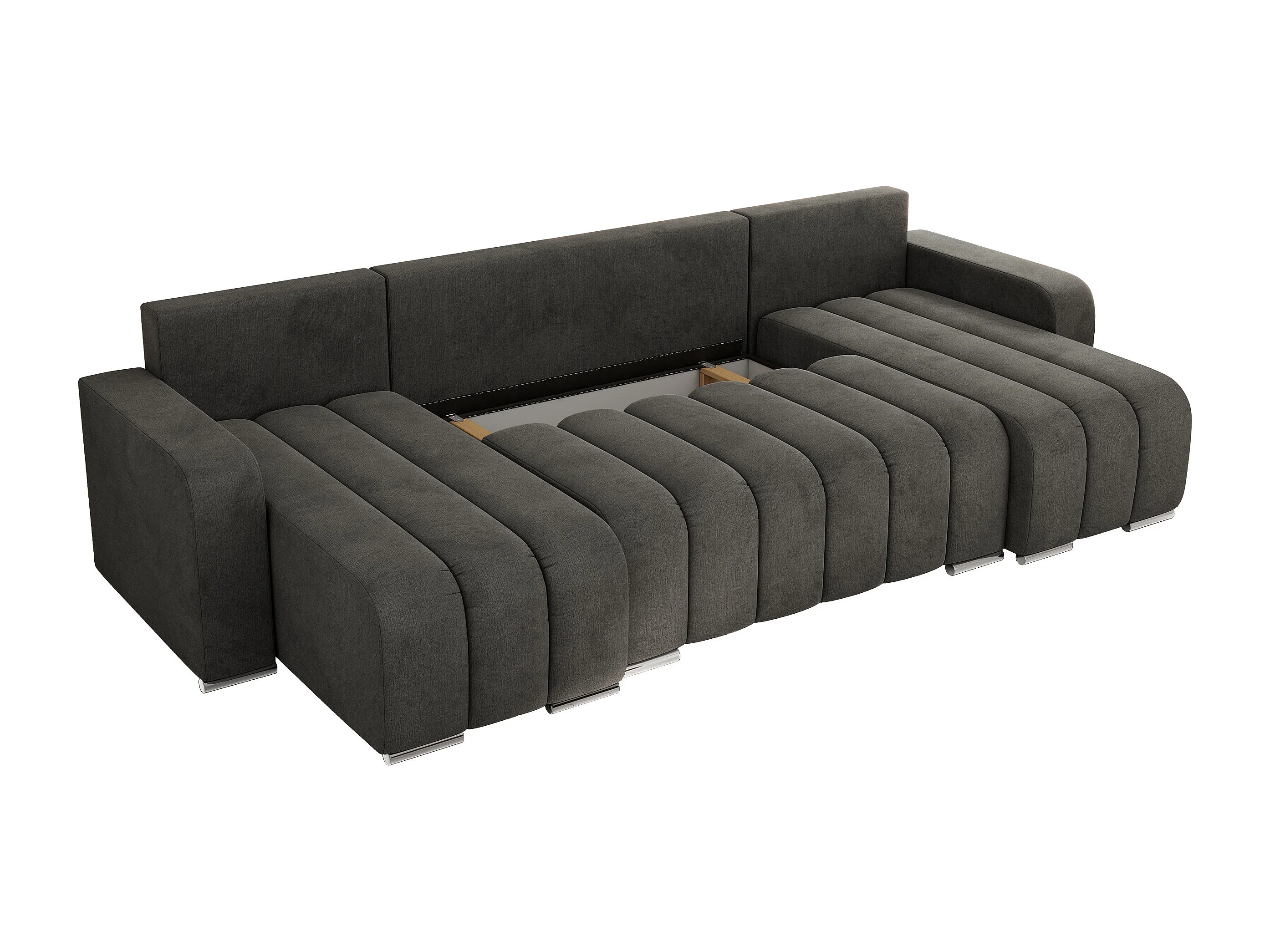Ecksofa KIRASSO U - Wohnlandschaft, Schlaffunktion und Bettkasten, Couch U-form, lose Kissen - Dunkelgrau Velvet
