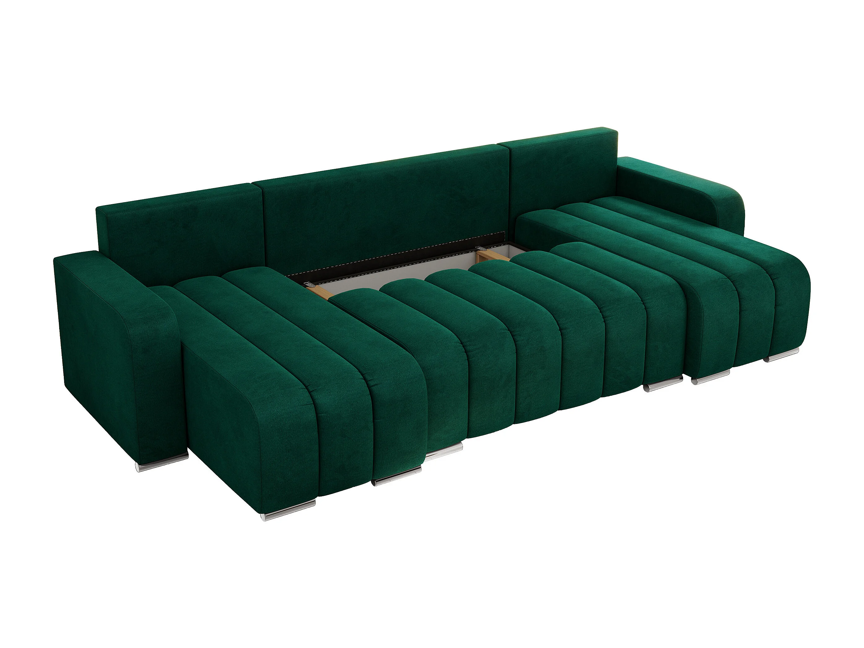 Ecksofa KIRASSO U - Wohnlandschaft, Schlaffunktion und Bettkasten, Couch U-form, lose Kissen - Dunkelgrün Velvet