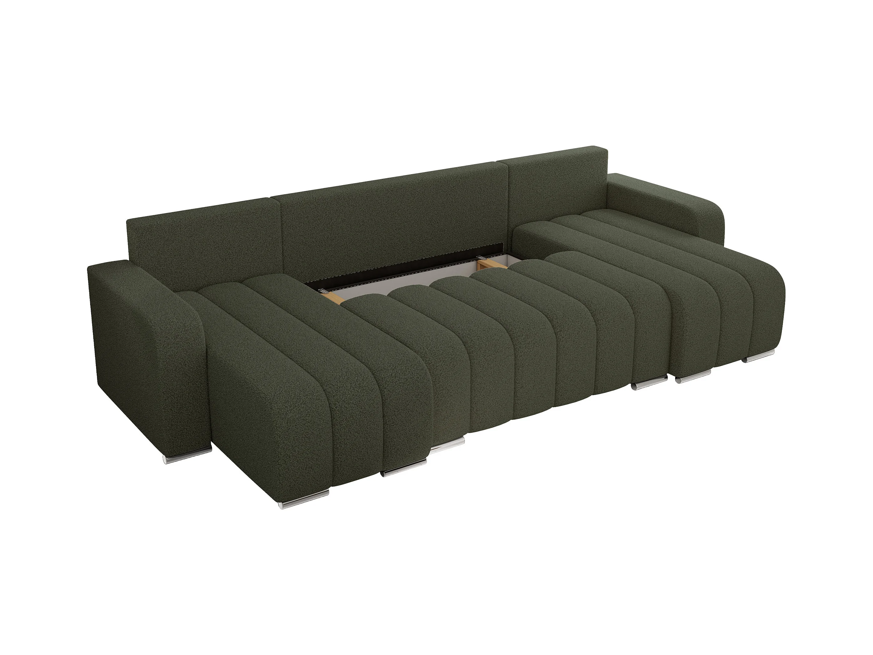 Ecksofa KIRASSO U - Wohnlandschaft, Schlaffunktion und Bettkasten, Couch U-form, lose Kissen - Grün Boucle
