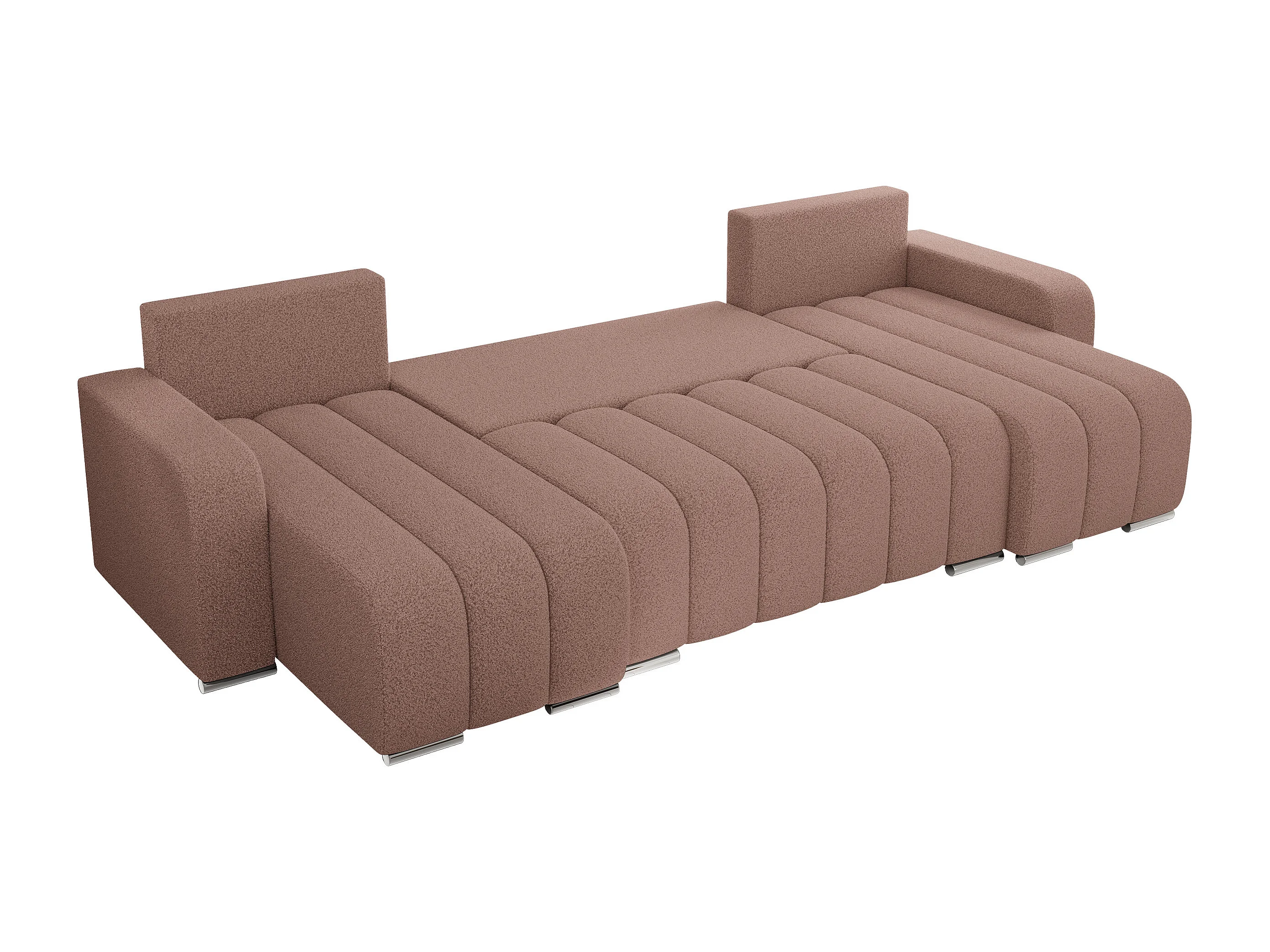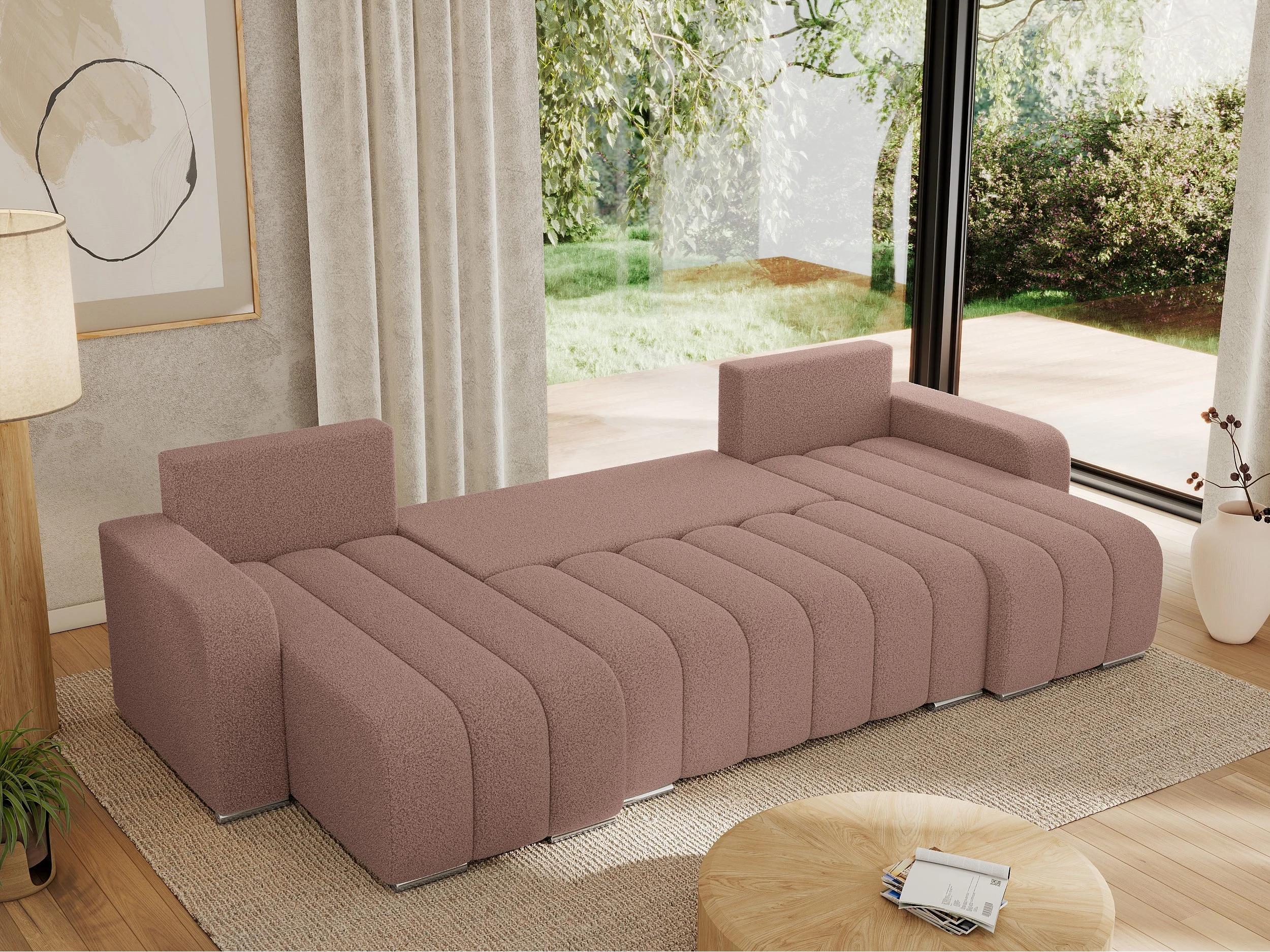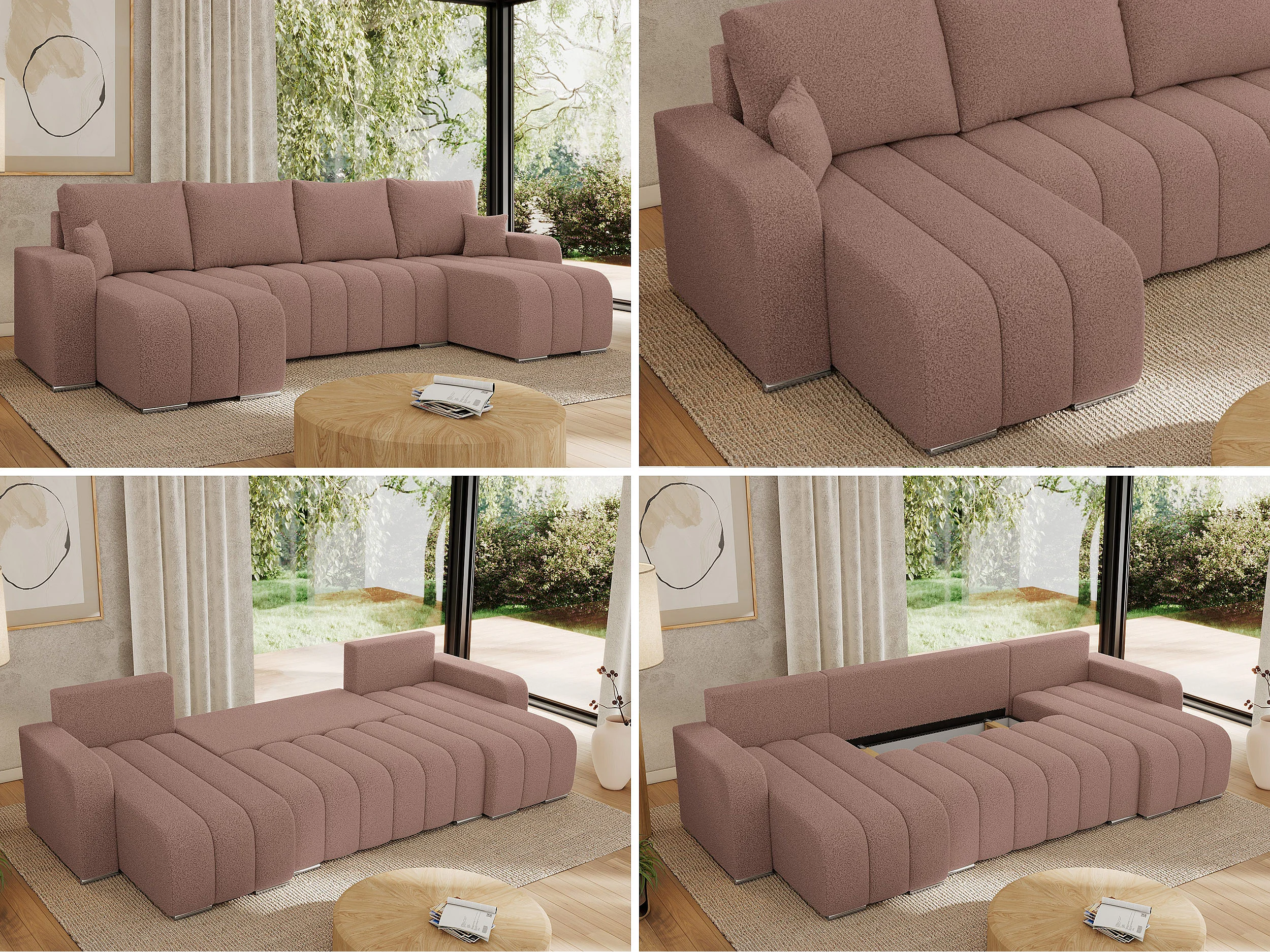 Ecksofa KIRASSO U - Wohnlandschaft, Schlaffunktion und Bettkasten, Couch U-form, lose Kissen - Rosa Boucle