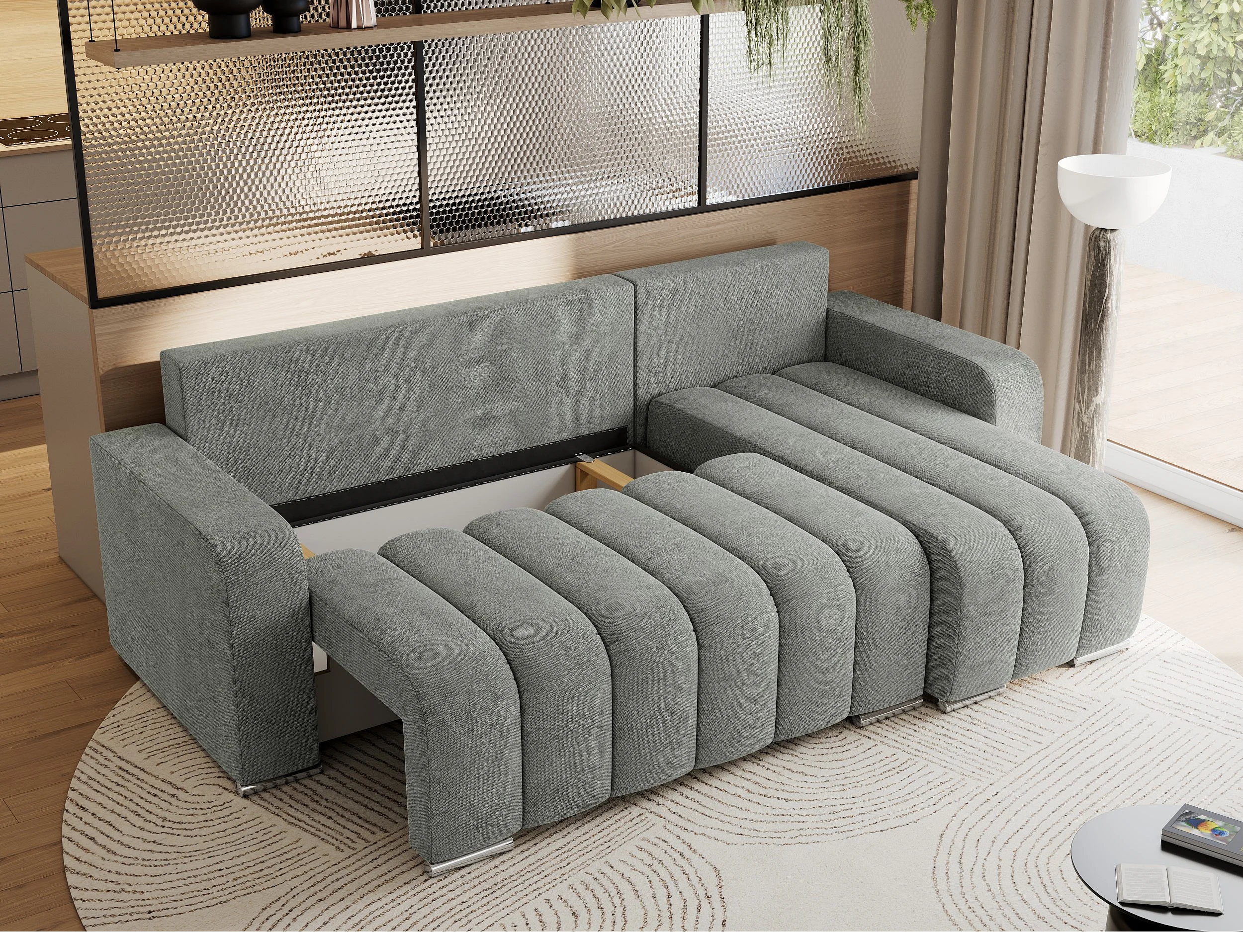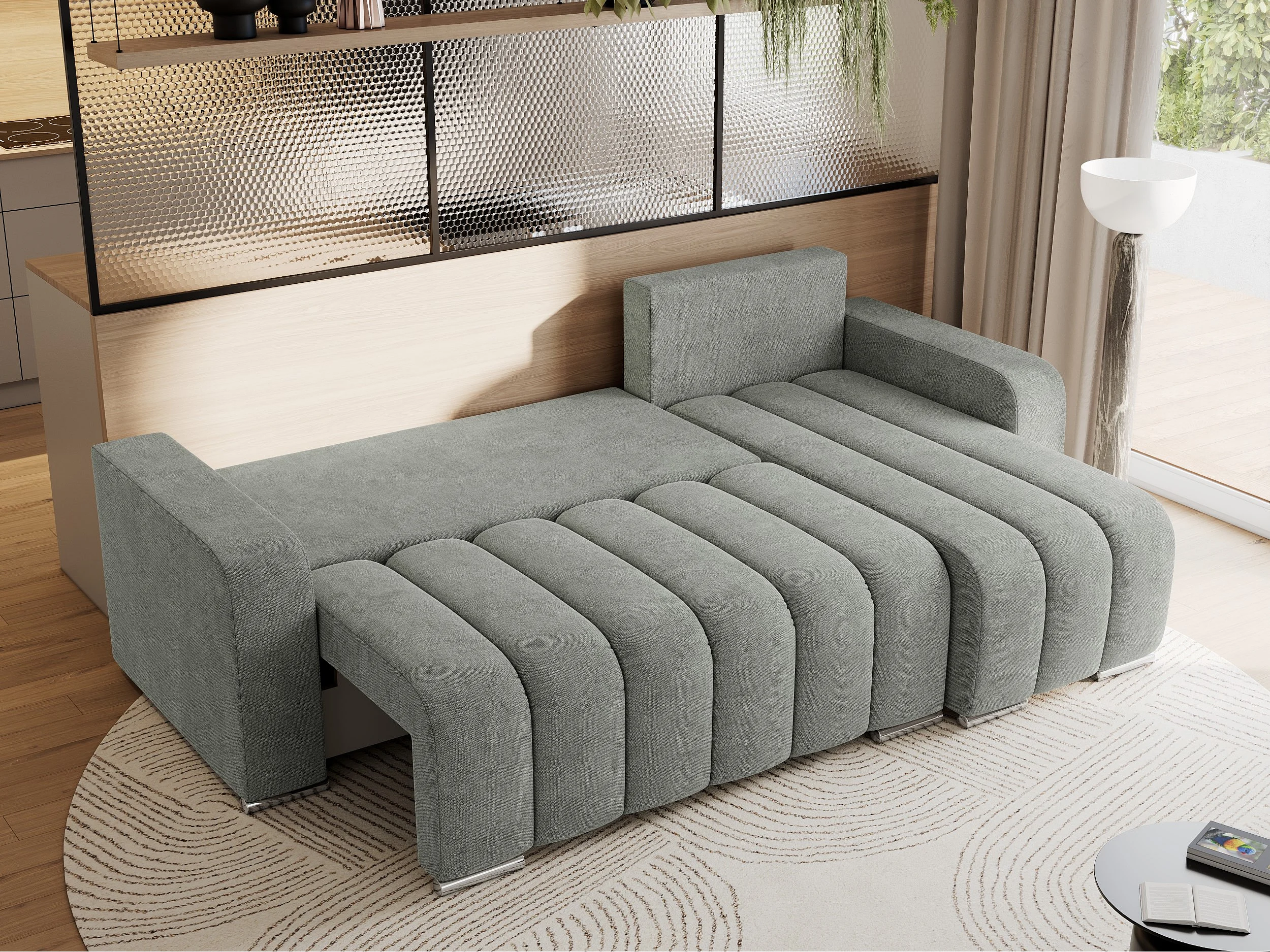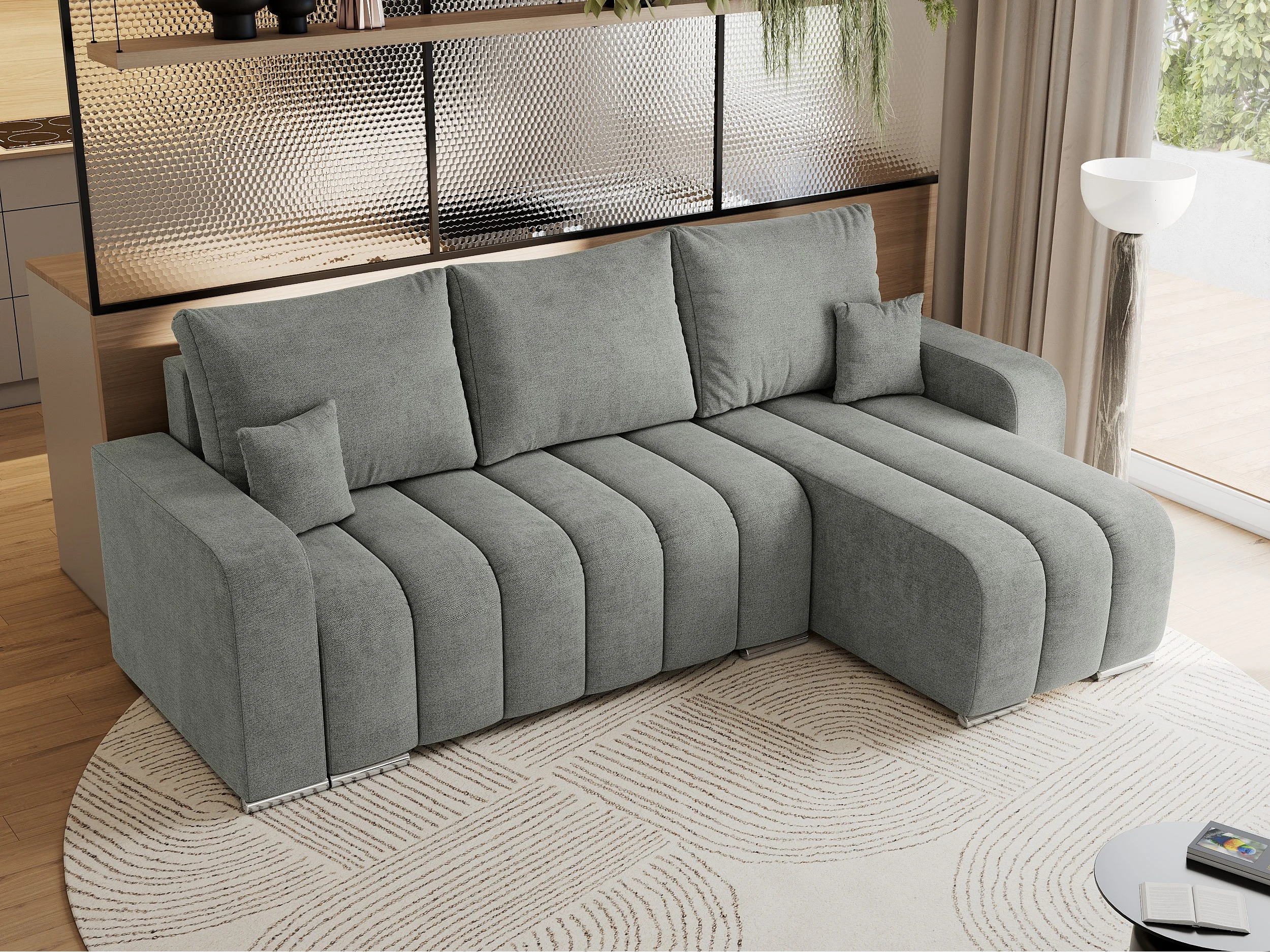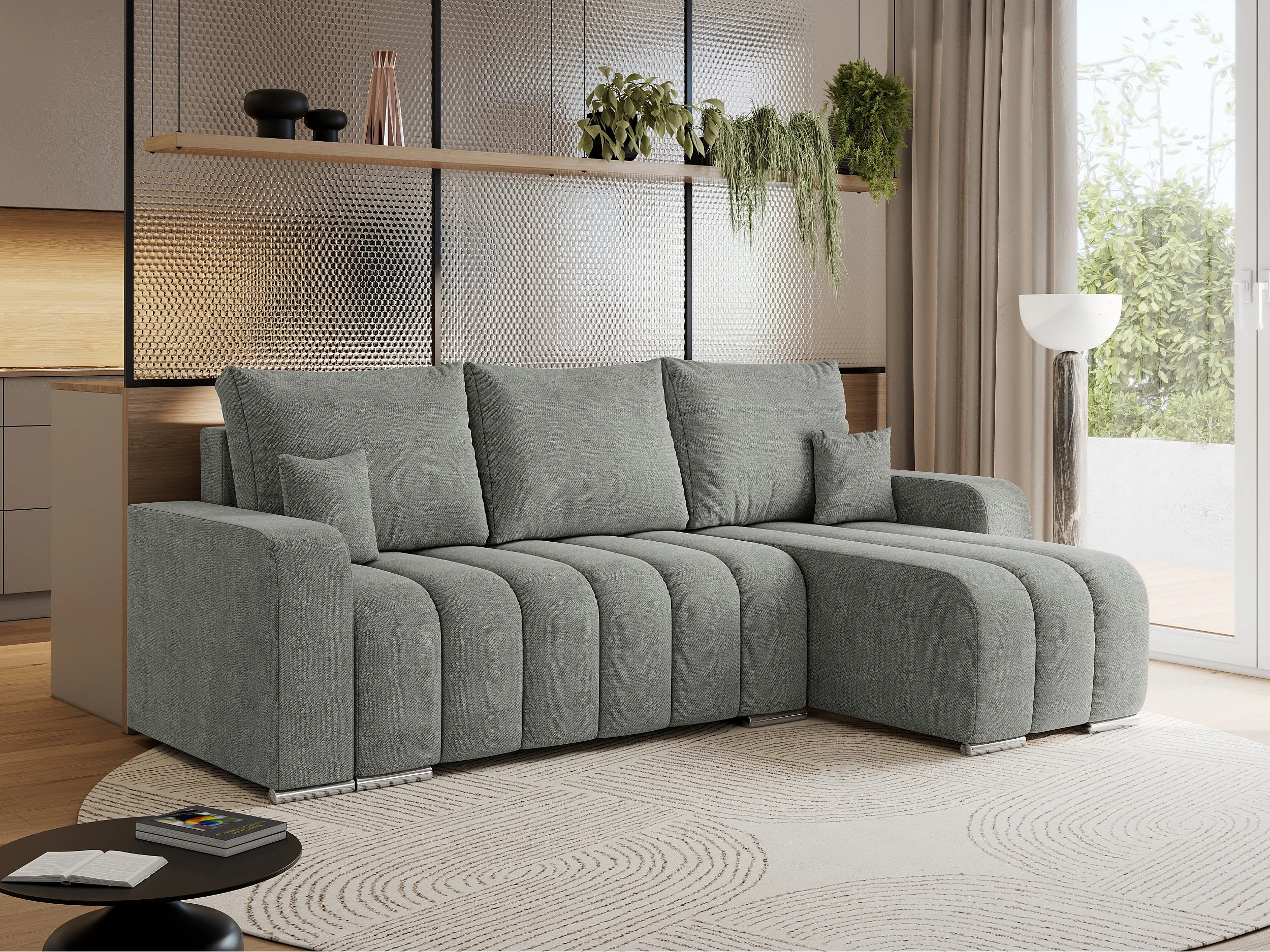 Ecksofa KIRASSO - universelles mit Schlaffunktion und Bettkasten, lose Kissen, Armlehnen - Grau Stukture