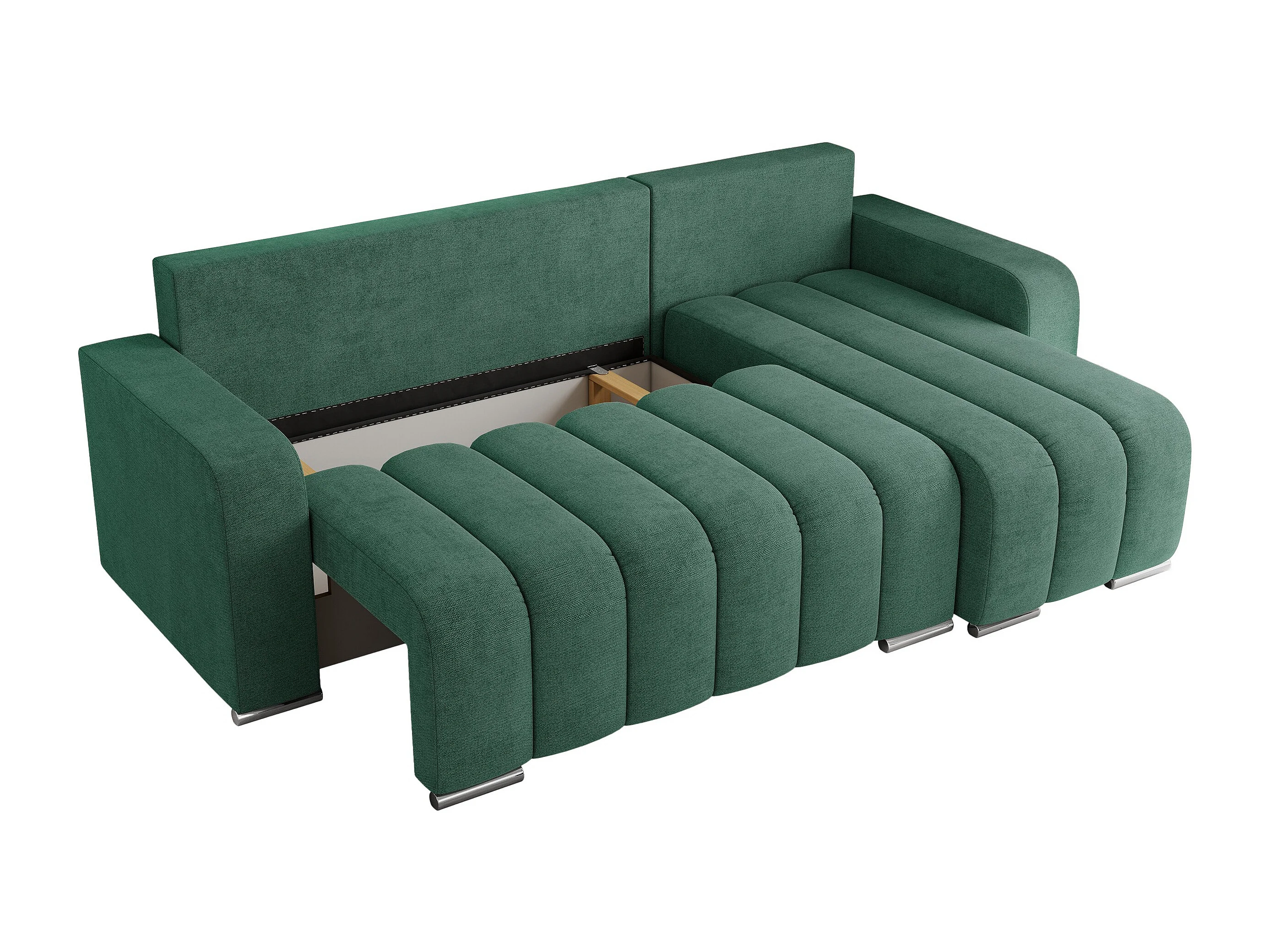 Ecksofa KIRASSO - universelles mit Schlaffunktion und Bettkasten, lose Kissen, Armlehnen - Grün Stukture