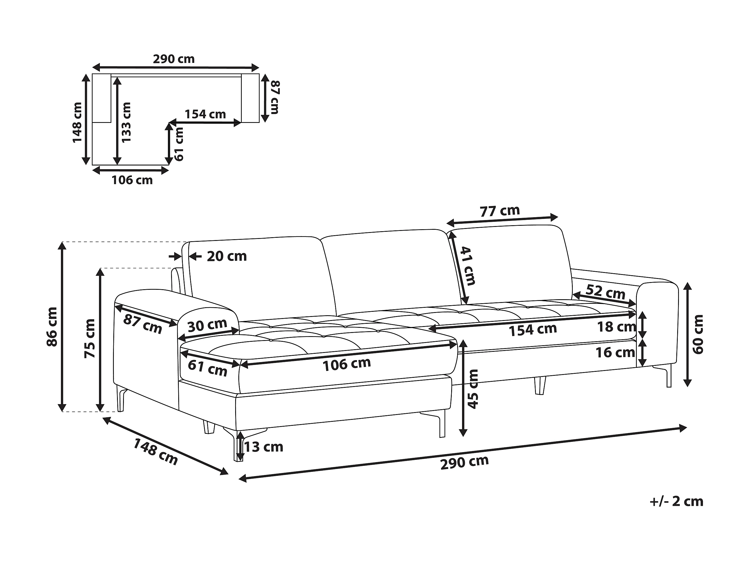 Ecksofa KIRUNA Samtstoff Hellbeige 4-Sitzer rechtsseitig