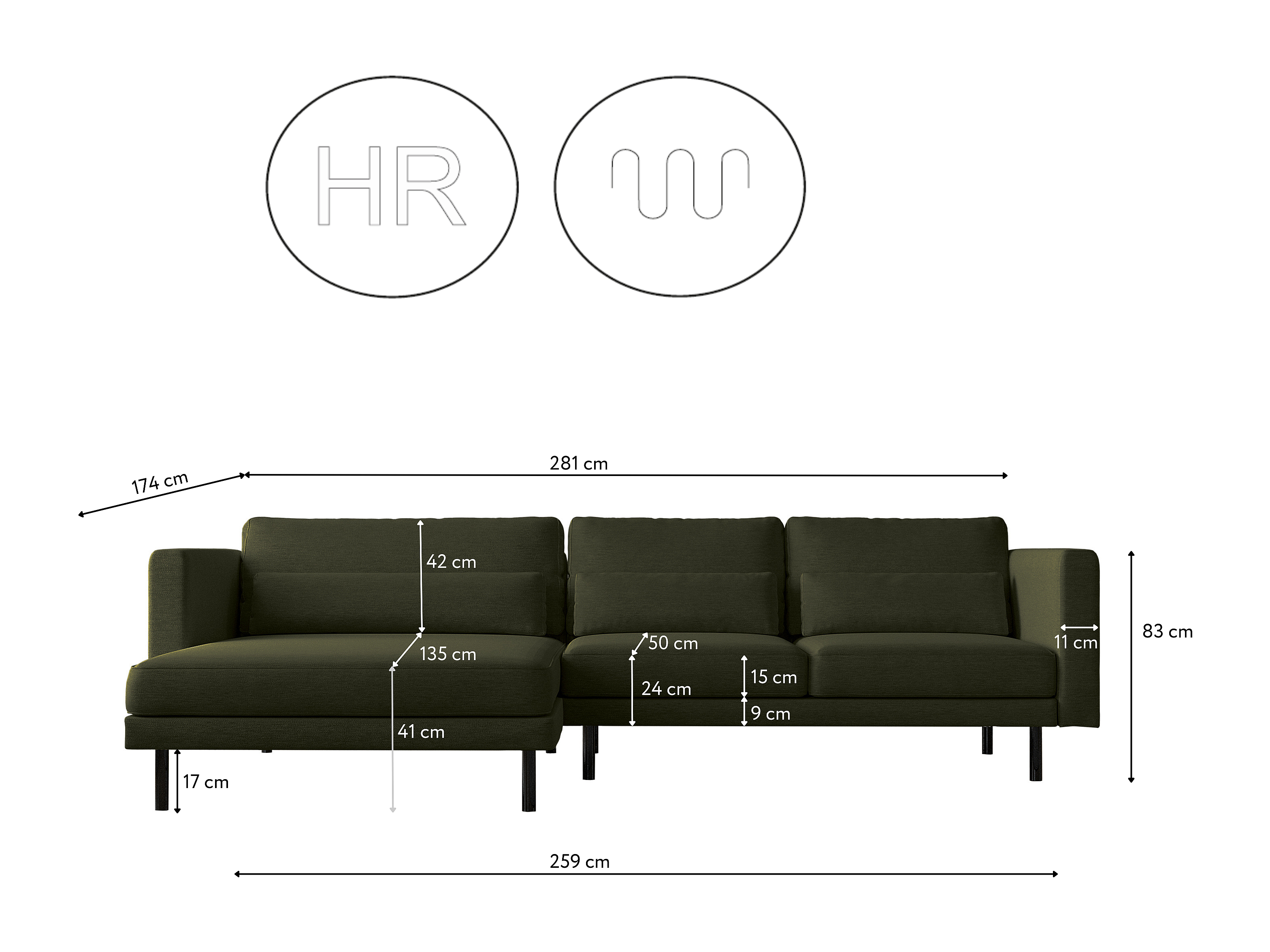 Ecksofa L-form Dani modern und geräumig Stoff Verita Dunkelgrün Links