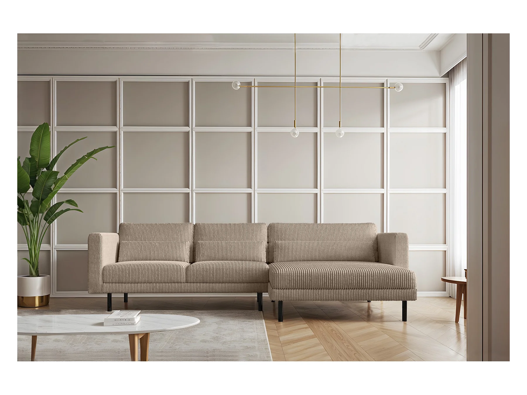 Ecksofa L-form Dani Stoff Poso Dunkelbeige Rechts