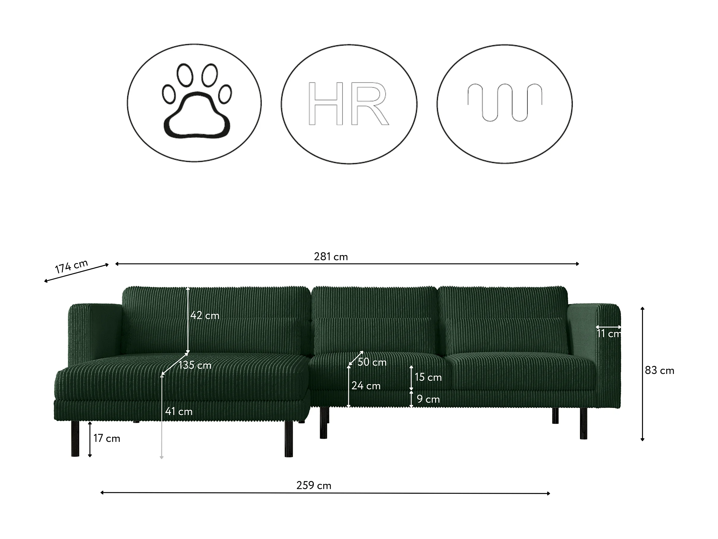 Ecksofa L-form Dani Stoff Poso Grün Links