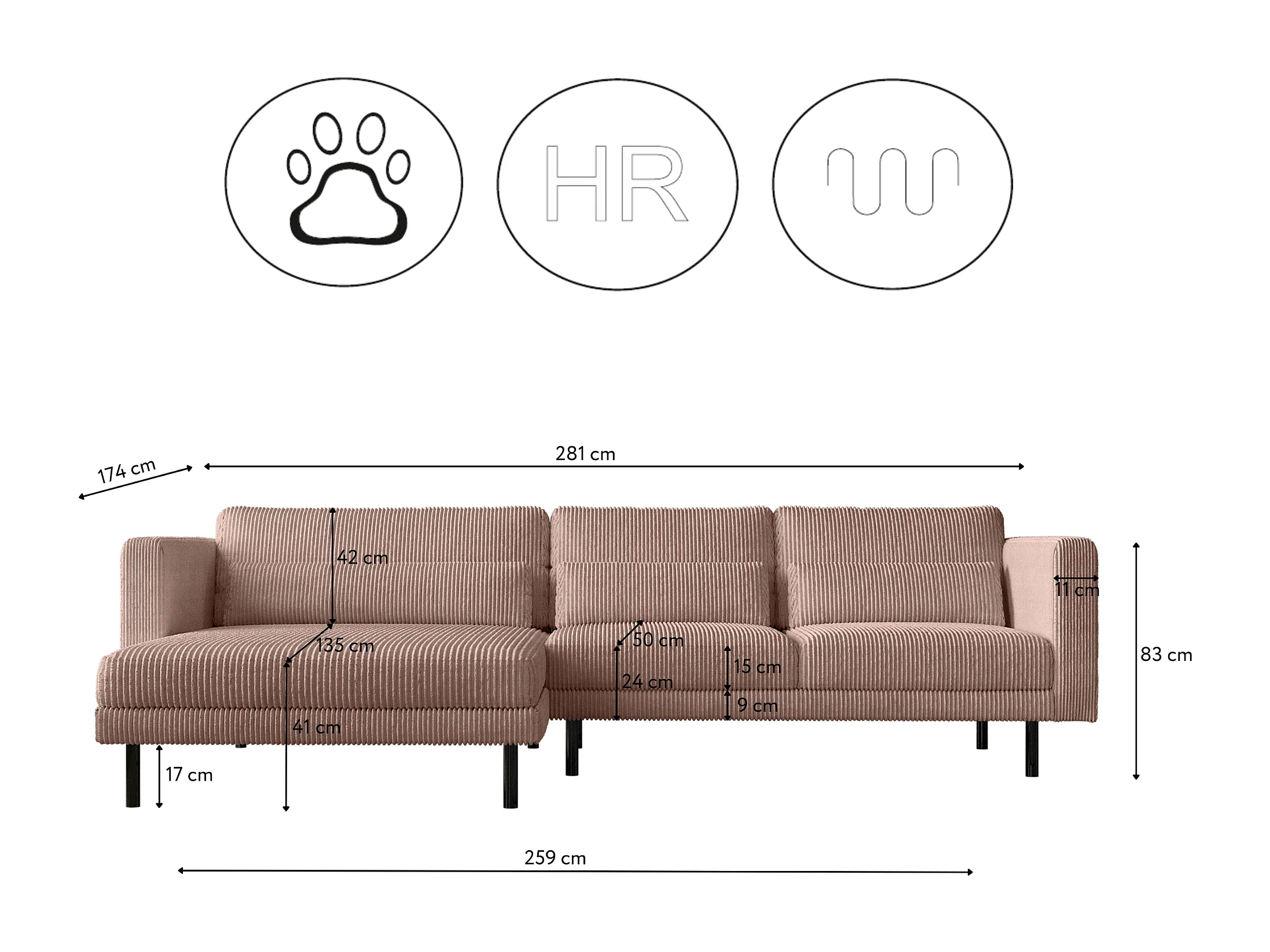 Ecksofa L-form Dani Stoff Poso Rosa Links