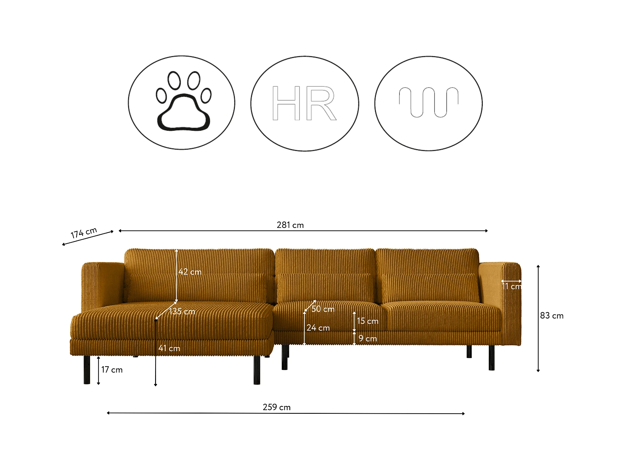 Ecksofa L-form Dani Stoff Poso Senffarbe Links