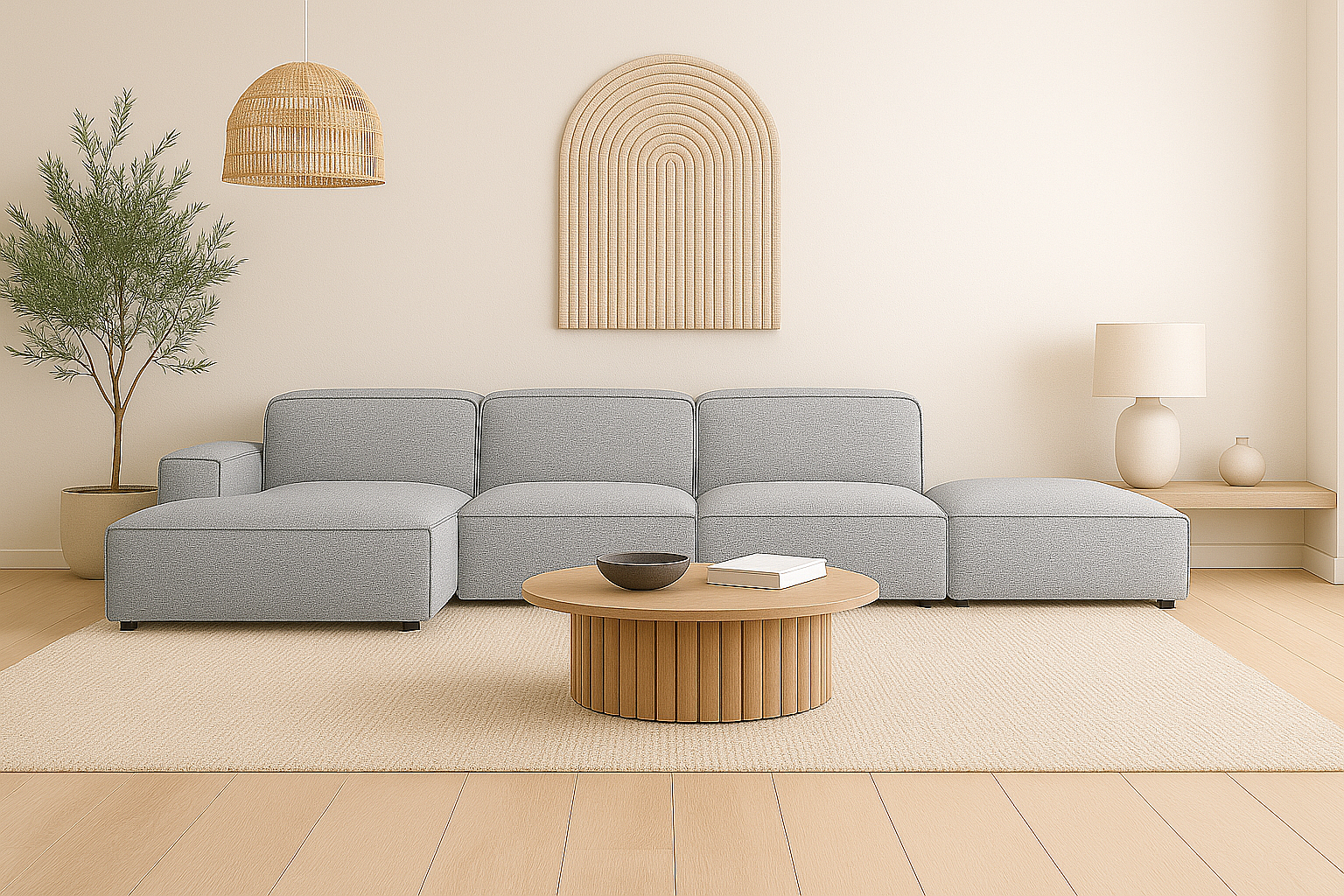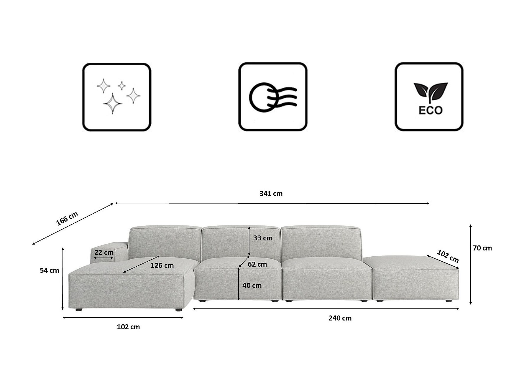 Ecksofa L-Form + Hocker Cursal, Stoff Artico, Cement, Links
