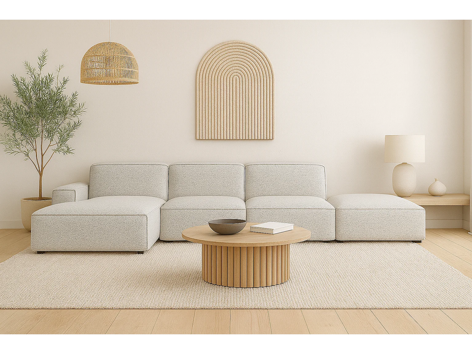 Ecksofa L-Form + Hocker Cursal, Stoff Artico, Nata, Links