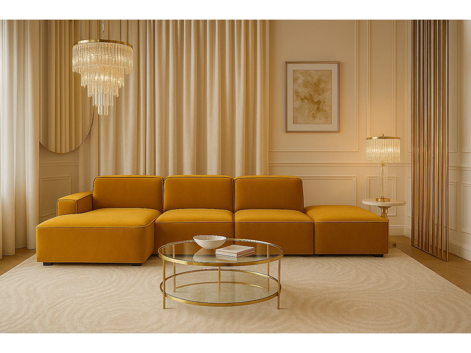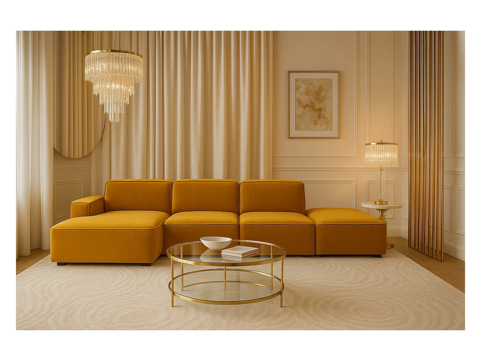 Ecksofa L-Form + Hocker Cursal, Stoff Salvador, Gelb, Links